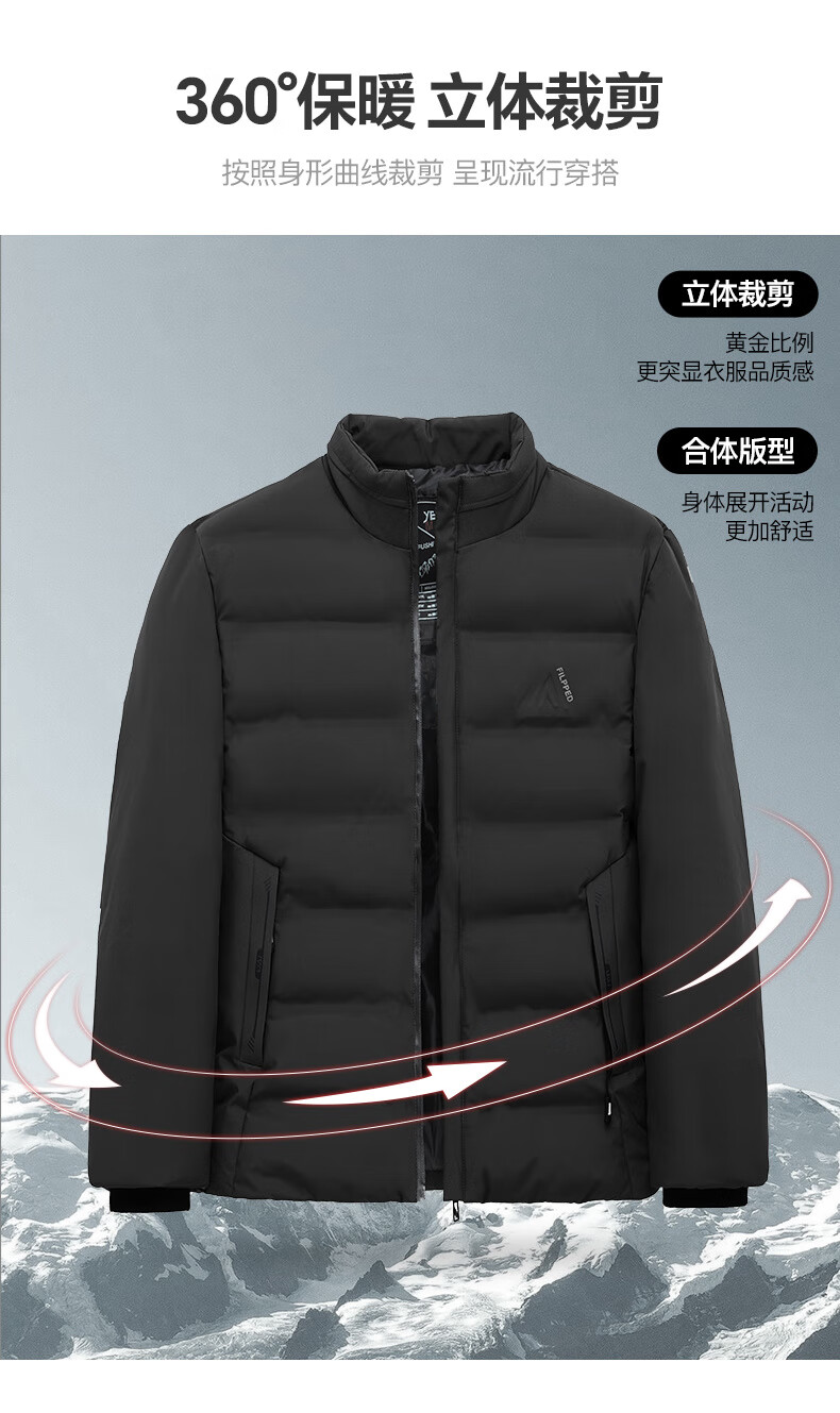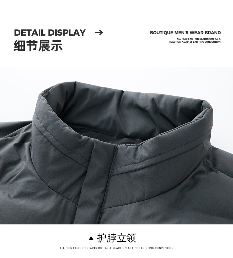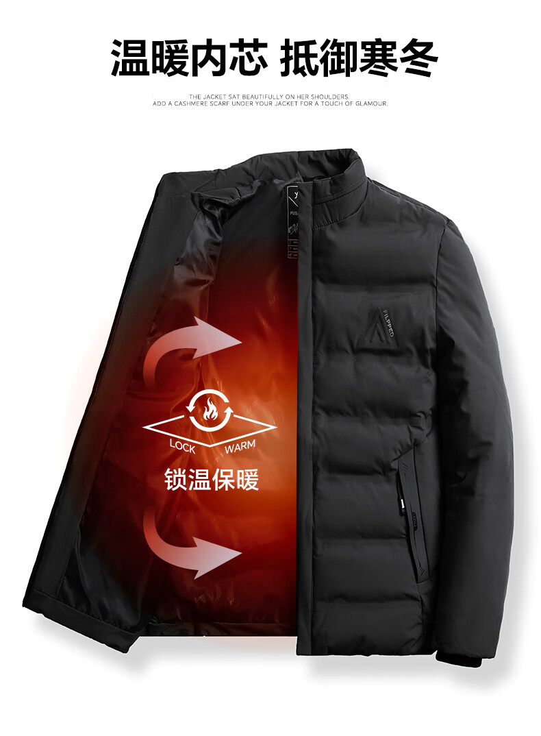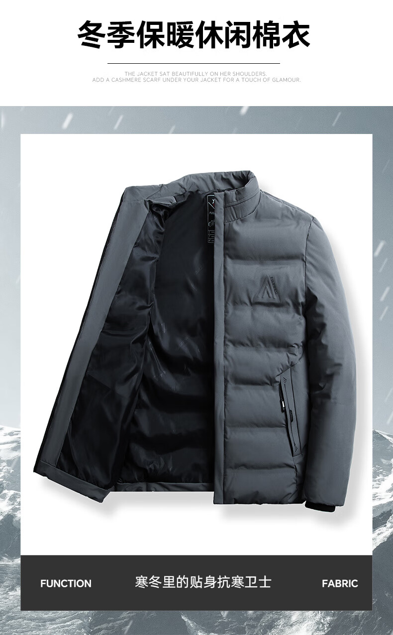 Pierre Cardin men's winter thickened cotton coat for young and middle-aged people, stand-up collar cotton coat, warm casual men's top, black XL