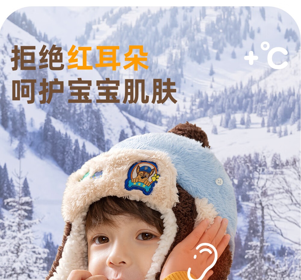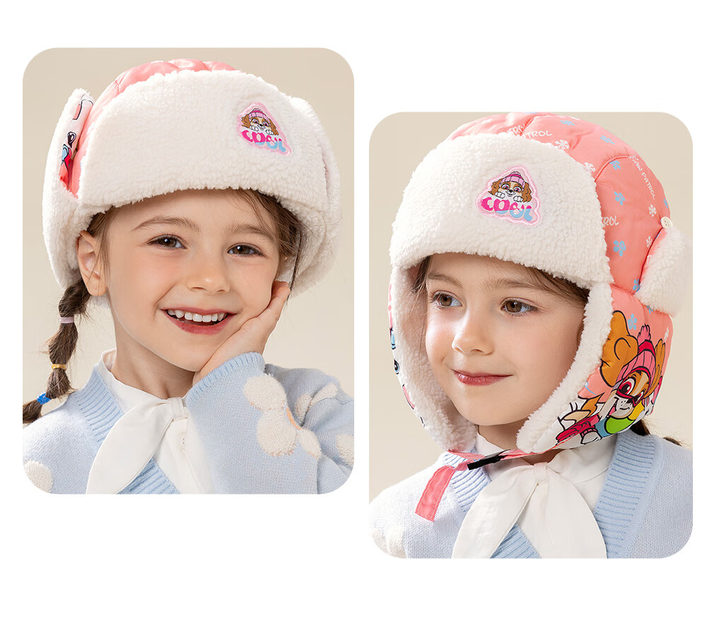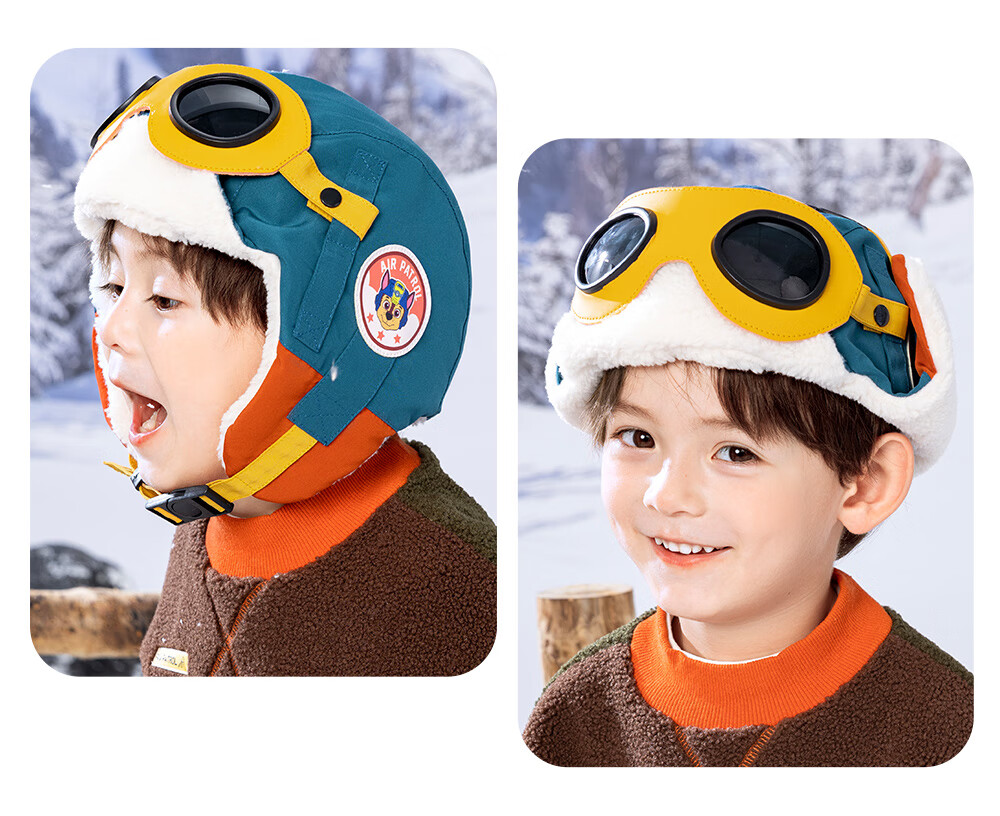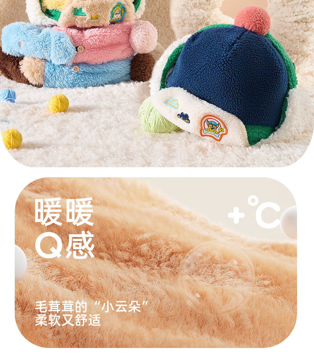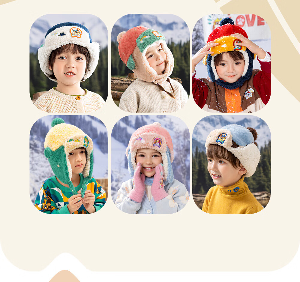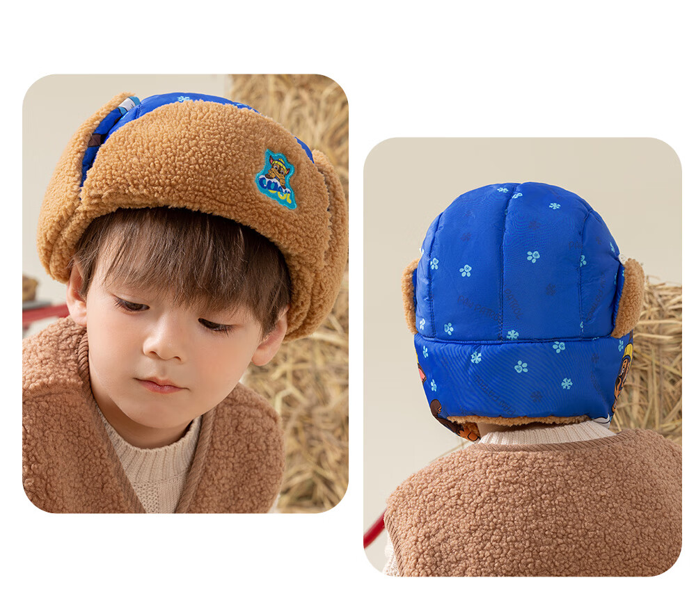 Paw Paw Team Li Dagong Children's Hat Autumn and Winter Windproof Ear Protection Lei Feng Hat Male and Female Baby Plus Velvet Warm Hat Light Blue 0321