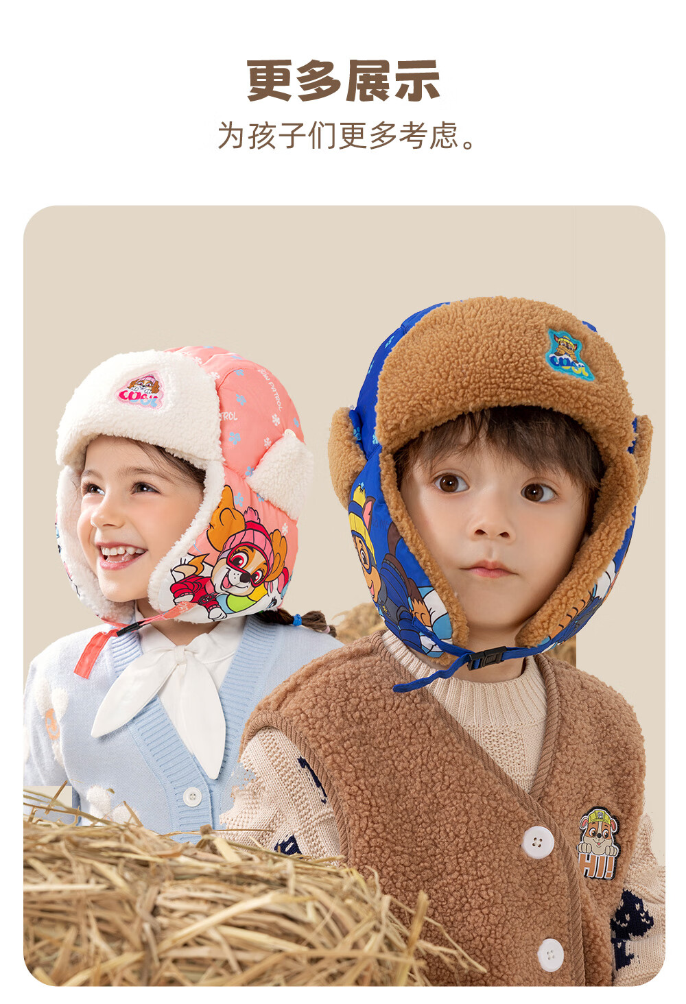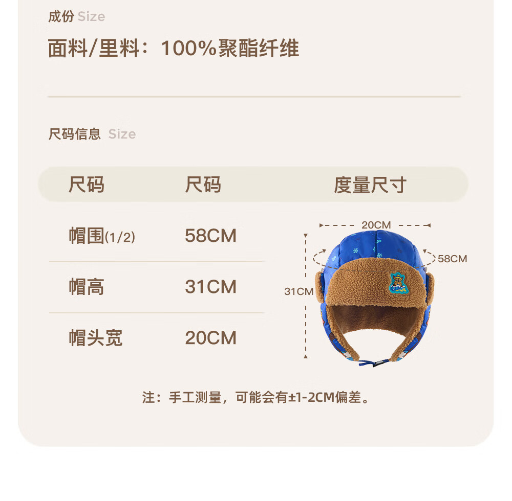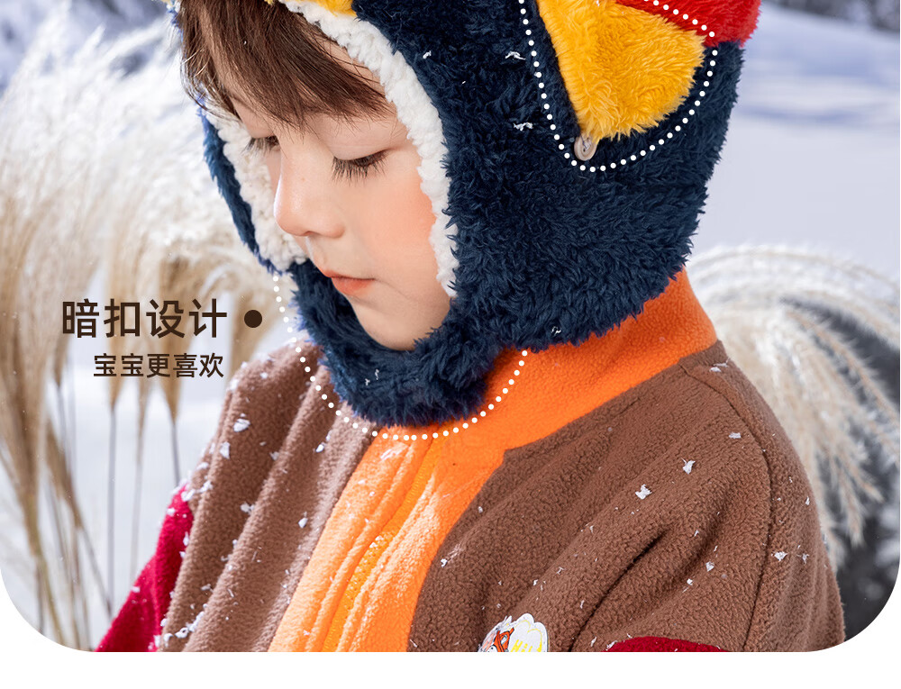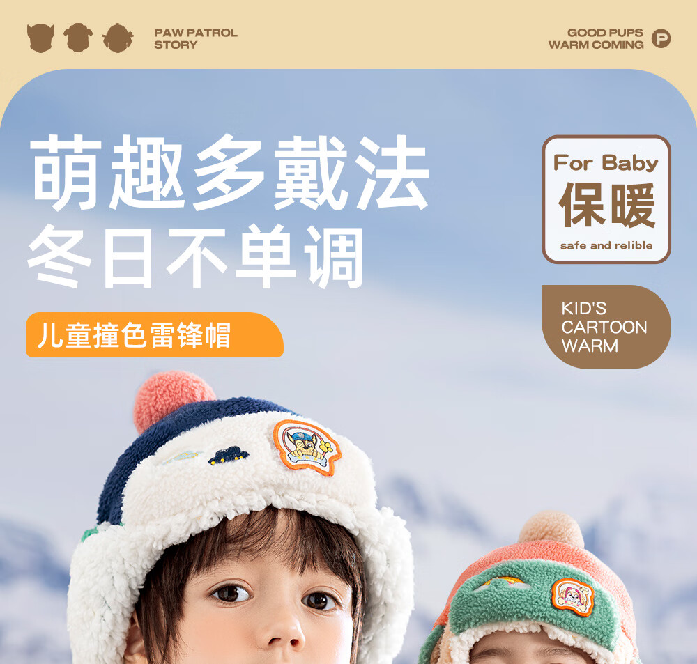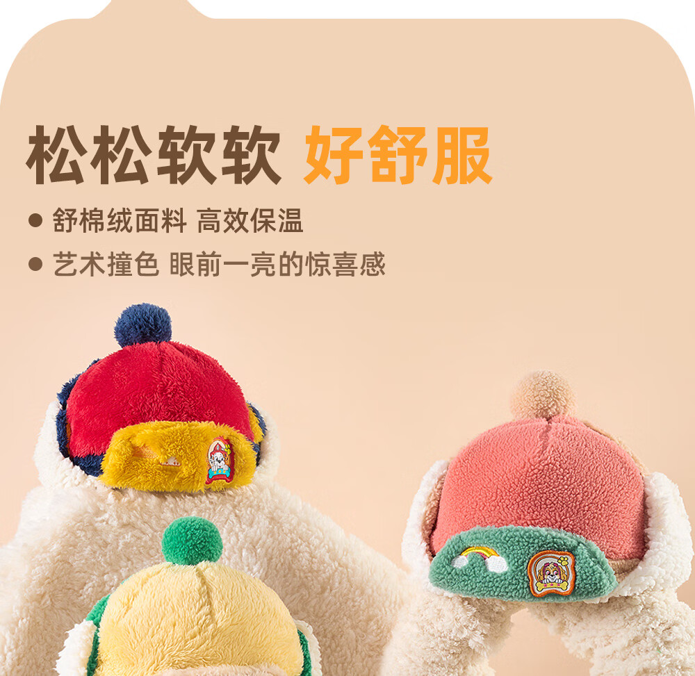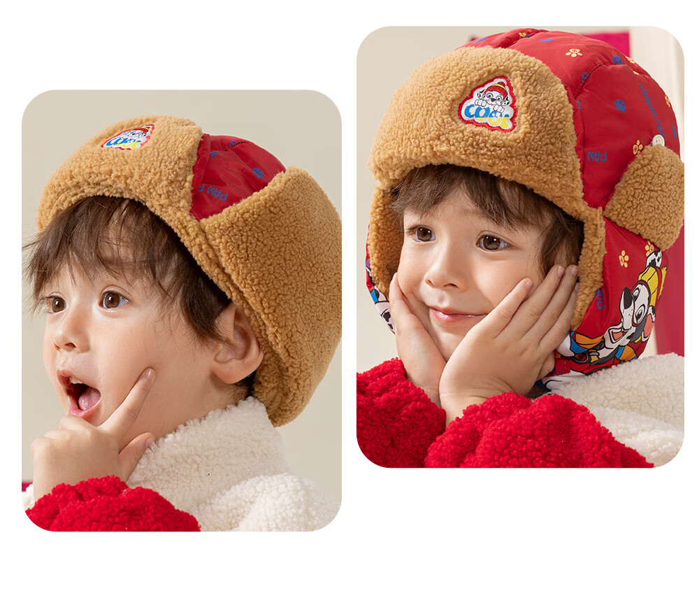 Paw Paw Team Li Dagong Children's Hat Autumn and Winter Windproof Ear Protection Lei Feng Hat Male and Female Baby Plus Velvet Warm Hat Light Blue 0321