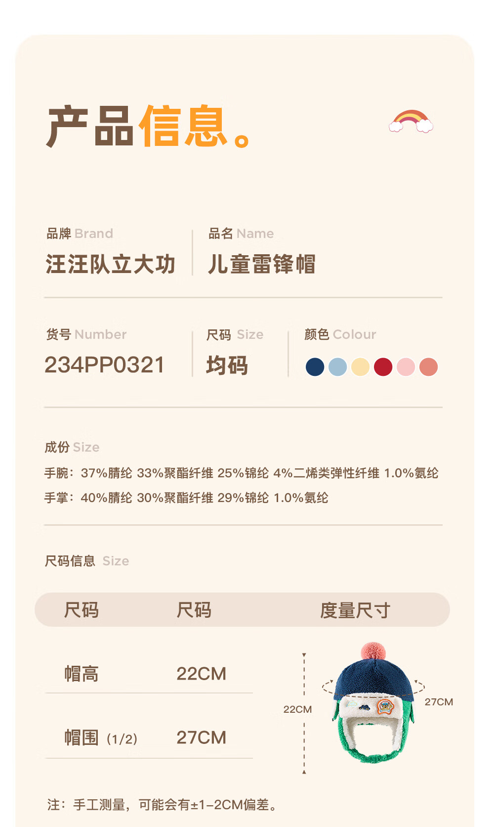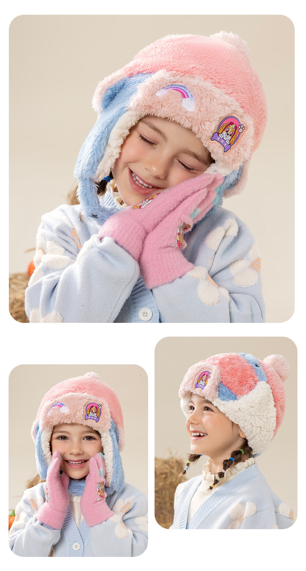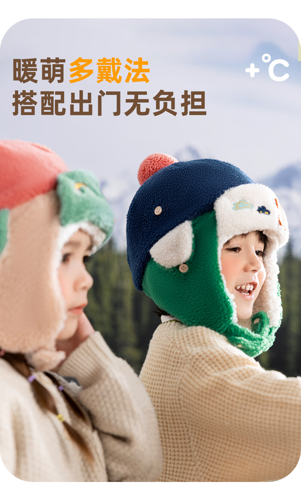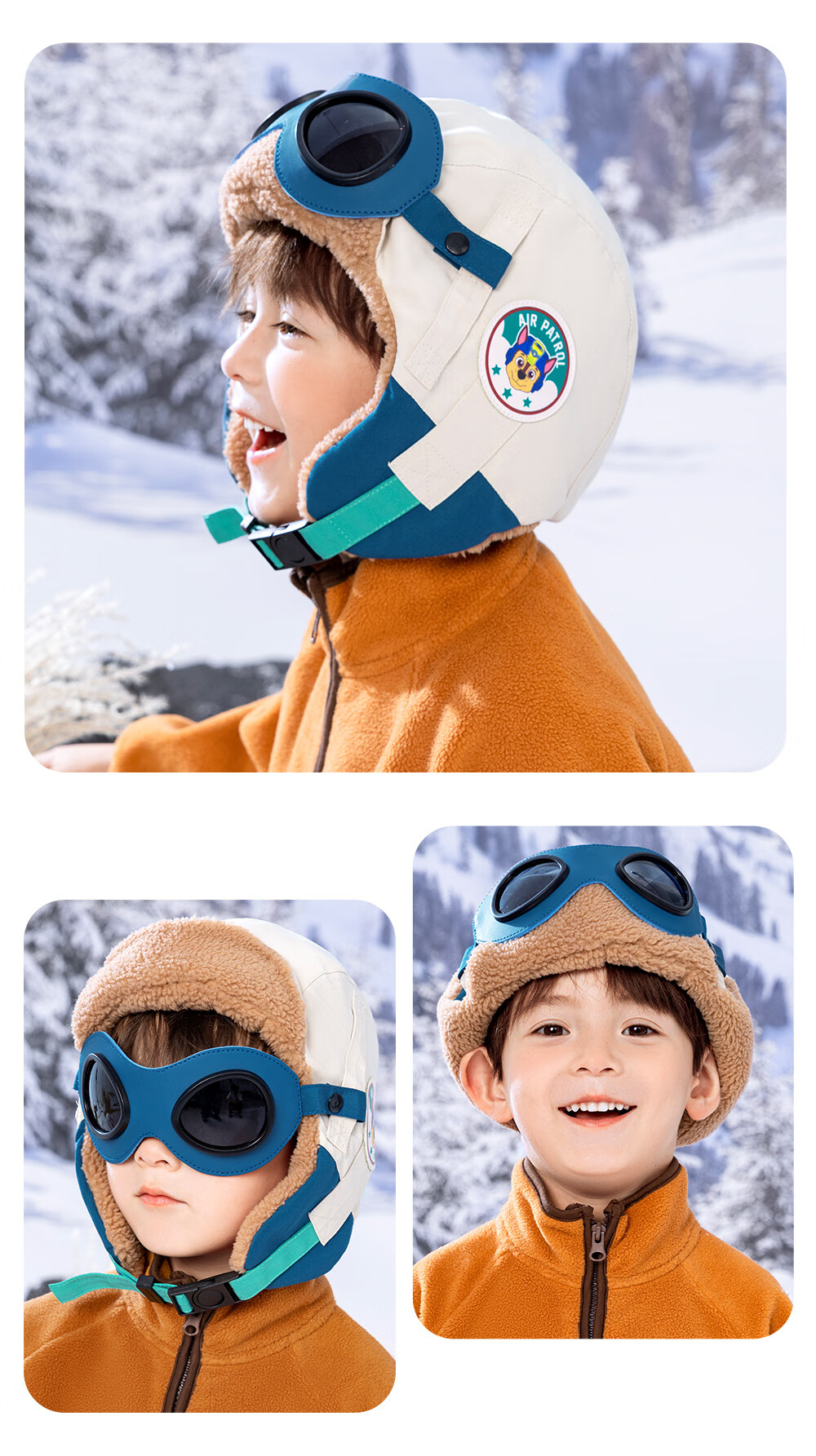 Paw Paw Team Li Dagong Children's Hat Autumn and Winter Windproof Ear Protection Lei Feng Hat Male and Female Baby Plus Velvet Warm Hat Light Blue 0321