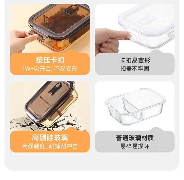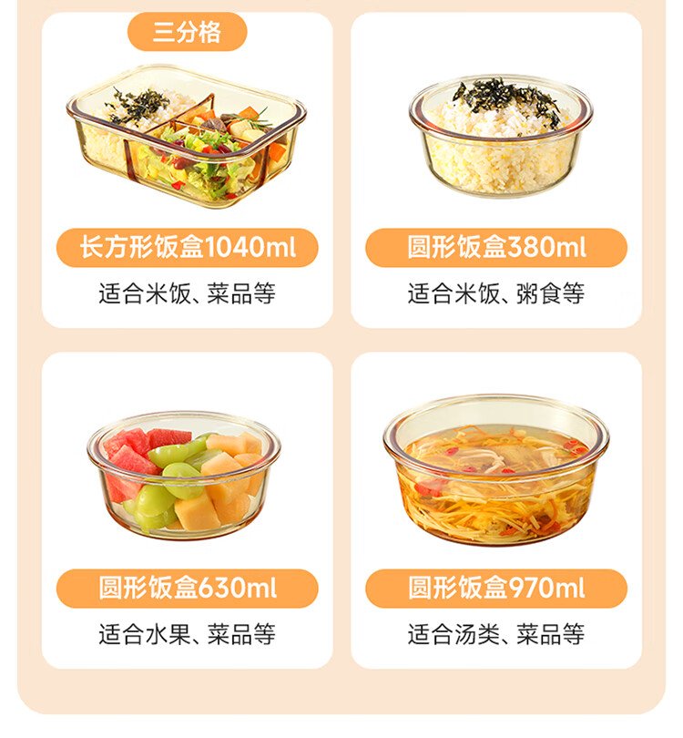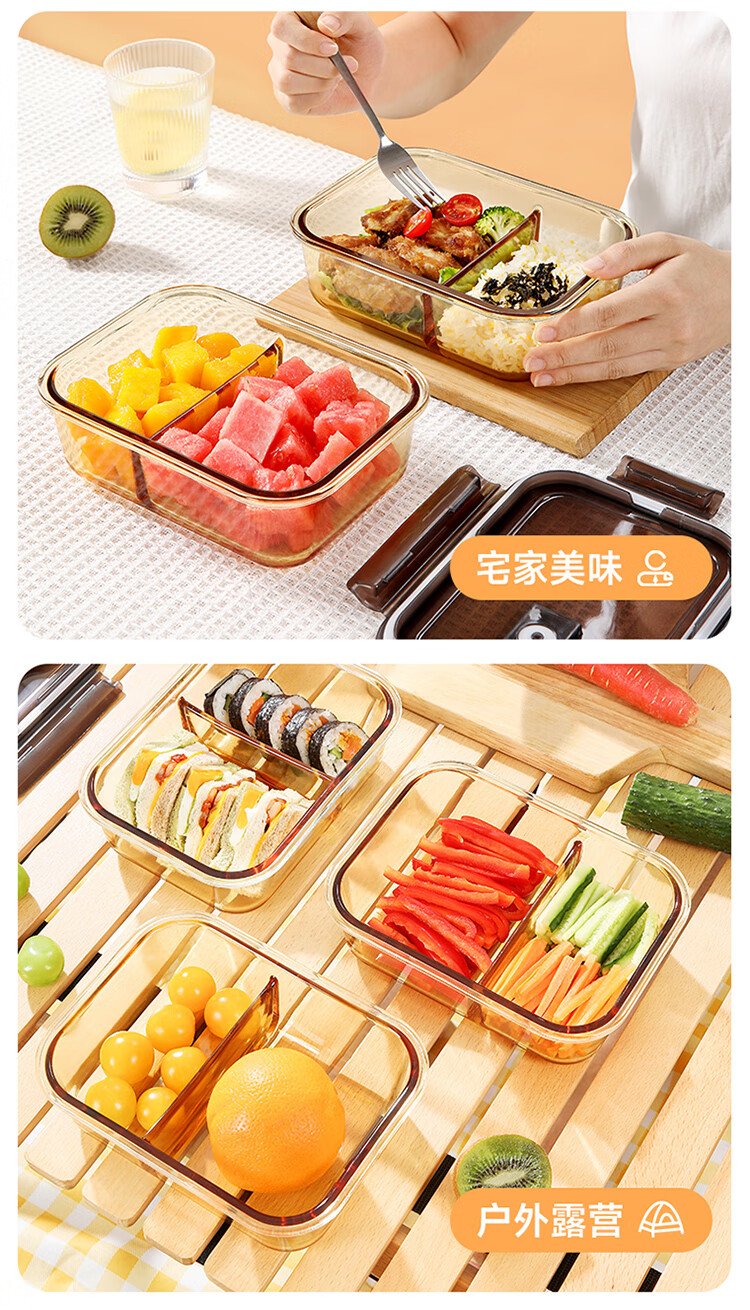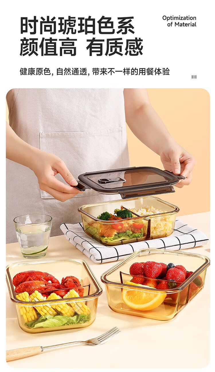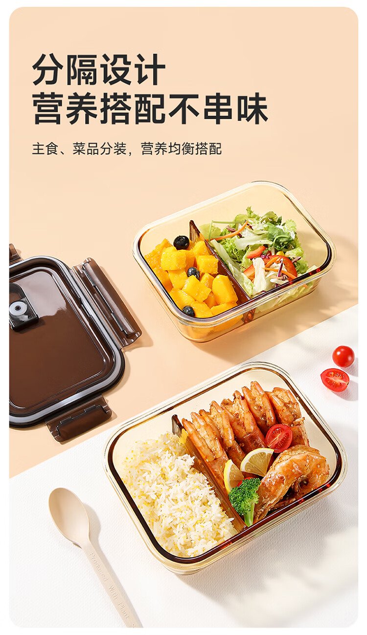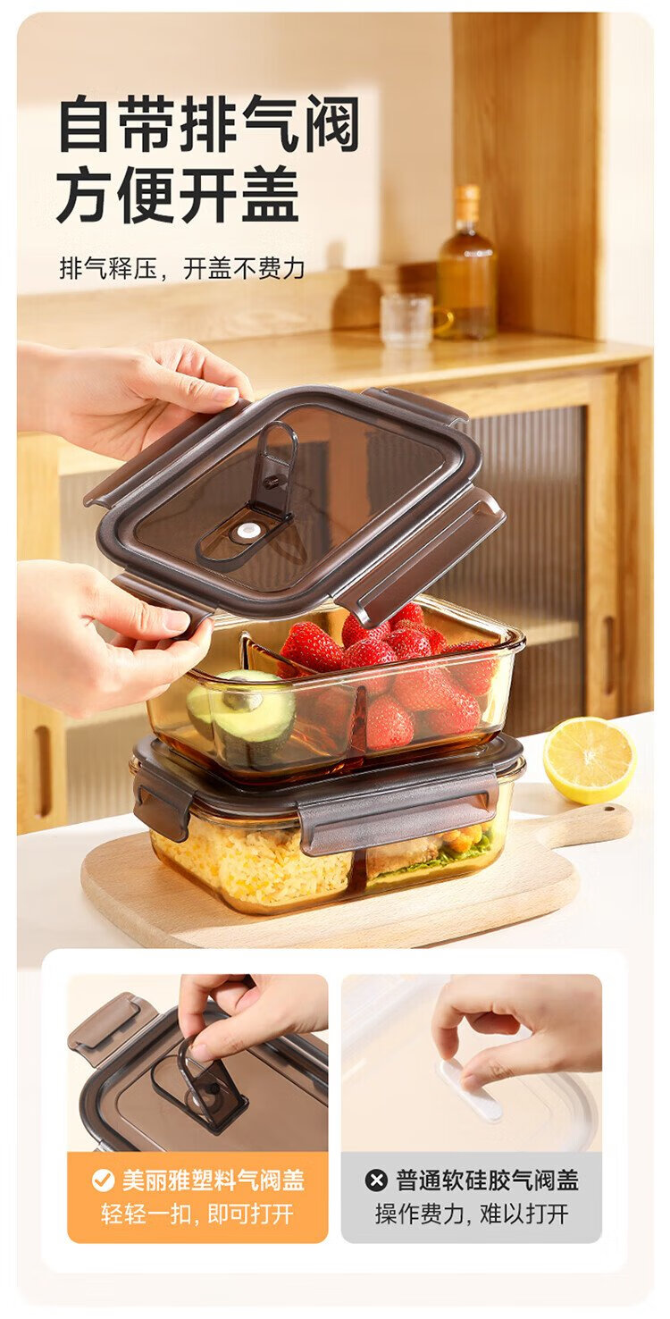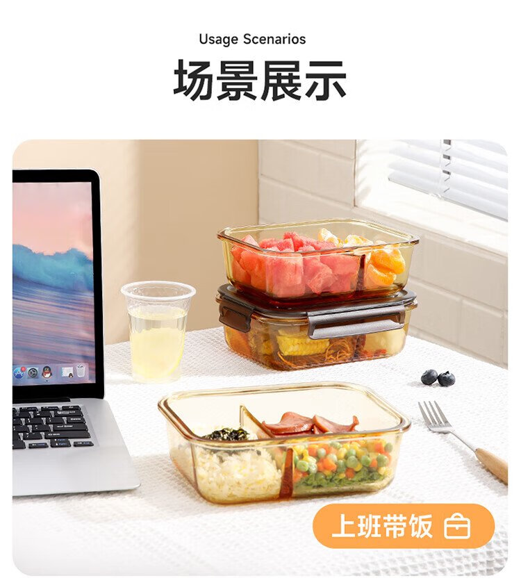 Meiliacao borosilicate glass lunch box 1040ml two-partition lunch box for office workers to bring meals and can be microwaved to keep fresh