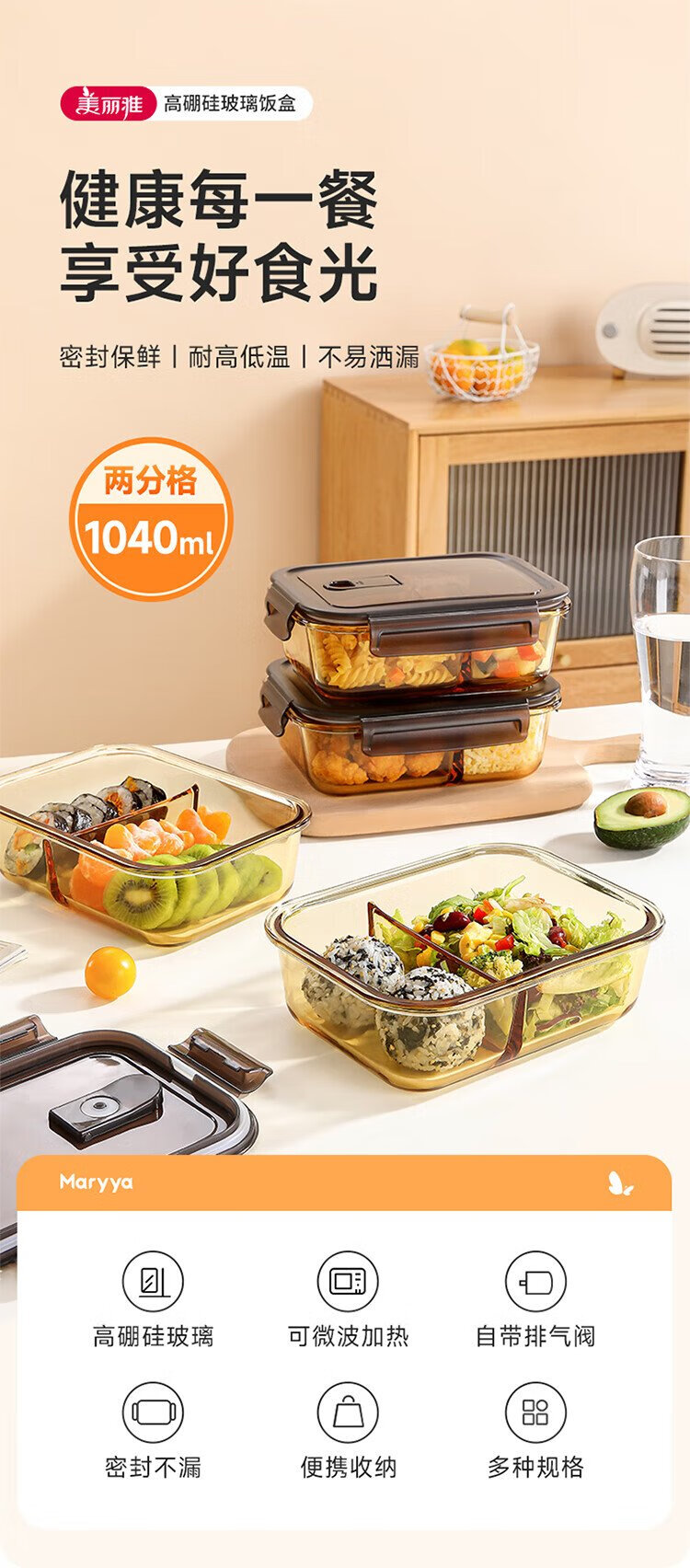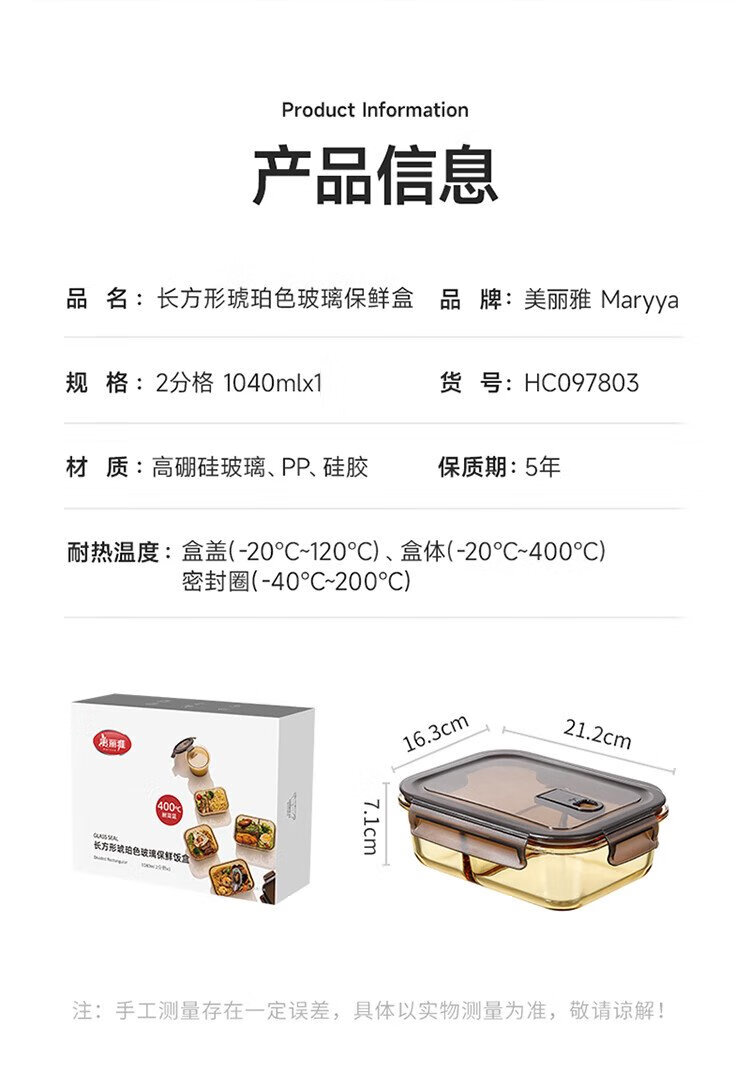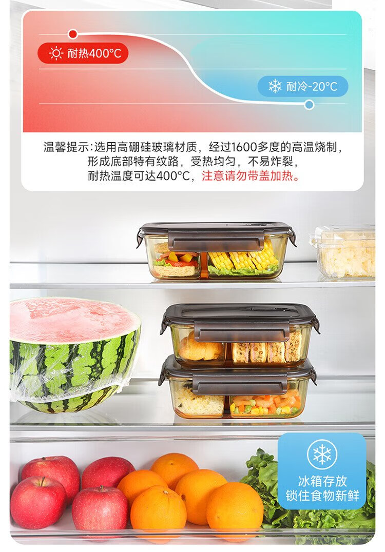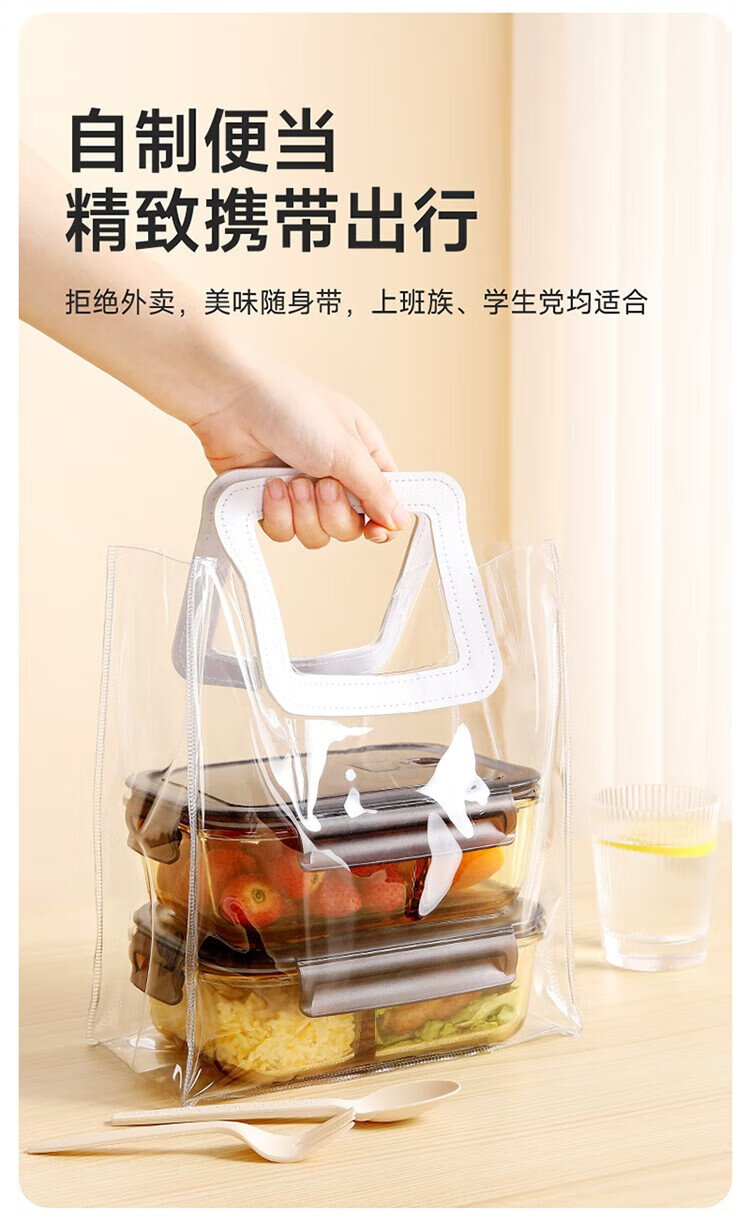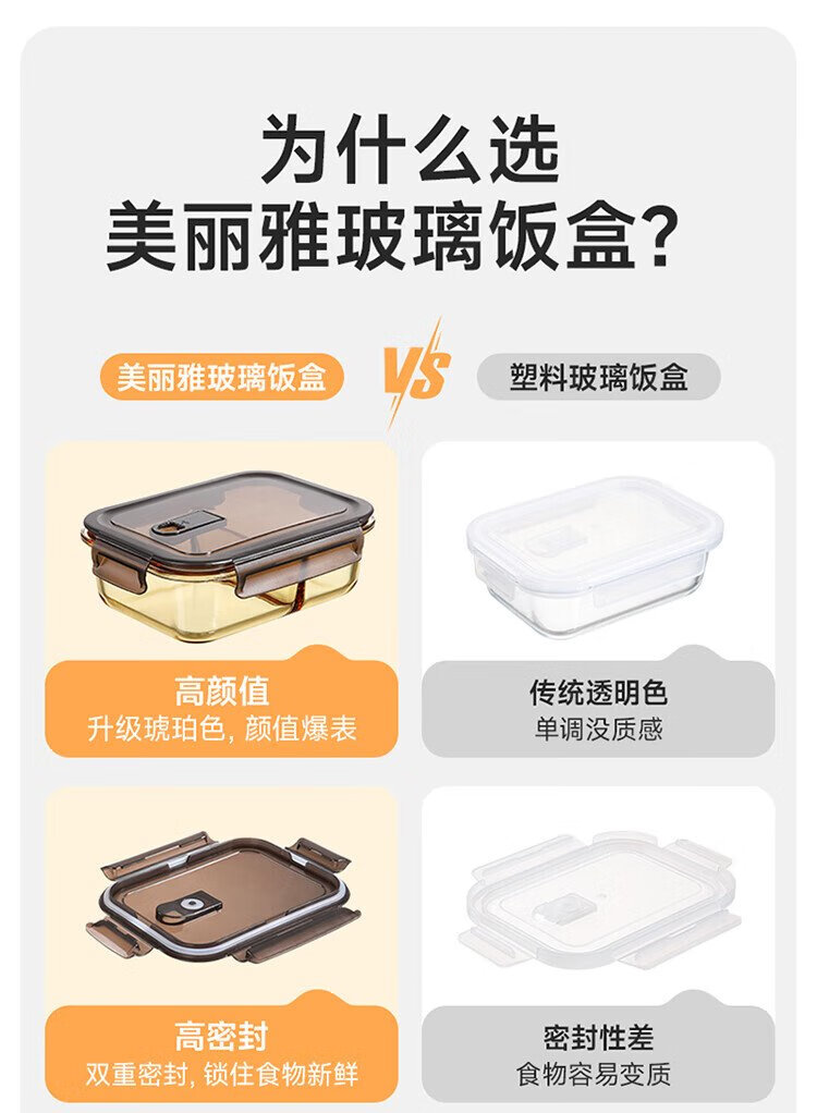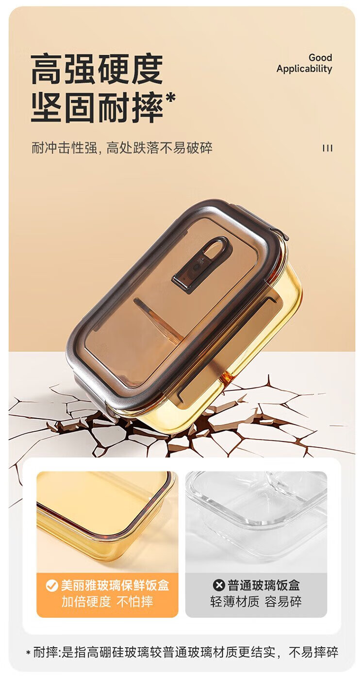 Meiliacao borosilicate glass lunch box 1040ml two-partition lunch box for office workers to bring meals and can be microwaved to keep fresh