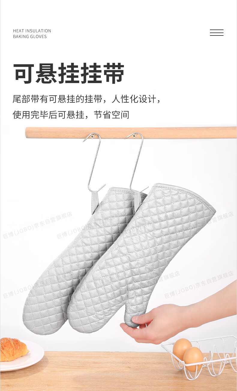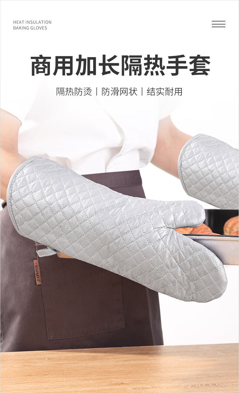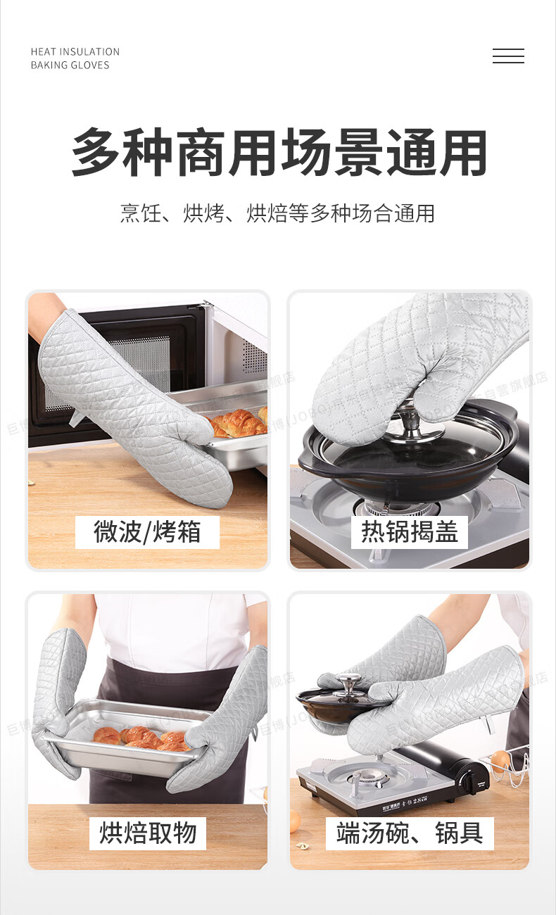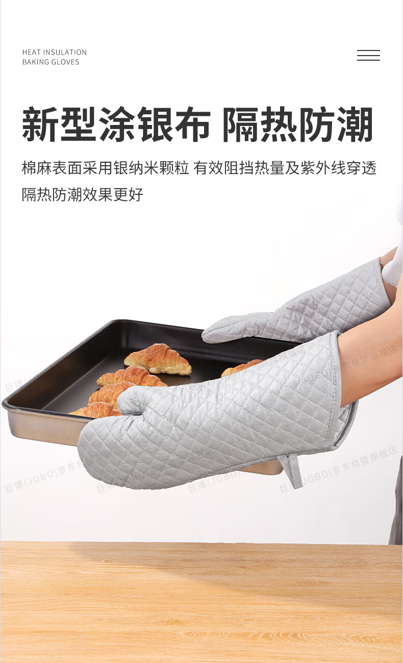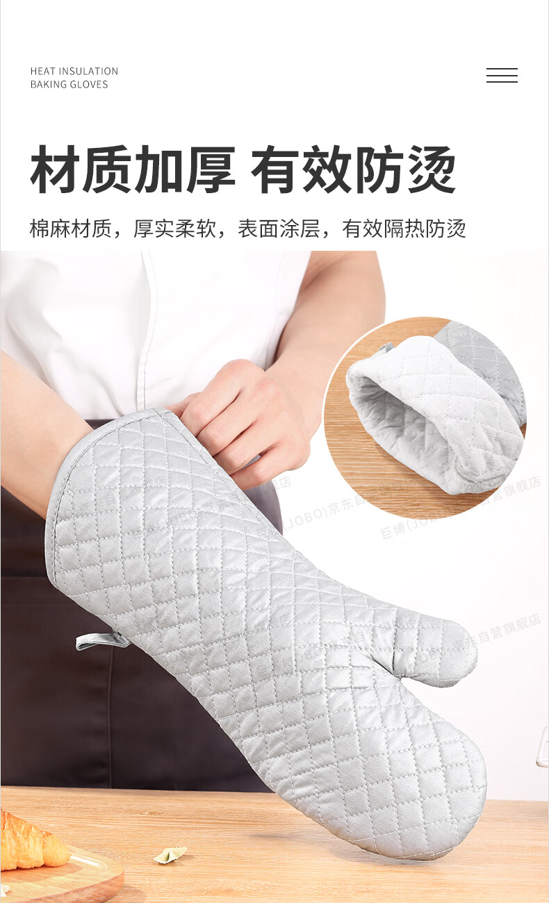 JOBO Commercial Insulated Gloves Extra Long Baking Anti-scalding Gloves 2 Pack High Temperature Resistant Oven Labor Protection