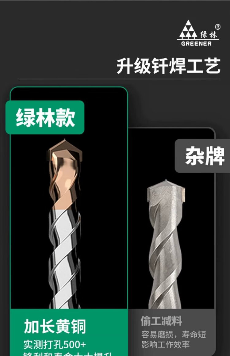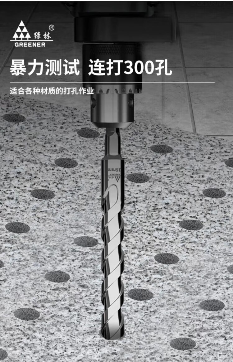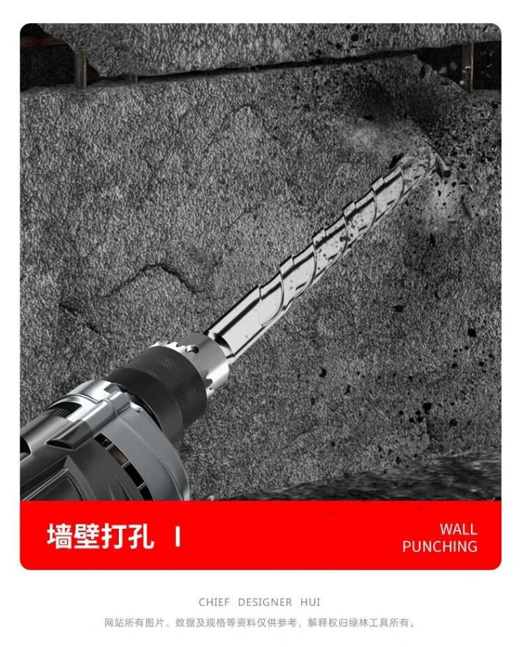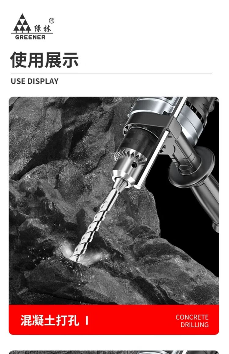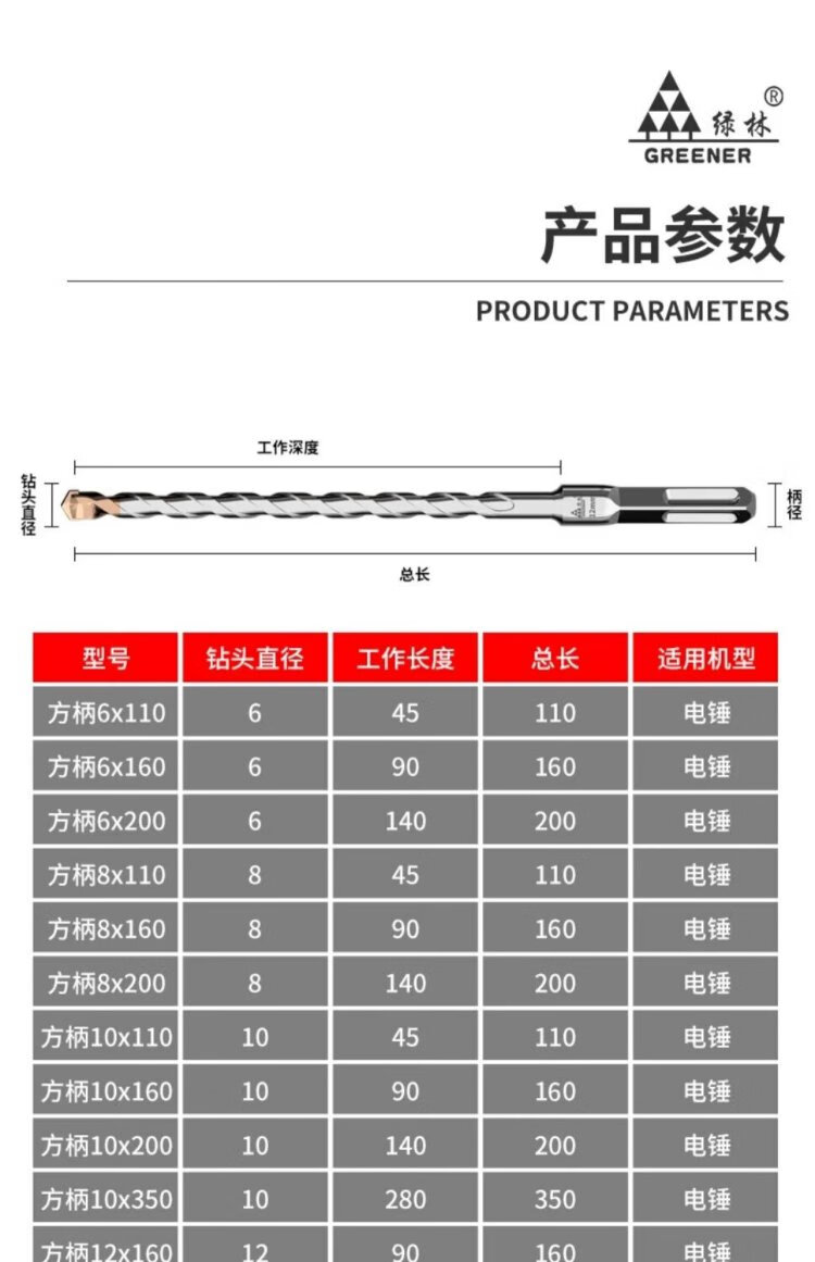 Green Forest Impact Drill Electric Hammer Through Wall Slotting Concrete Extended Perforation Round Handle 6/8/10/12 x160mm