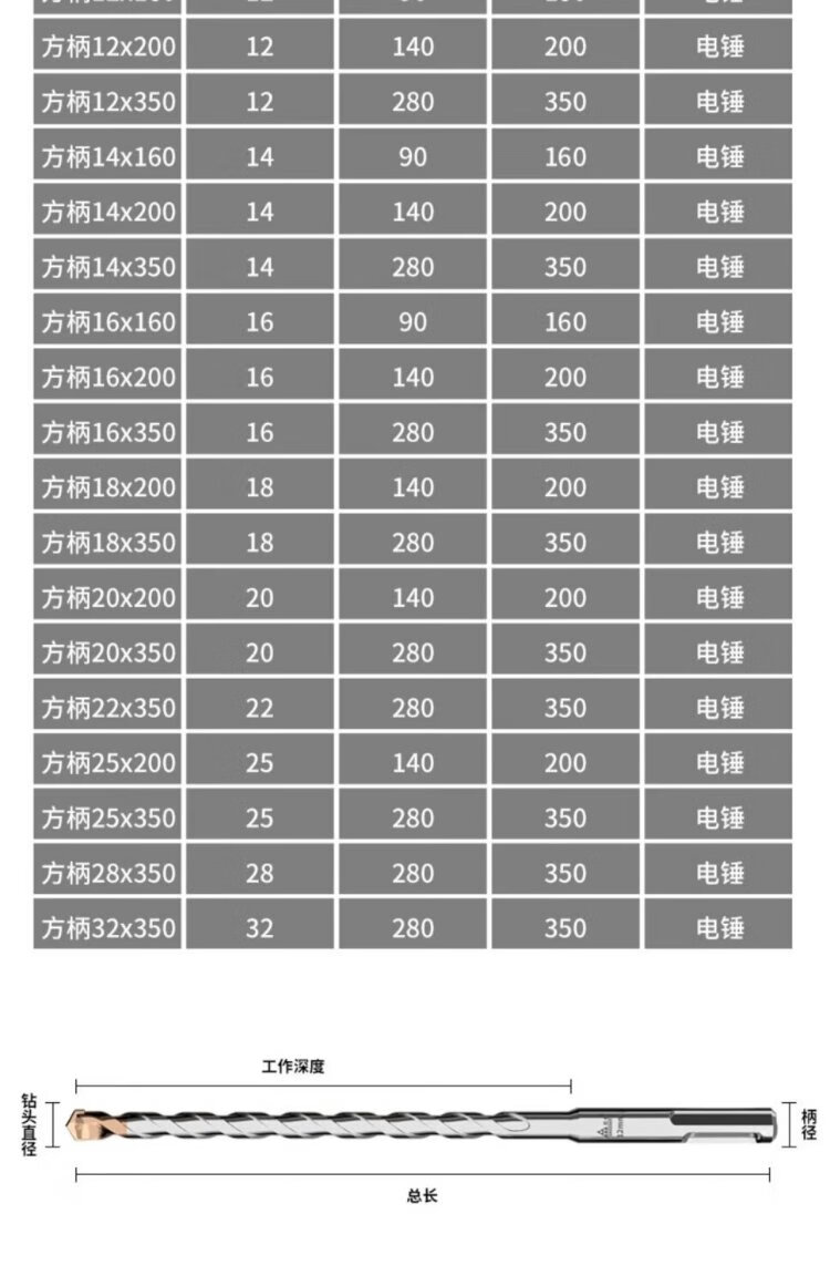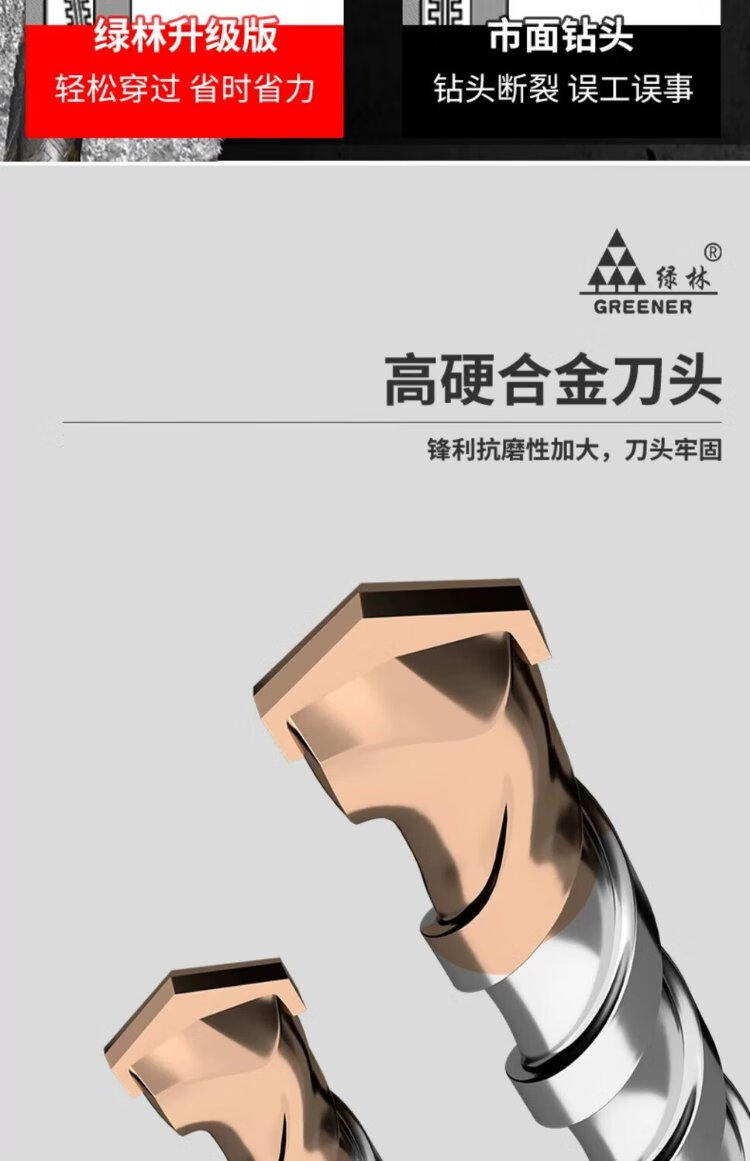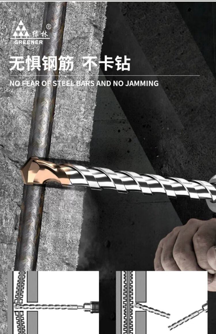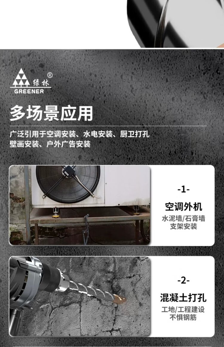 Green Forest Impact Drill Electric Hammer Through Wall Slotting Concrete Extended Perforation Round Handle 6/8/10/12 x160mm