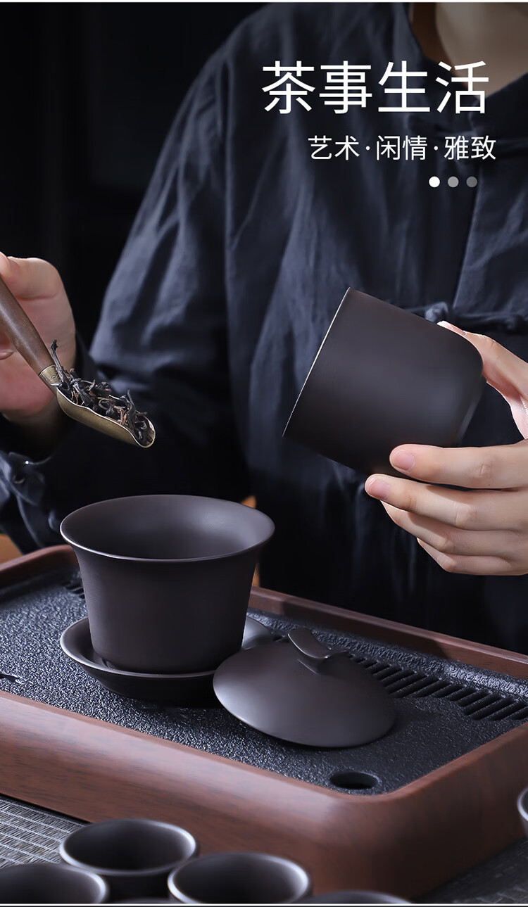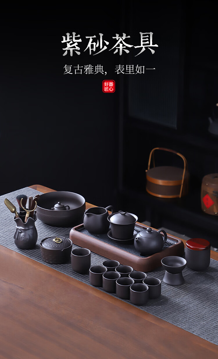 Haofeng 2025 new complete set of purple clay kung fu tea set household teapot teacup office ceramics as a gift
