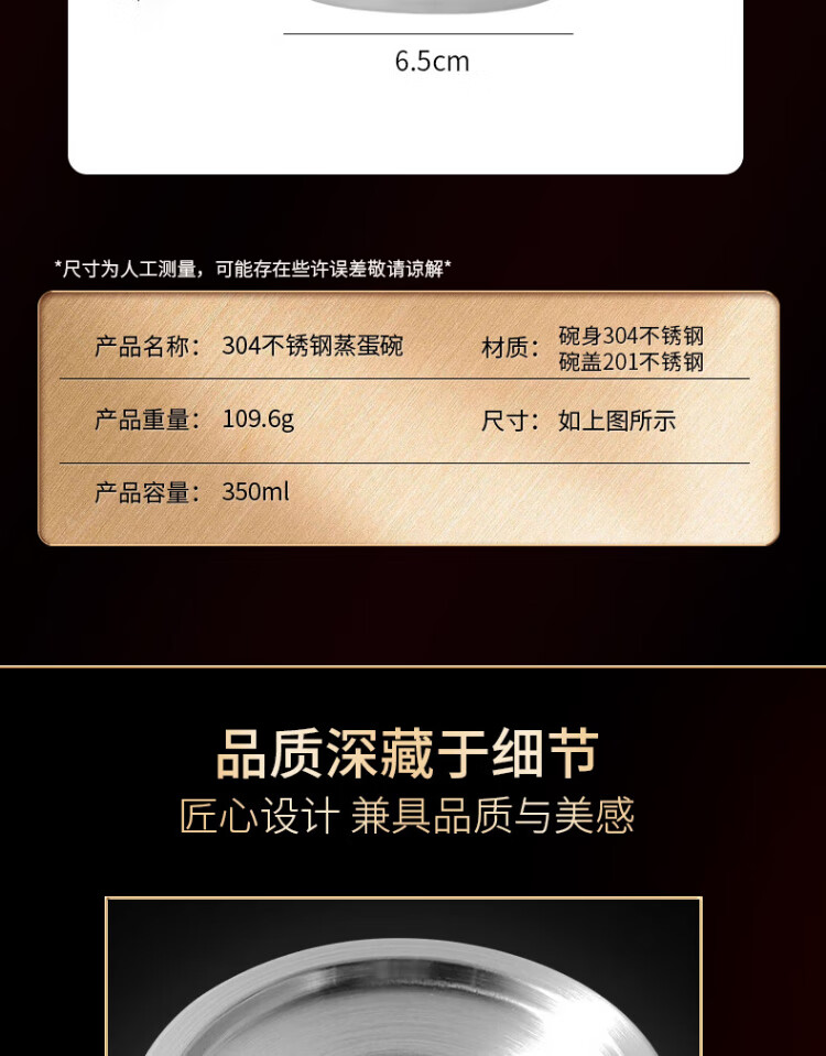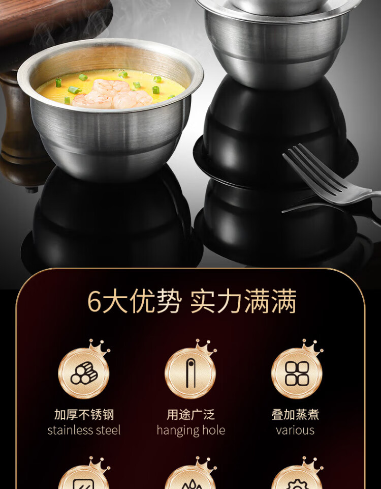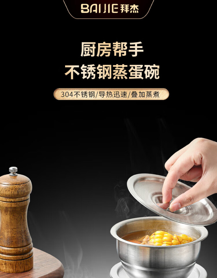 Baijie 304 stainless steel bowl, steamed egg bowl, baby food supplement tool, steamed egg custard, special steamed rice bowl, stew pot