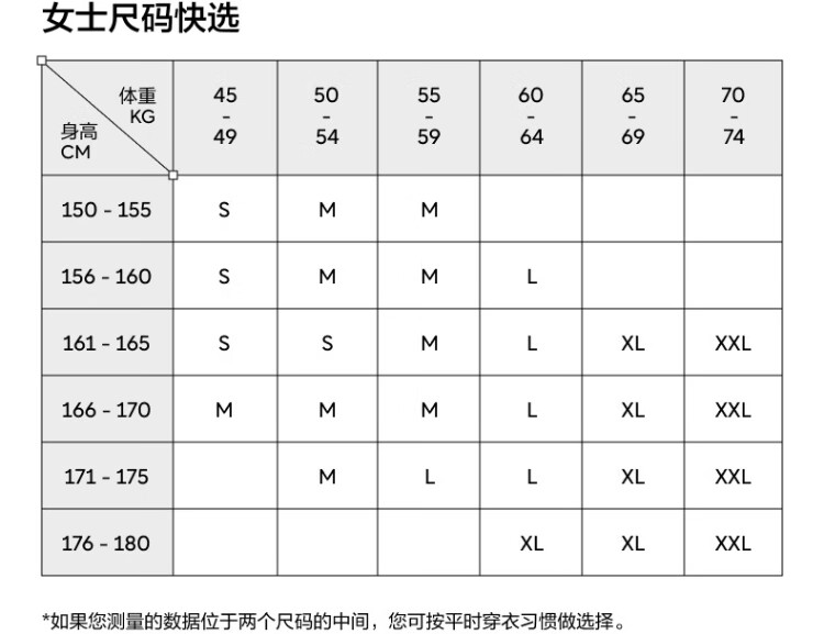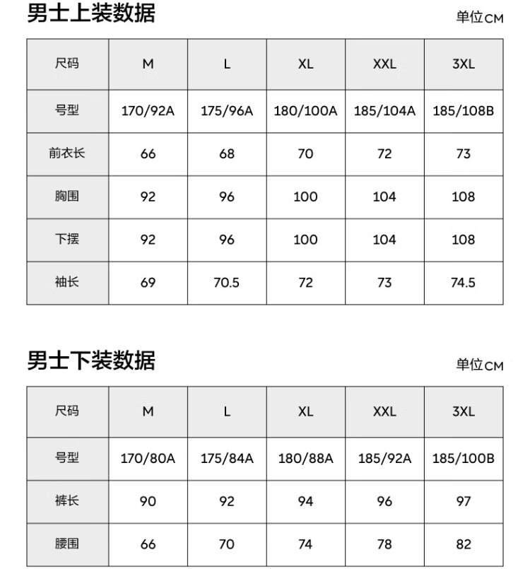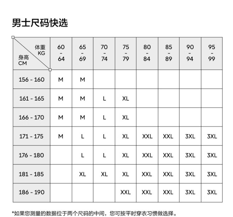China (cm) 160-165/84-86 165-170 / 88-90 167-172 / 92-96 168-173 / 98-102 170-176 / 106-110