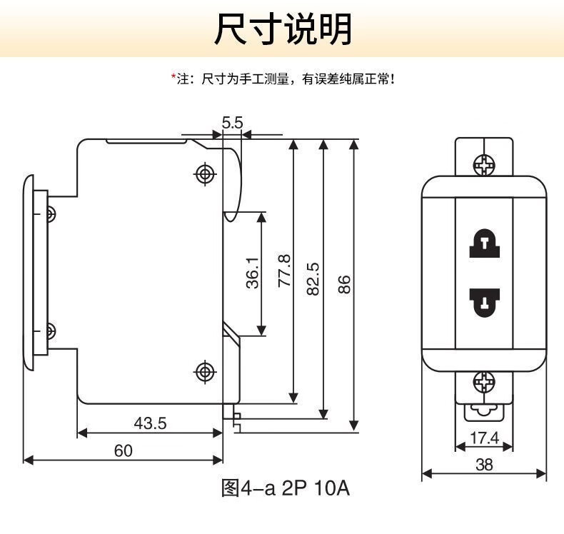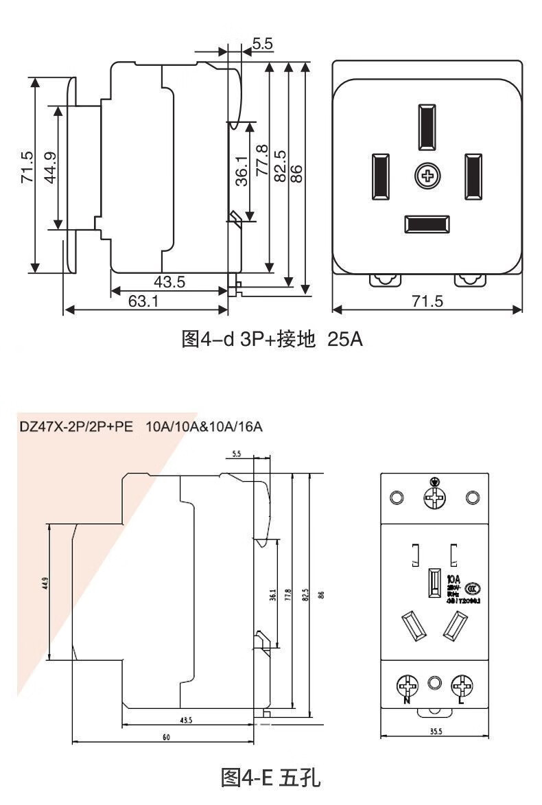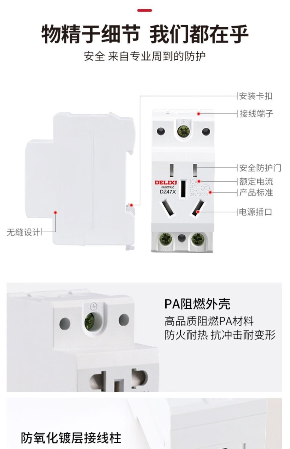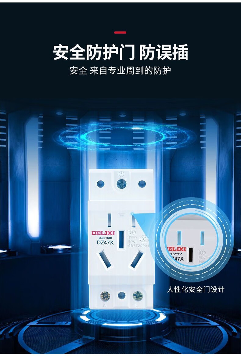 Delixi Electric rail socket two-hole 10A modular socket DZ47X210 single-phase two-pole 10A distribution box socket multimedia box construction site temporary socket