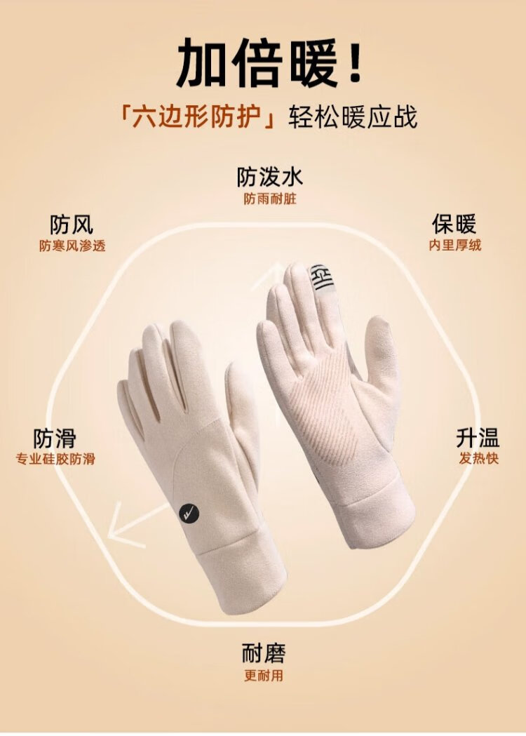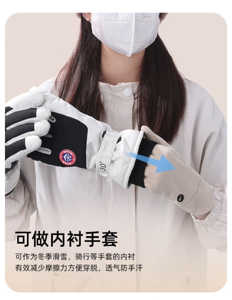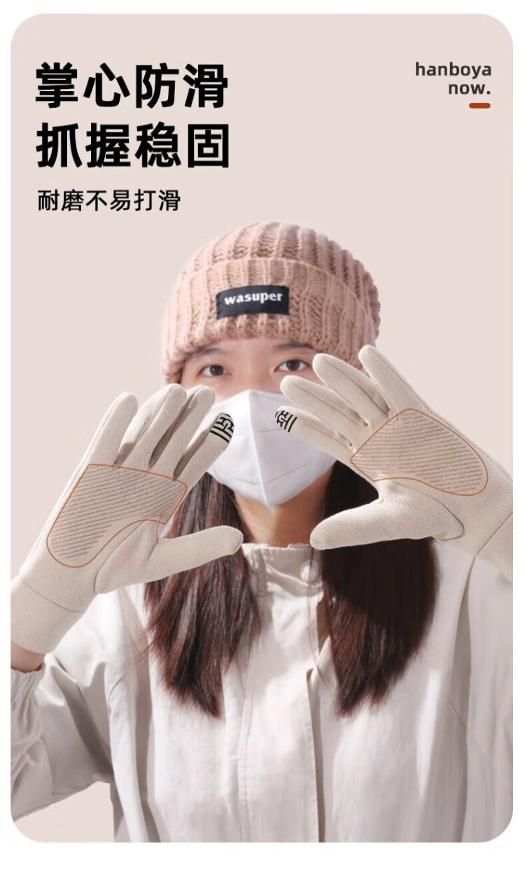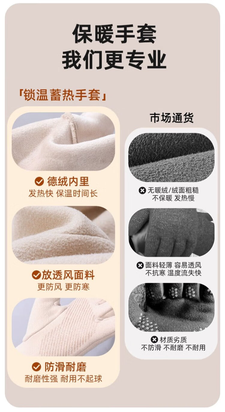 Pull back gloves women's winter warm plus velvet thick gloves men's touch screen non-slip windproof outdoor cycling extended cotton gloves