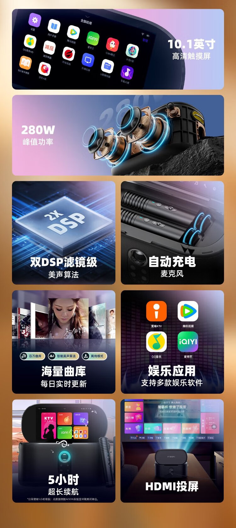 AISON K50 smart karaoke speaker Home KTV outdoor karaoke amplifier Bluetooth touch screen smart karaoke machine speaker gift gift national subsidy