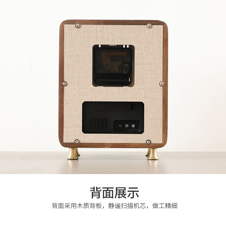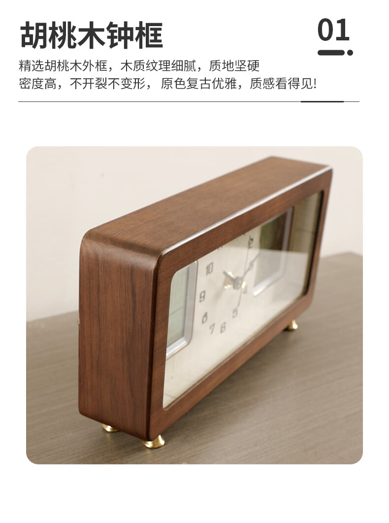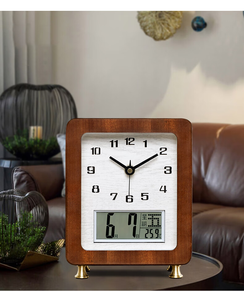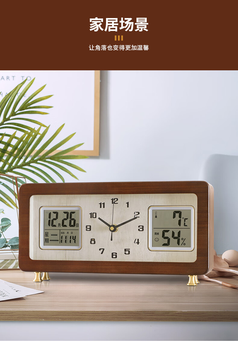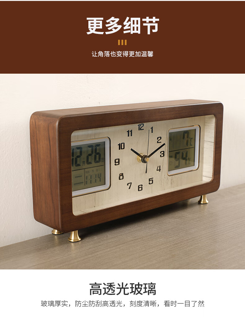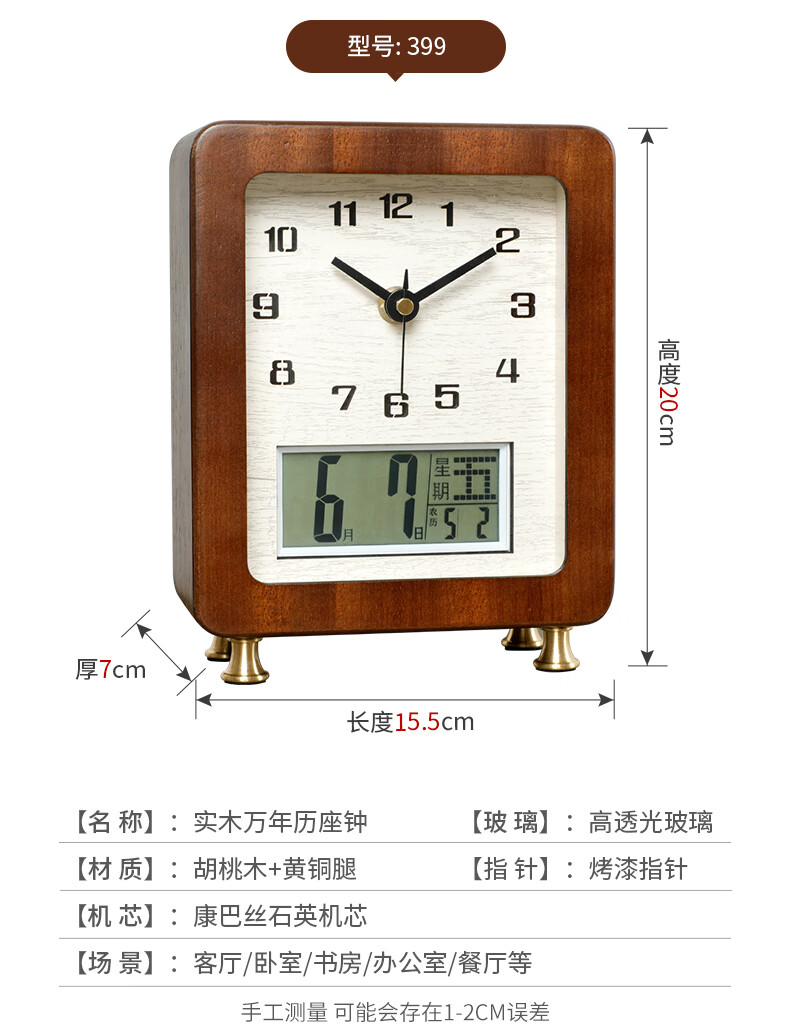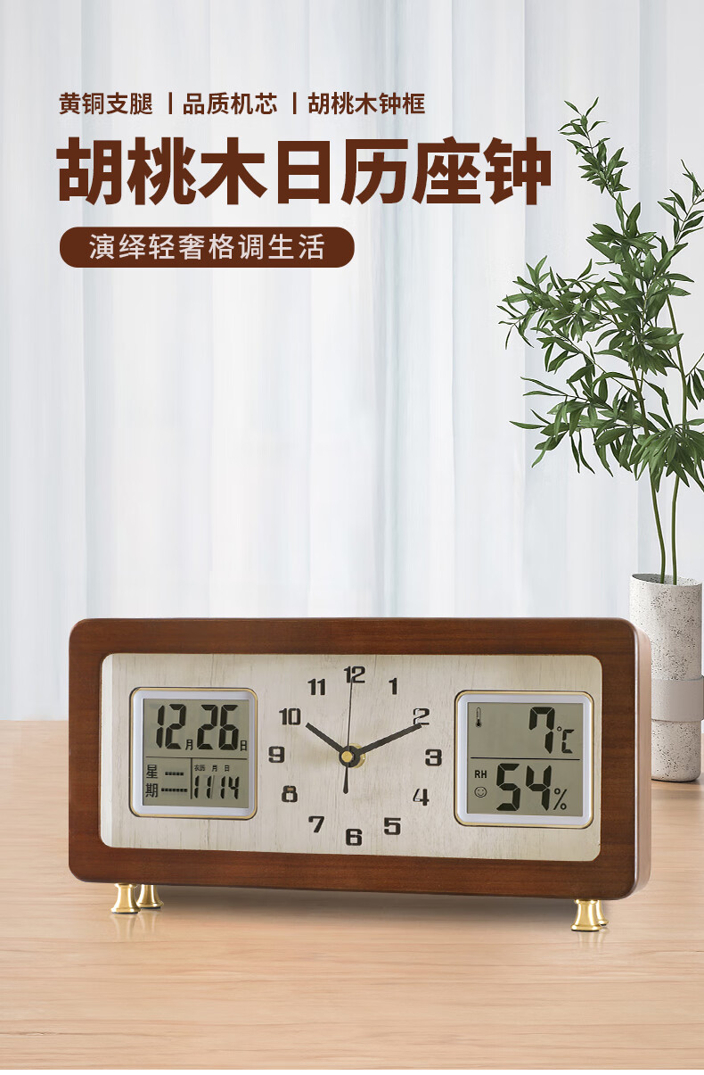 Combas solid wood desktop clock living room temperature and humidity perpetual calendar table clock brass leg clock 280 (32.5*17cm)