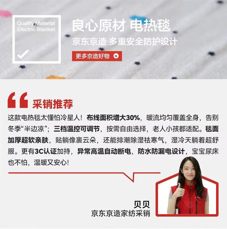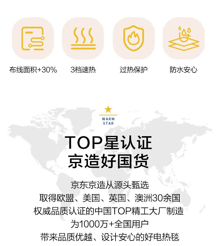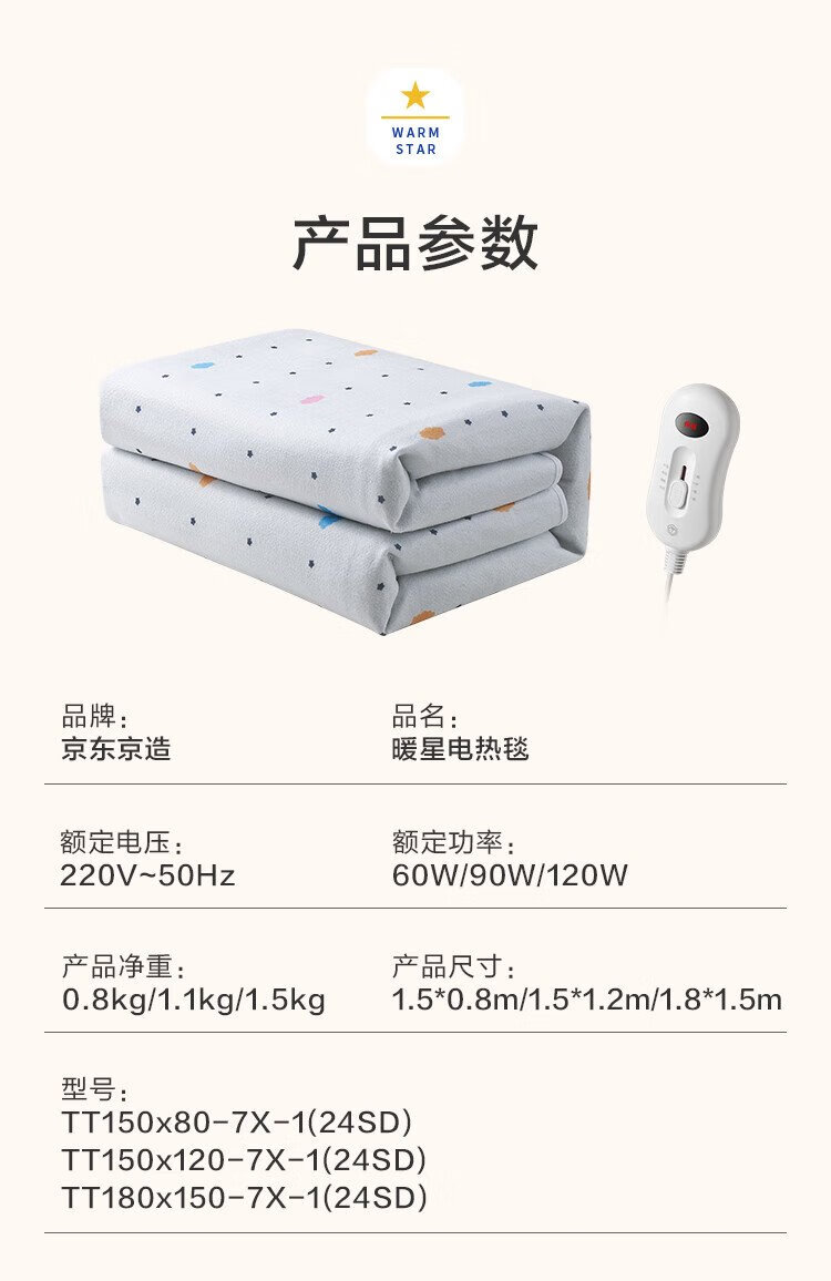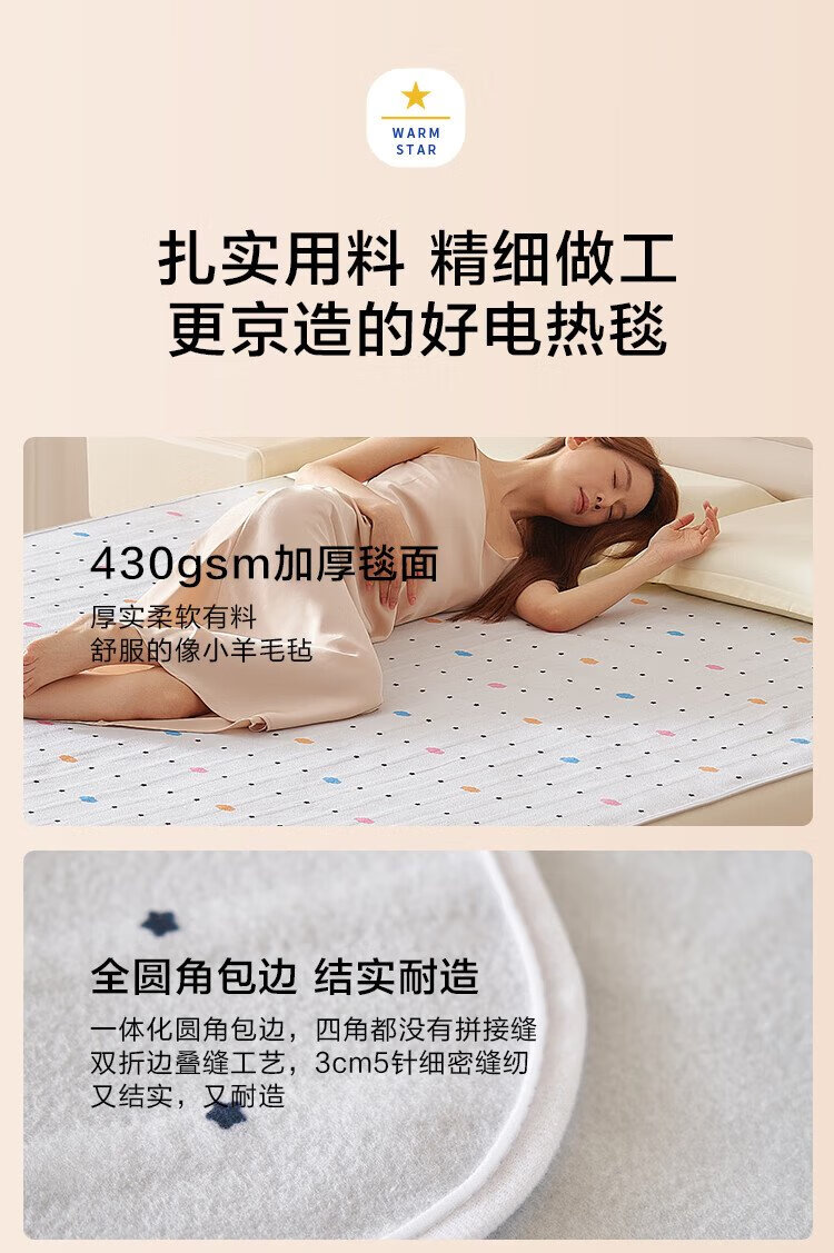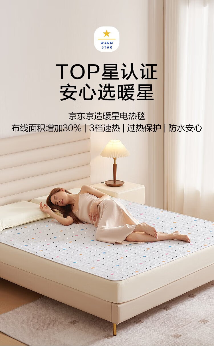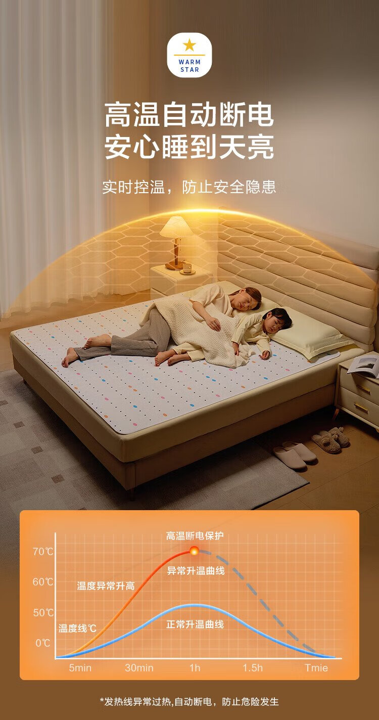 Made in Tokyo, TOP star certified warm star electric blanket, overheating and power outage, 3-speed temperature adjustment and mite removal electric mattress, double model 1.5x1.8m