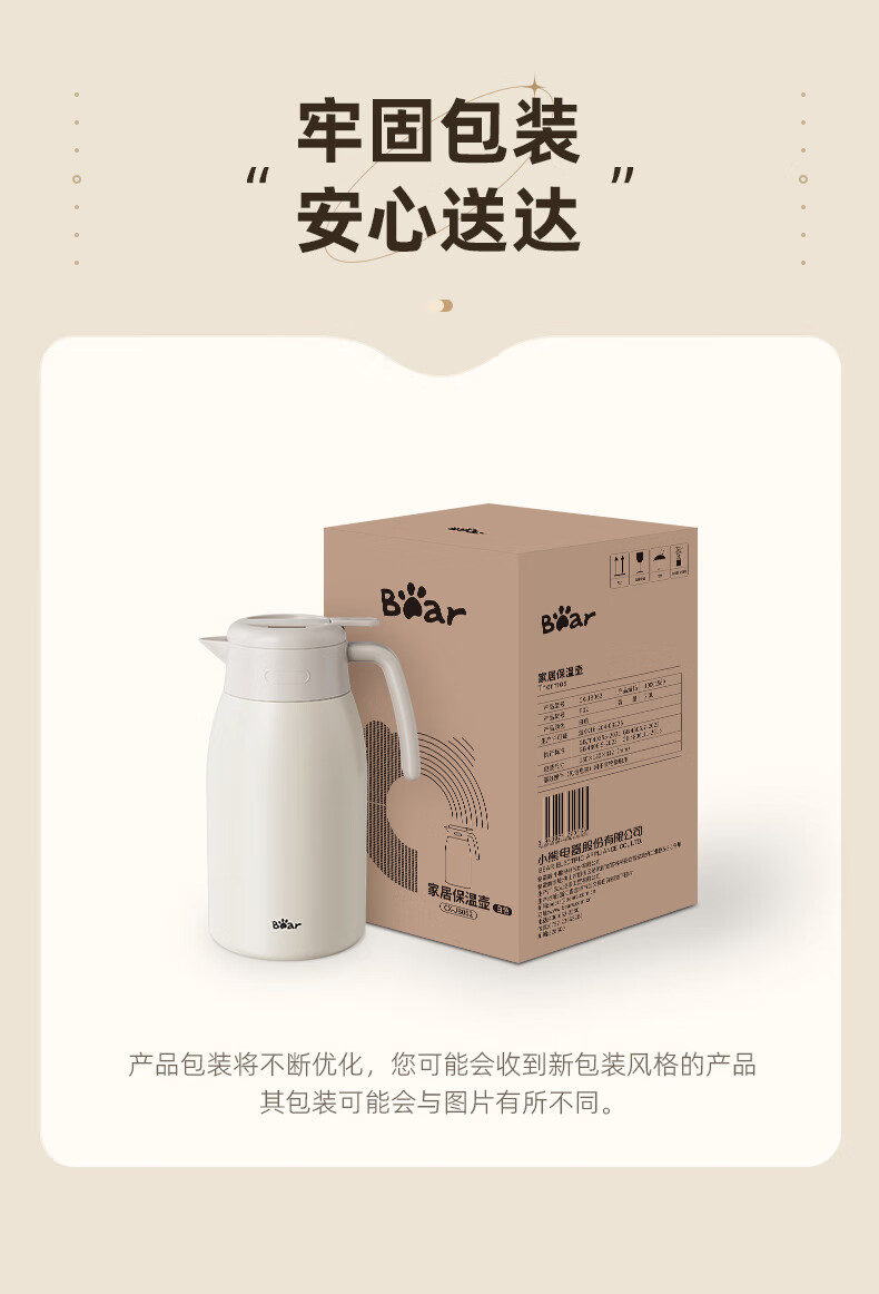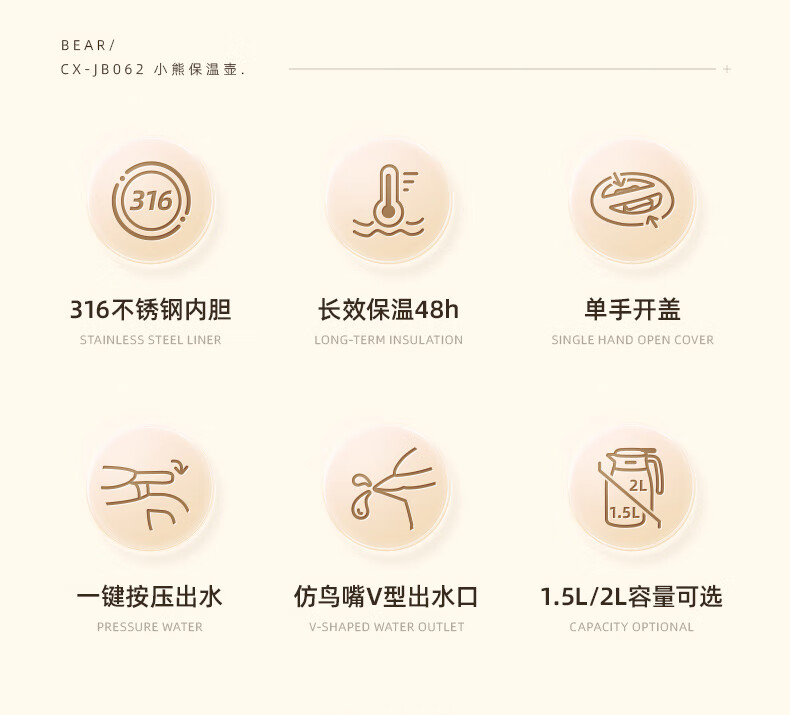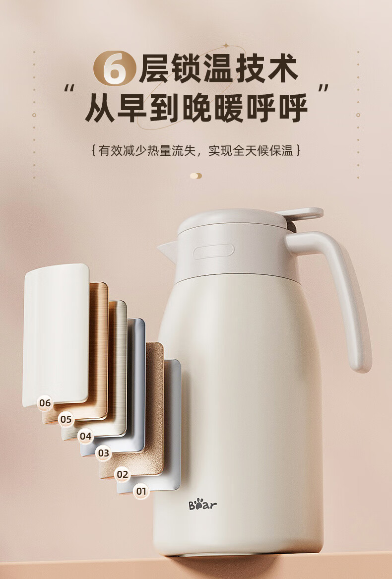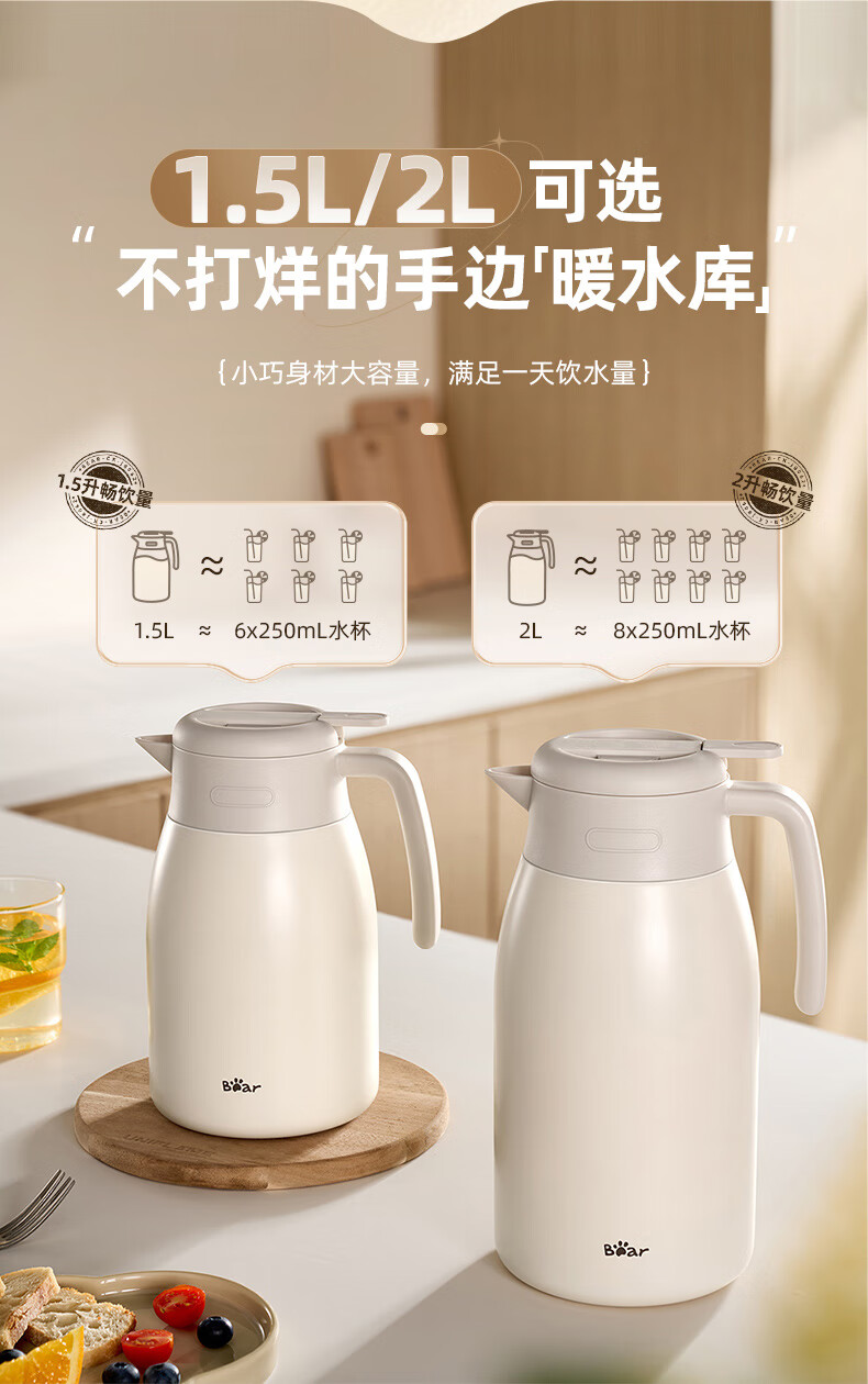 Bear thermal kettle 316 stainless steel household thermal kettle large capacity hot water bottle 2L JB062-P02