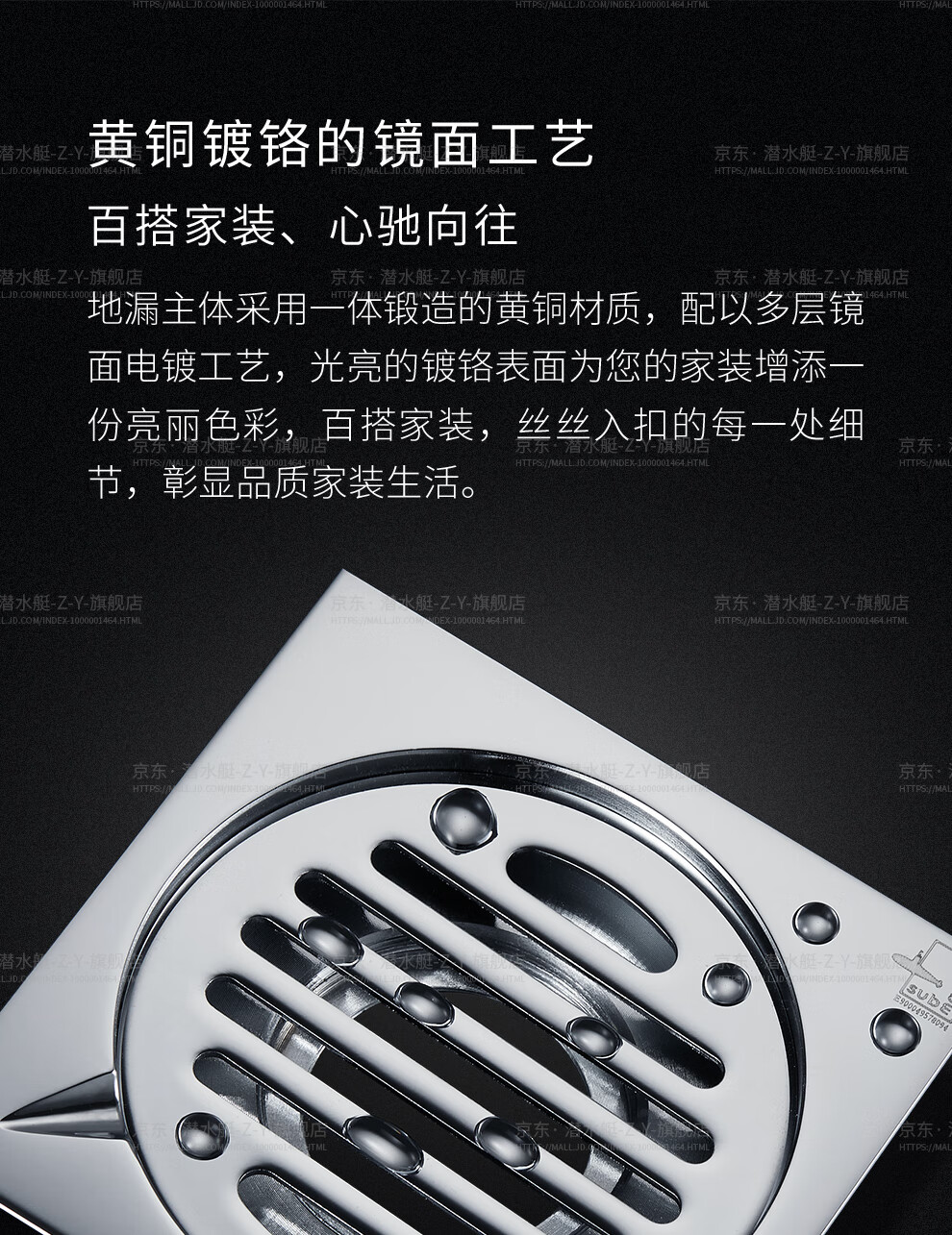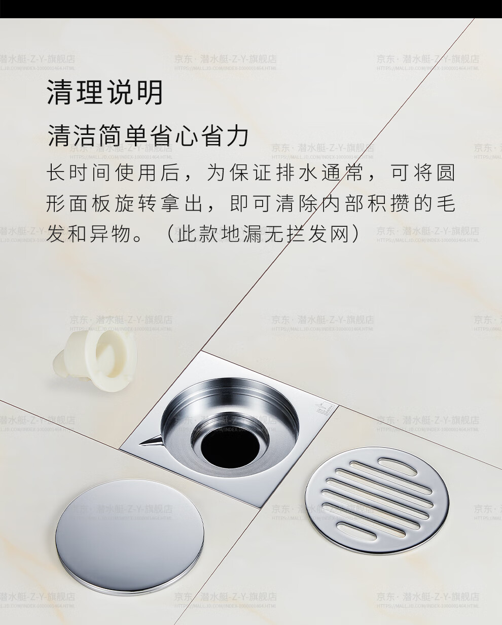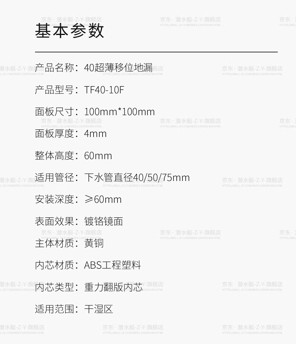 Submarine TF40-10F brass chrome-plated mirror ultra-thin anti-odor floor drain invisible shift floor drain 40 diameter