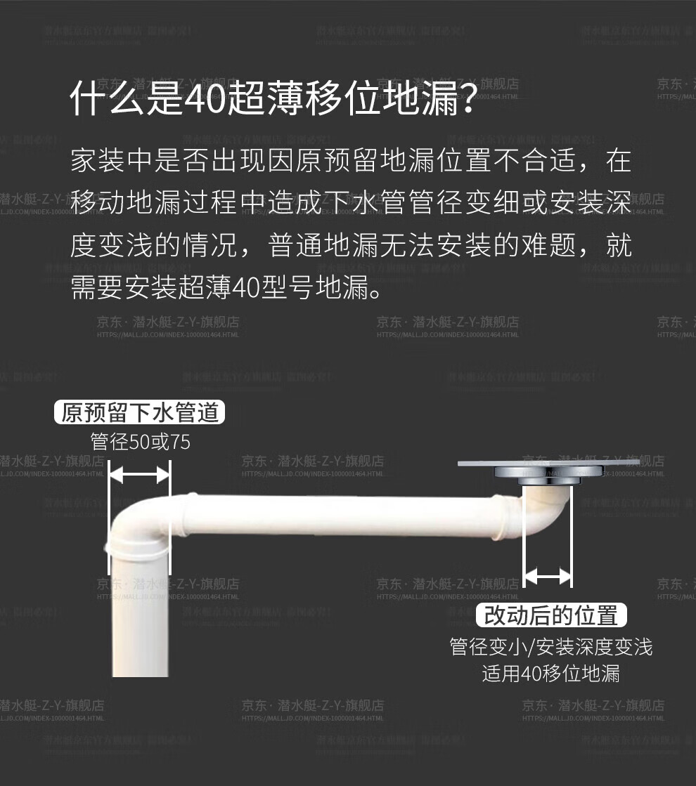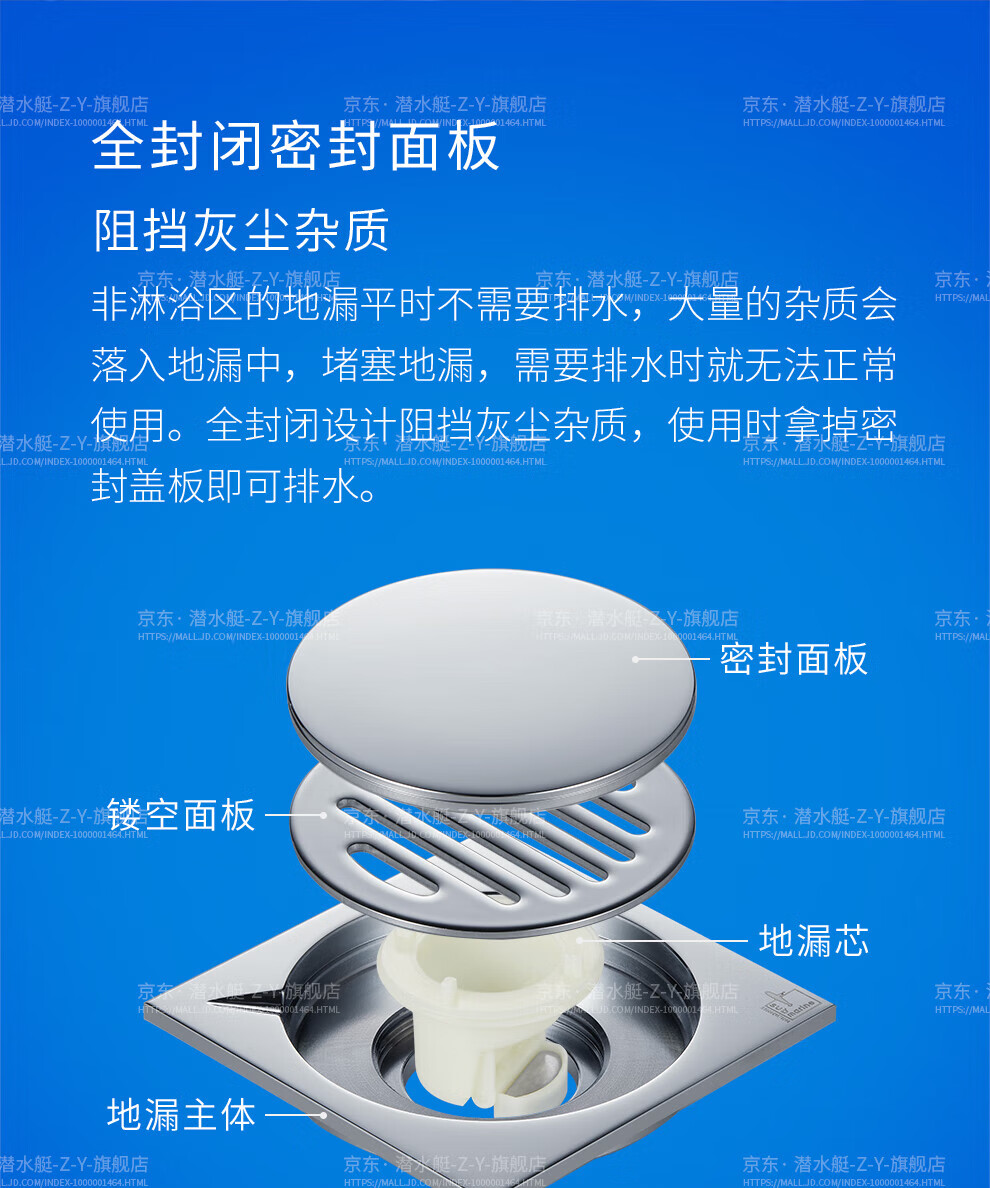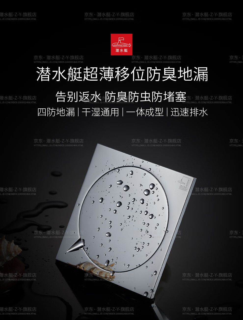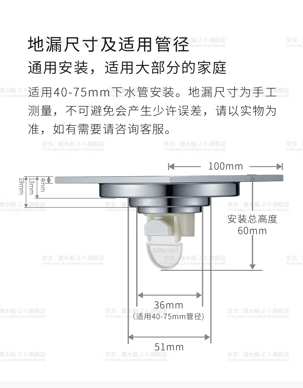 Submarine TF40-10F brass chrome-plated mirror ultra-thin anti-odor floor drain invisible shift floor drain 40 diameter