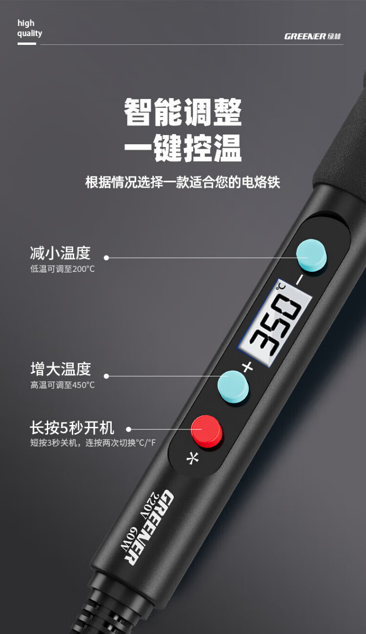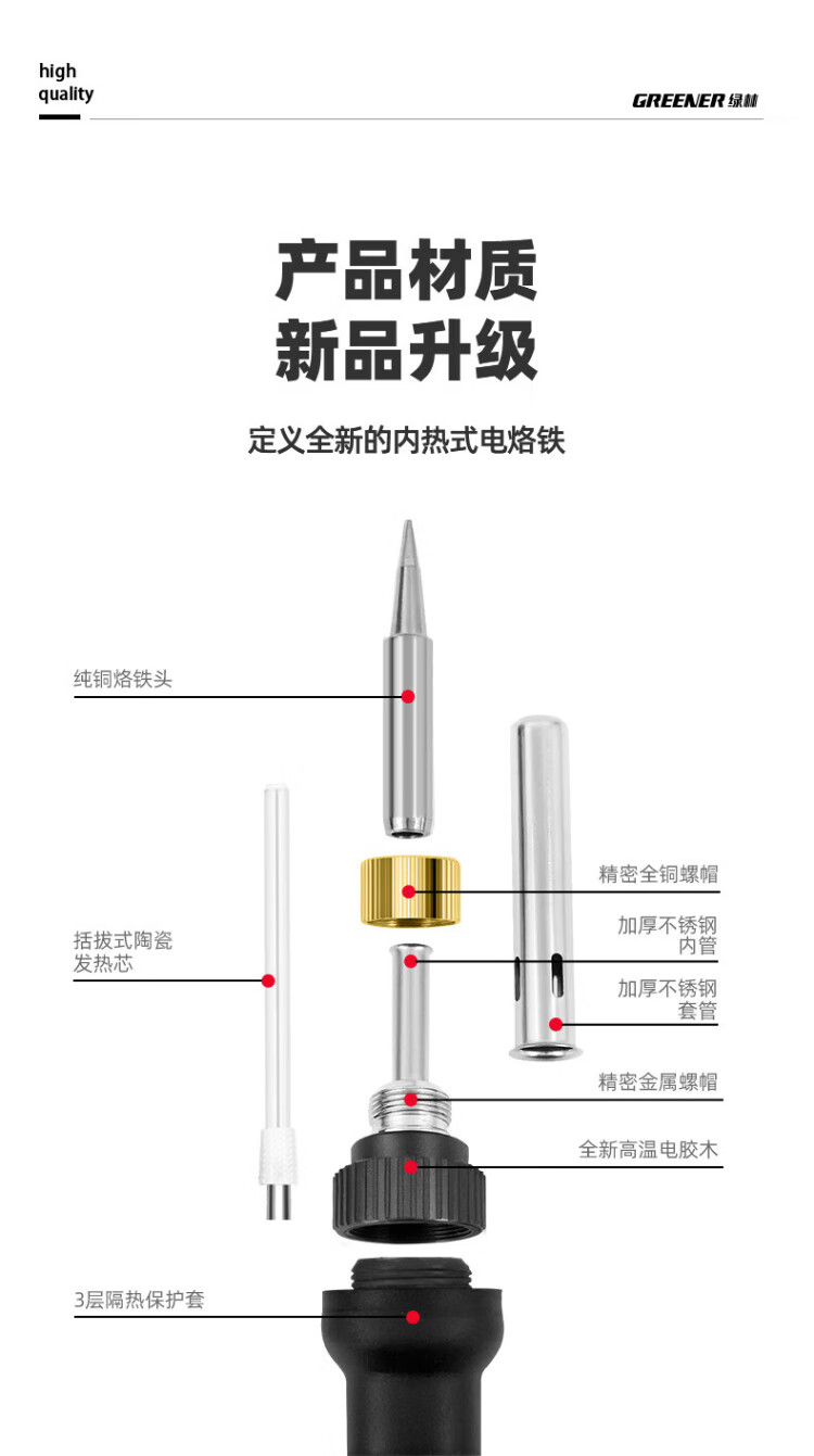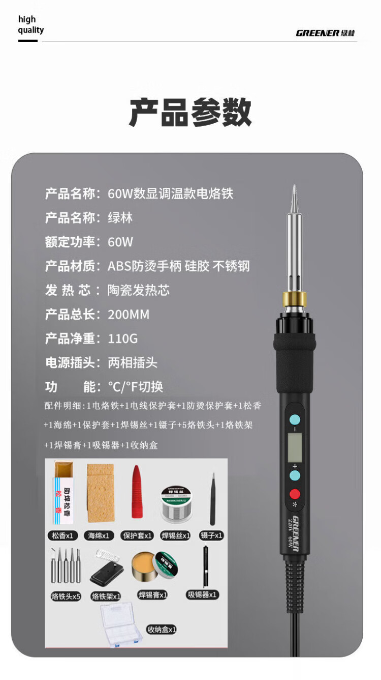 Green Forest Electric Soldering Iron Household 60W Internal Heating Intelligent Temperature Control Chromium Iron Luo Iron Tin Welding Artifact Electric Welding Pen Set 17 Pieces