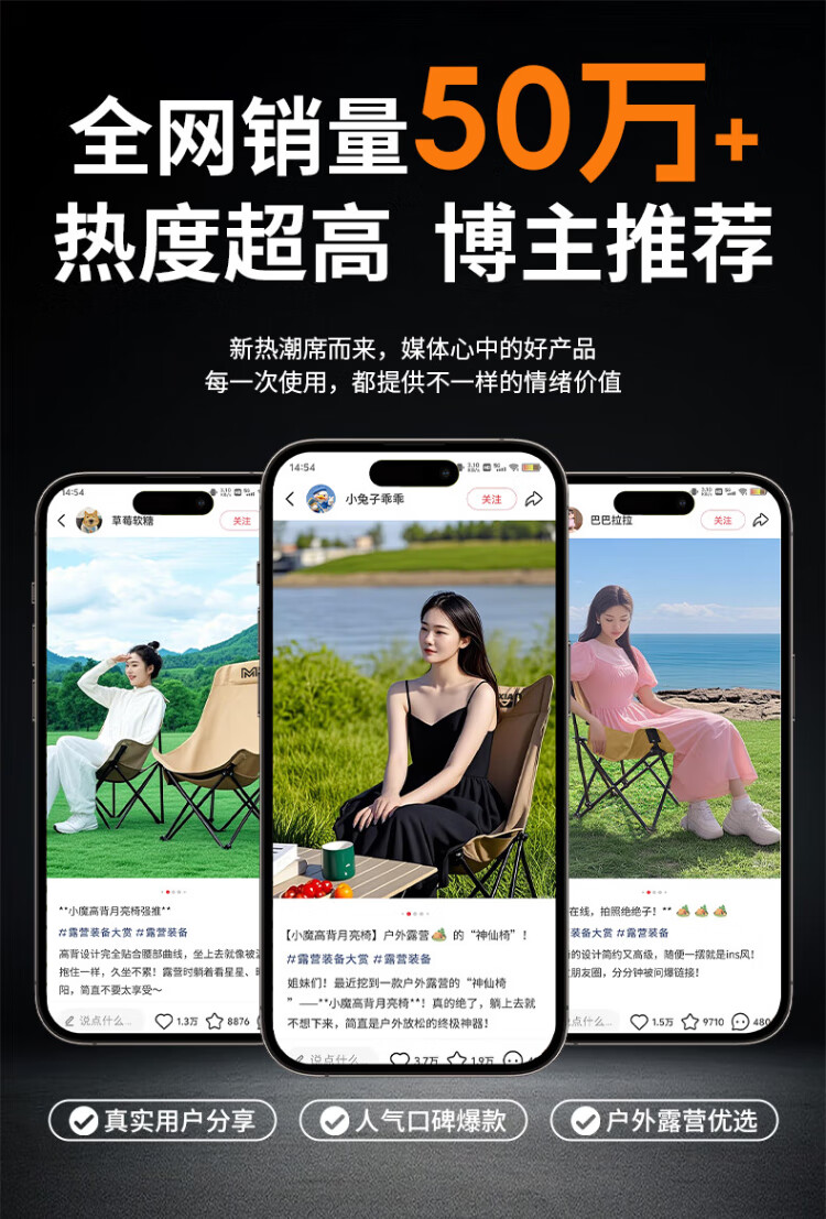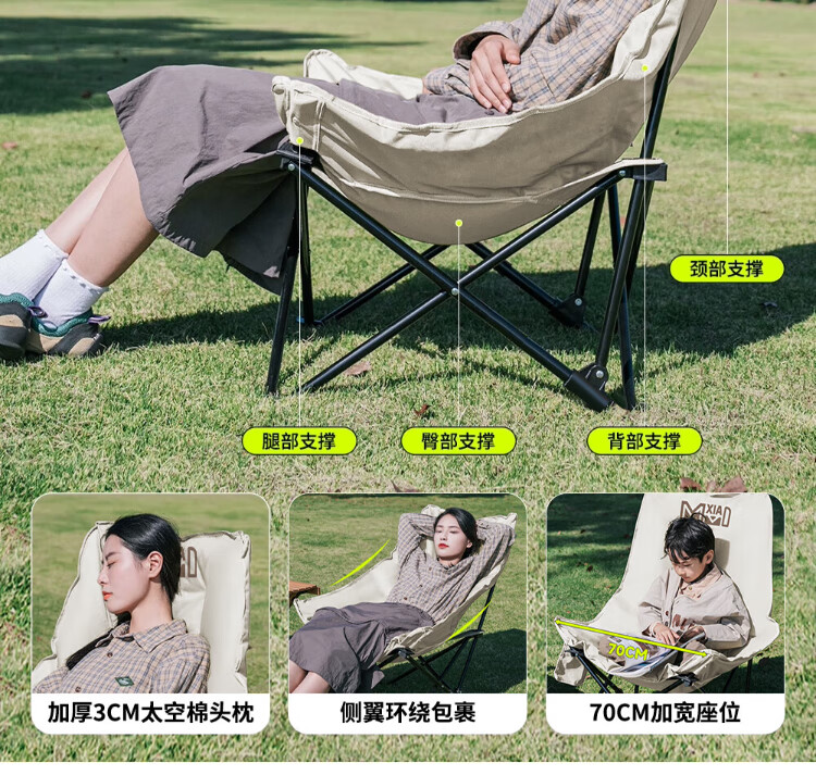 Xiaomo Buying and Selling Recommendation Outdoor Folding Chair Backrest Chair Heightened Moon Chair Camping Folding Stool Portable Recliner
