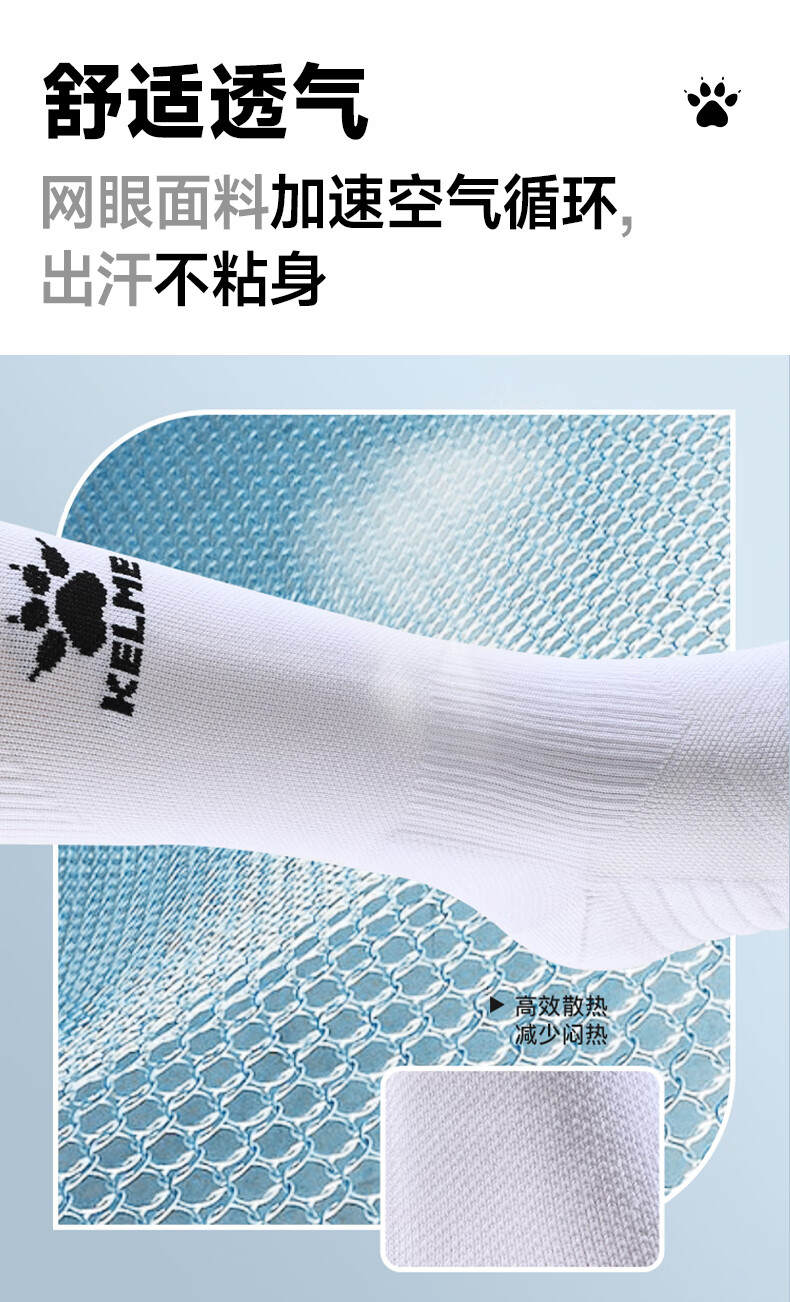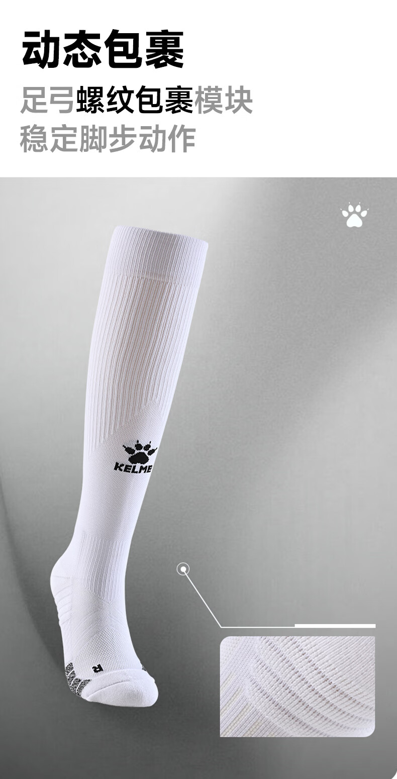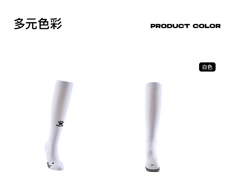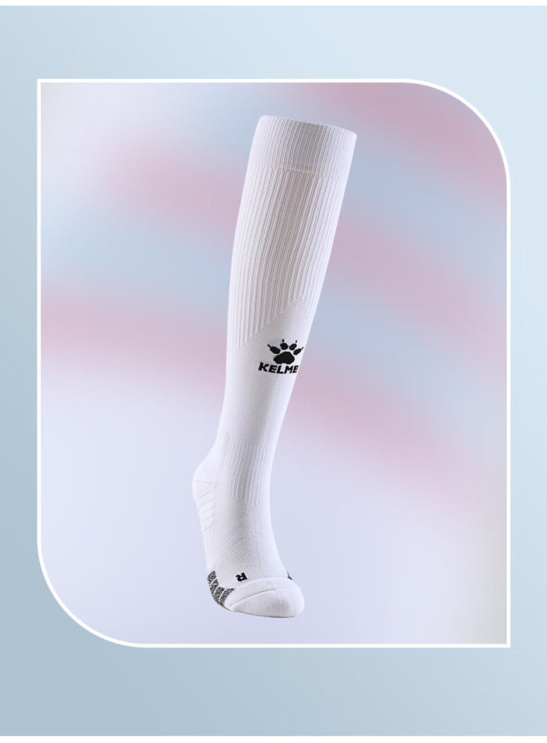 KELME long-tube football socks non-slip gauze thick-soled high-top professional football game training elite sports socks white L
