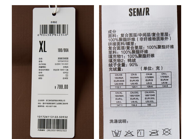 Semir down jacket men's seamless taped hooded jacket water-repellent outdoor lightweight winter casual 101724113122