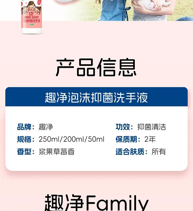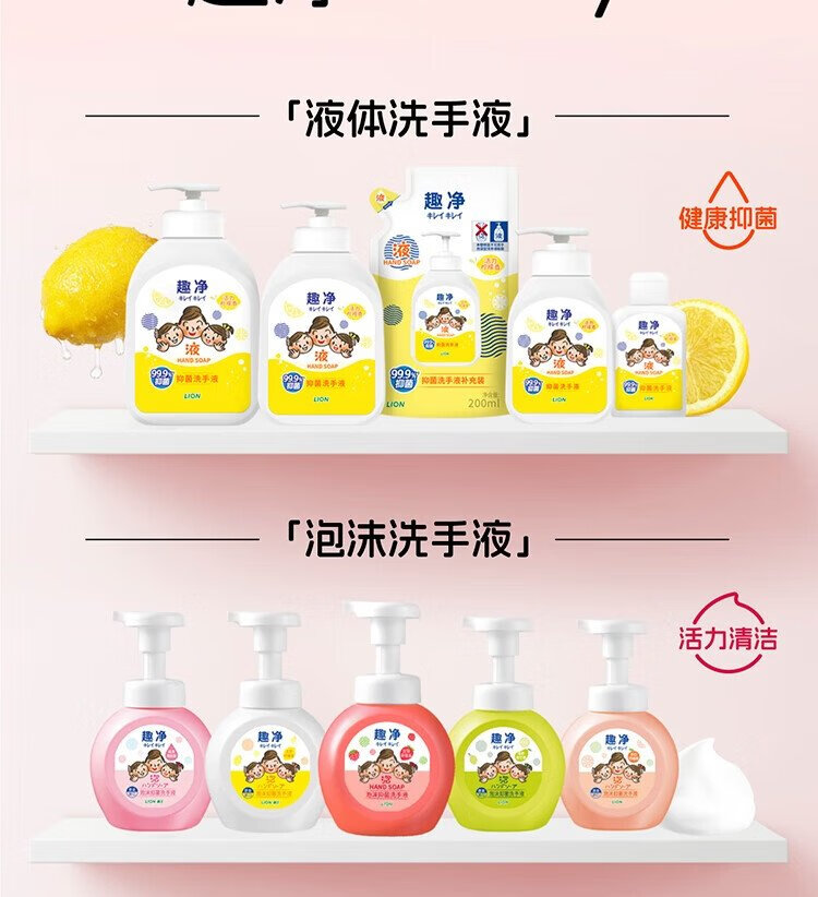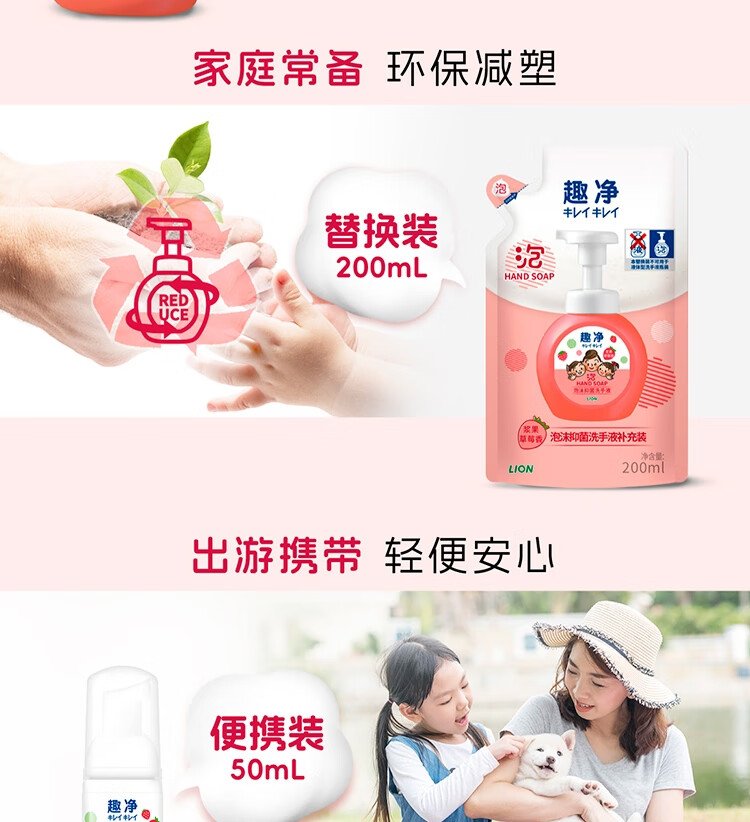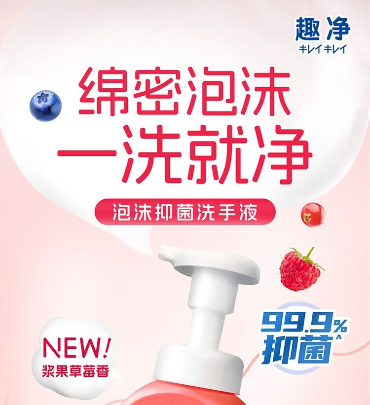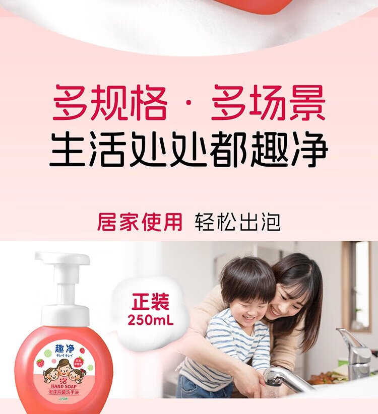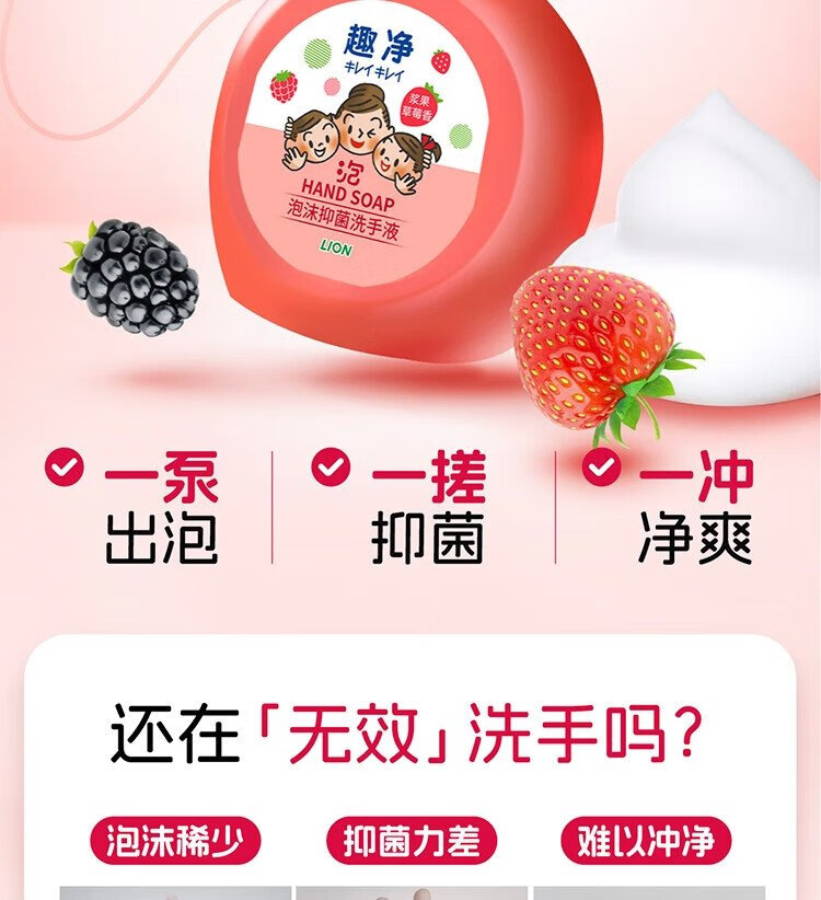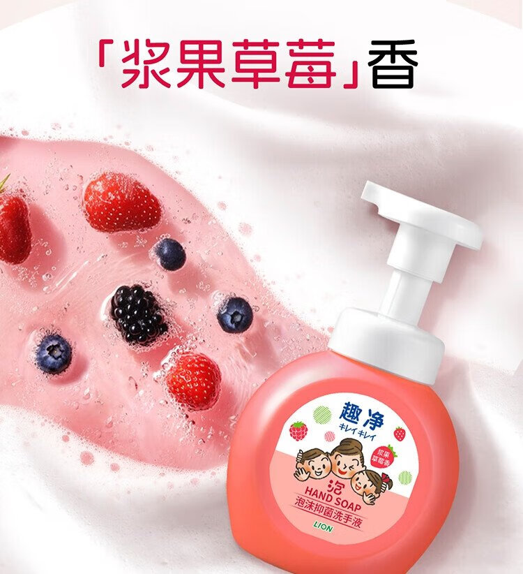 Lion Qujing Foam Antibacterial Foam Hand Sanitizer Berry Strawberry Fragrance 250ml+200ml*3 Thick Foam Mild
