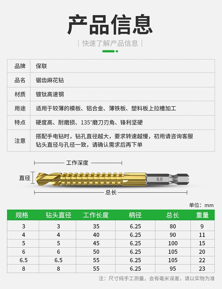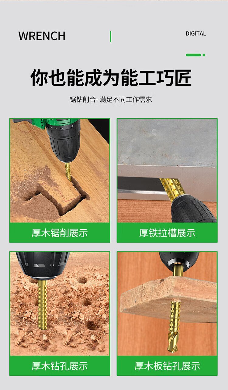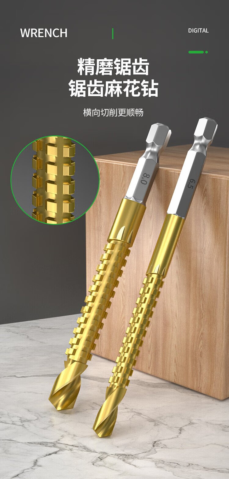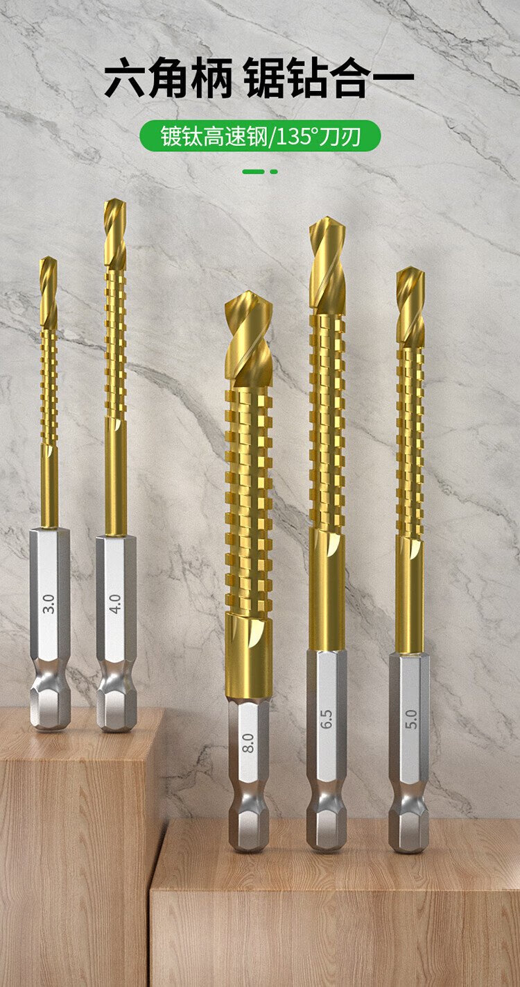 Baolian hexagonal handle sawtooth drill pull flower drill bit woodworking special twist opening drill alloy cutting electric drill drill flower