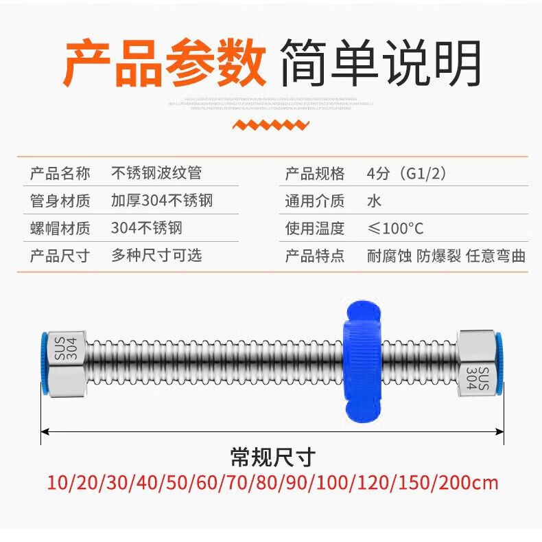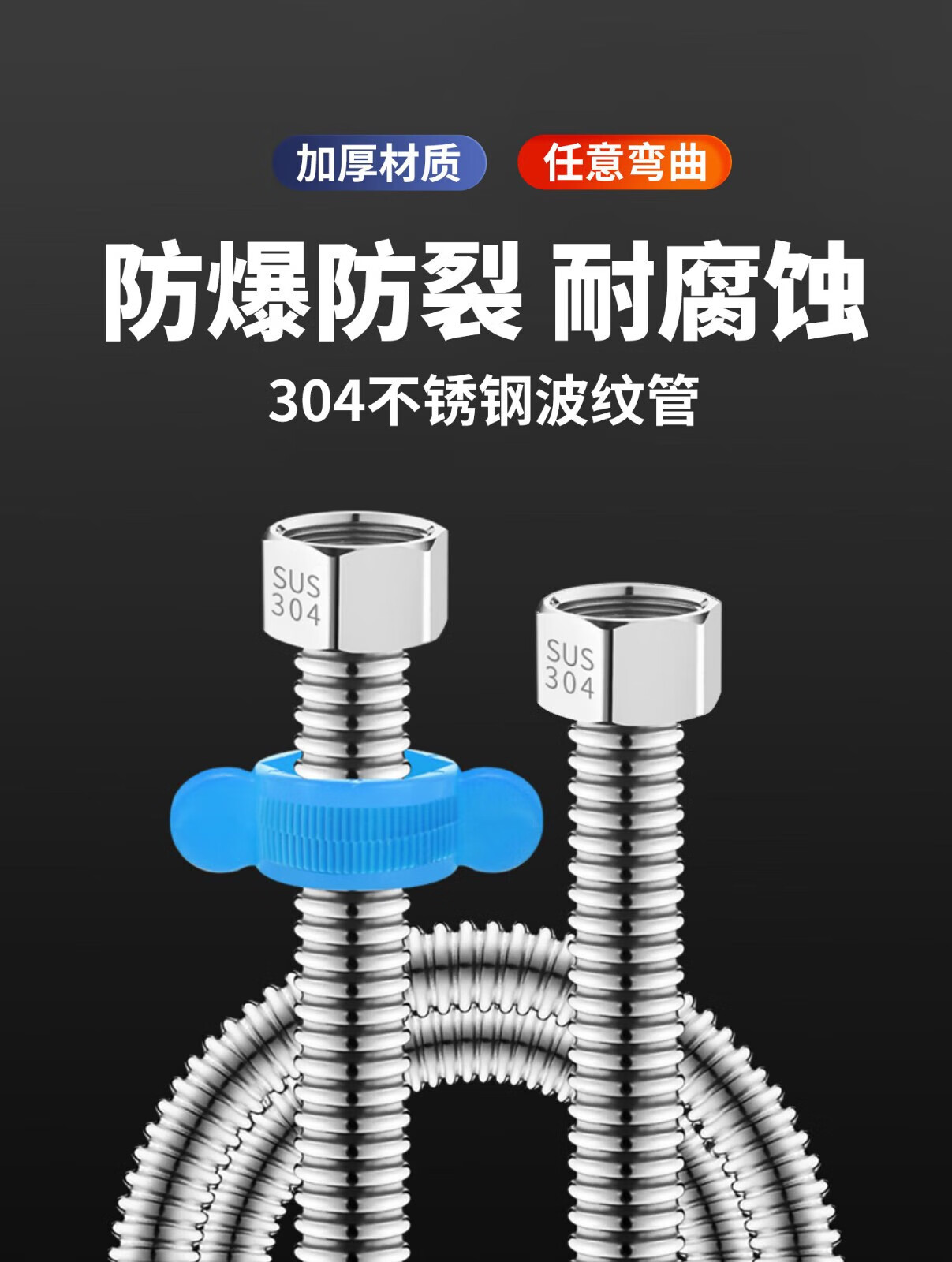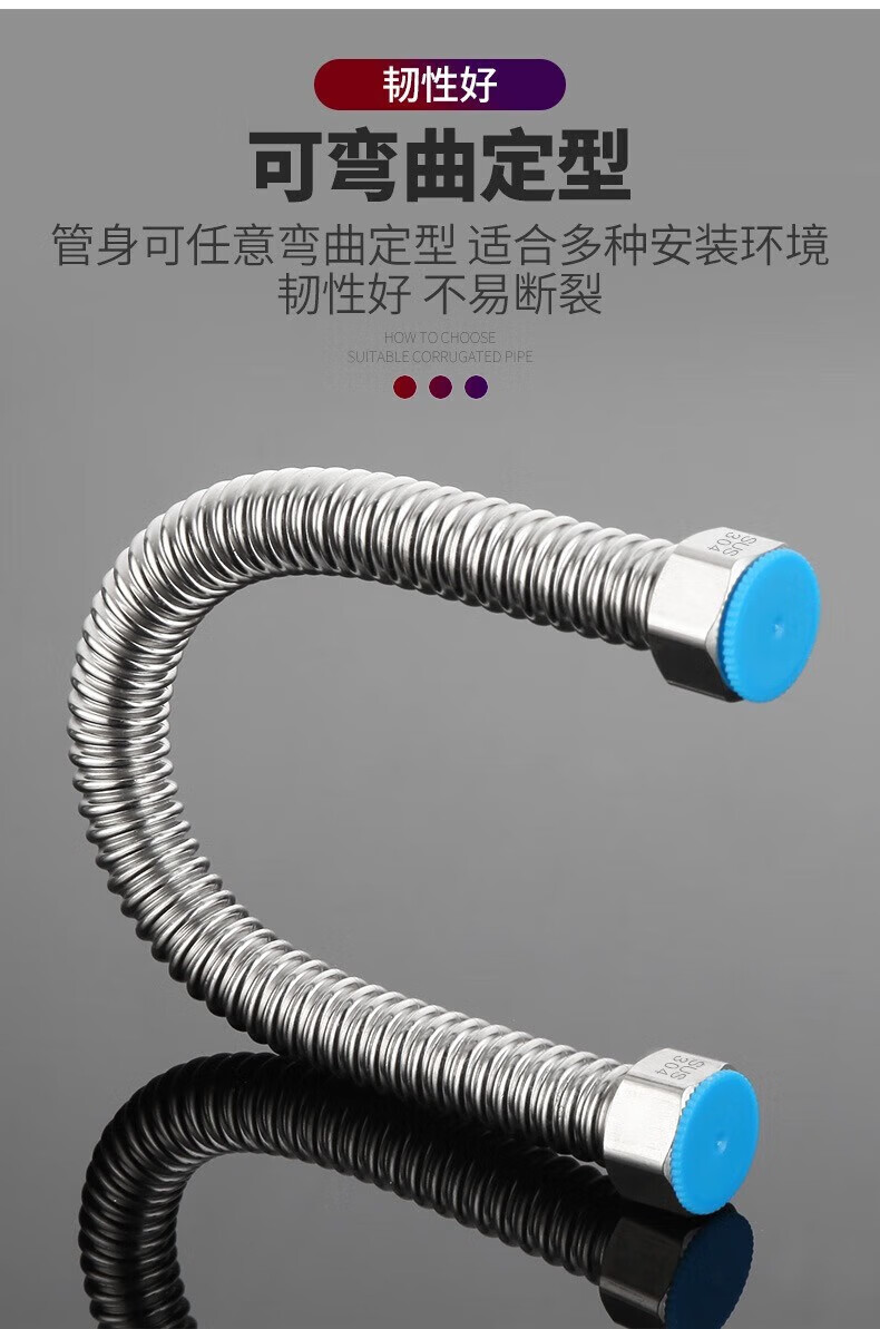 A beautiful 304 stainless steel bellows water heater hot and cold universal water inlet pipe 4 points high temperature resistant explosion-proof water outlet hose 30cm 304 stainless steel explosion-proof bellows