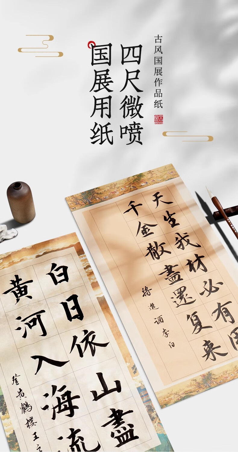 Liupintang Giclee Batik National Exhibition Submission Work Paper Square Soft Pen Brush Calligraphy Half-cooked Rice Paper Ancient Poetry Calligraphy Special Paper Old Antique Japanese Class Paper 14-Grid Splicing