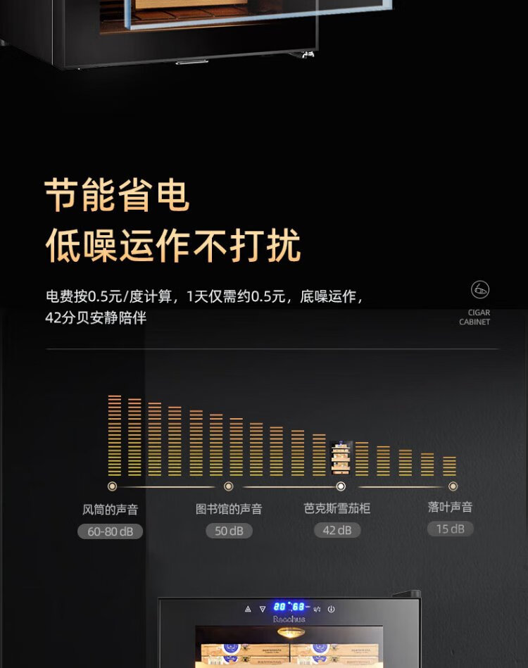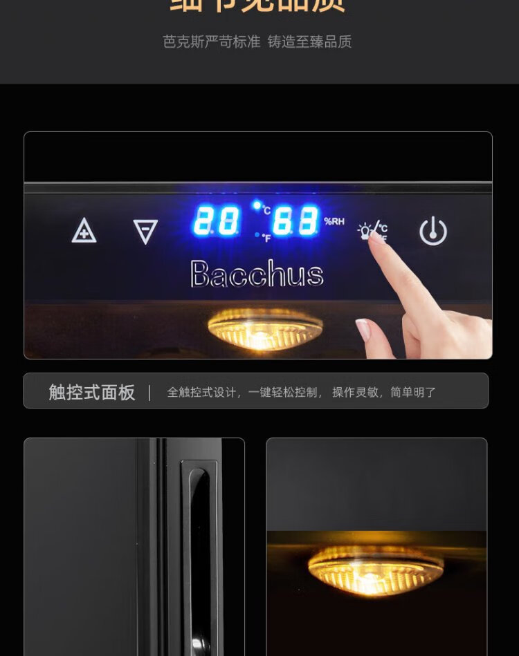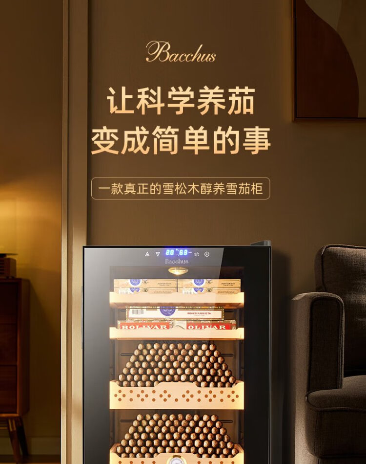 Bacchus humidor constant temperature and humidity control humidifier box mini small household solid wood cedar wood embedded pure nourishing naked red wine BWH-70D1 (2 naked + 2 boxes) 70L