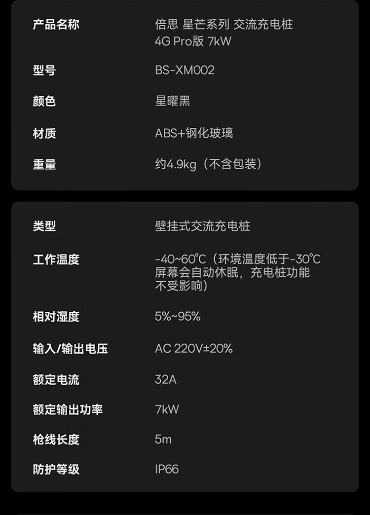 Baseus 4G Xingmang 7KW new energy vehicle charging pile (delivery and installation in one) suitable for Tesla, Krypton, Volkswagen, BYD, ideal AC charging gun