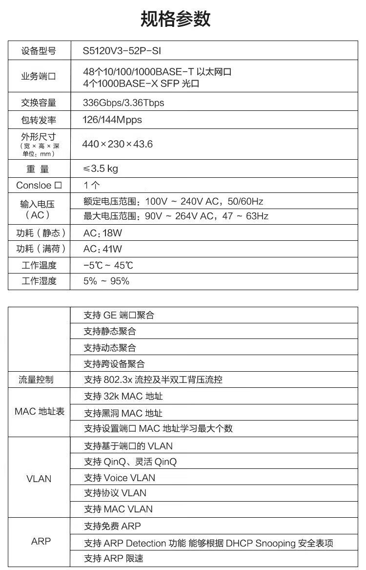 New H3C S5120V3-52P-SI 48 Gigabit electrical + 4 Gigabit fiber port three-layer network managed enterprise-level switch