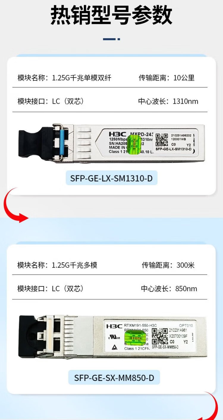 New H3C (H3C) SFP-GE-LX-SM1310-D Gigabit single-mode dual-fiber dual-core optical module-SFP-GE-single-mode module-(1310nm, 10km, LC)
