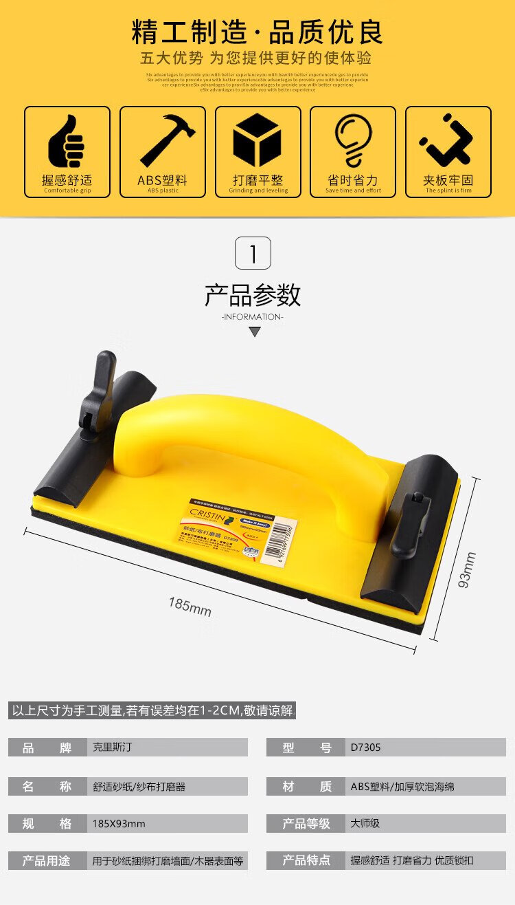 Christine sandpaper holder handheld sandpaper grinder sandpaper clip emery cloth holder 185mm*93mm