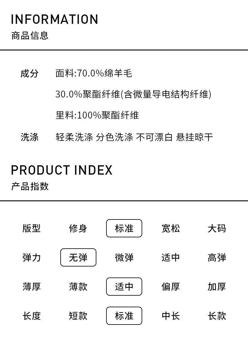 China (cm) 165 / 88-90 170 / 96-98 175 / 108-110 180 / 118-122 185 / 126-130