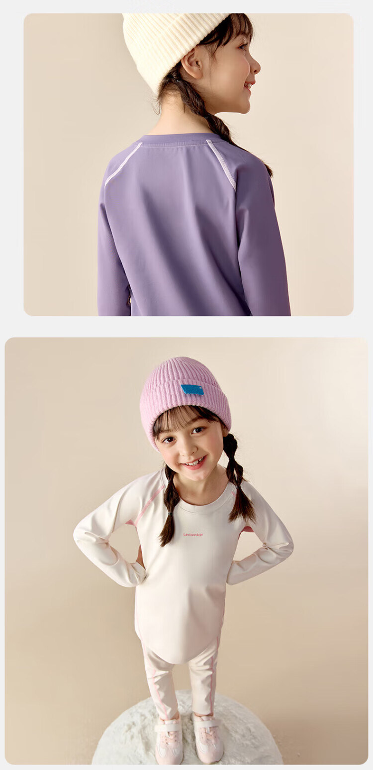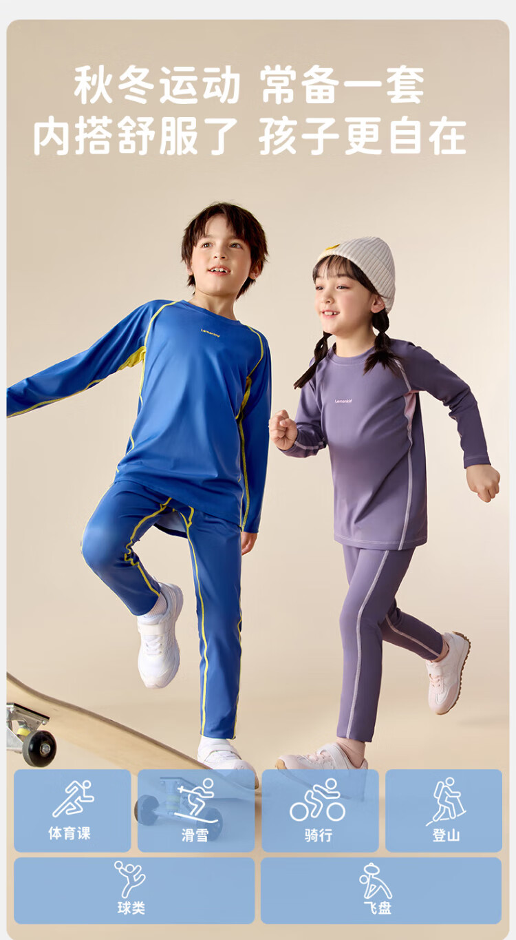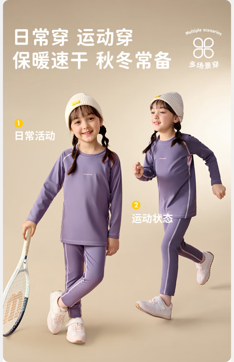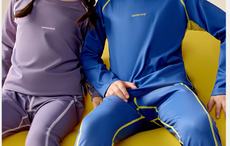Lemonkid children's sports suit ski outdoor boys and girls thermal underwear training clothes riding whip purple 140