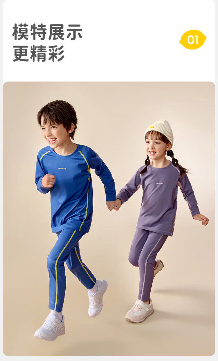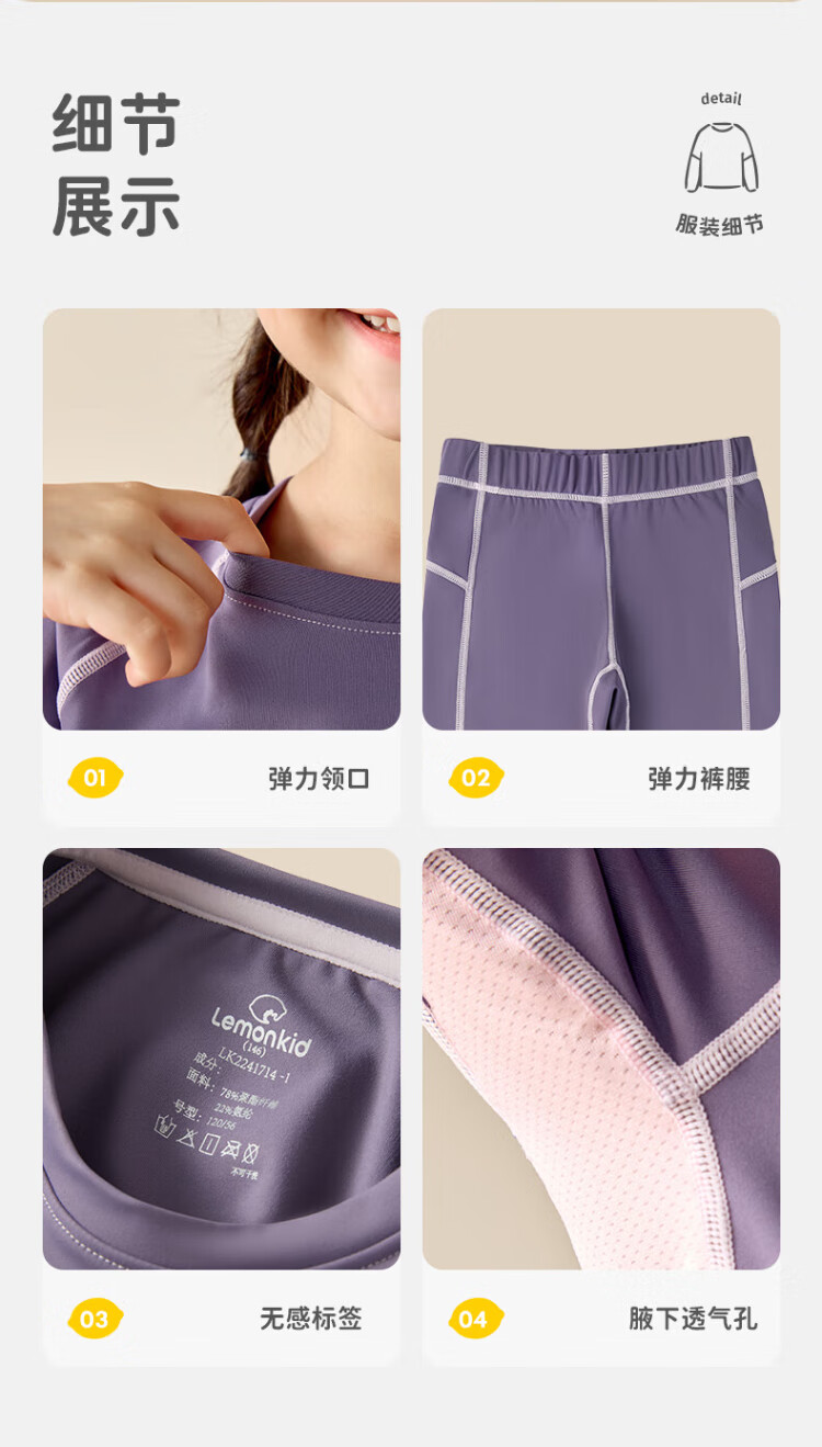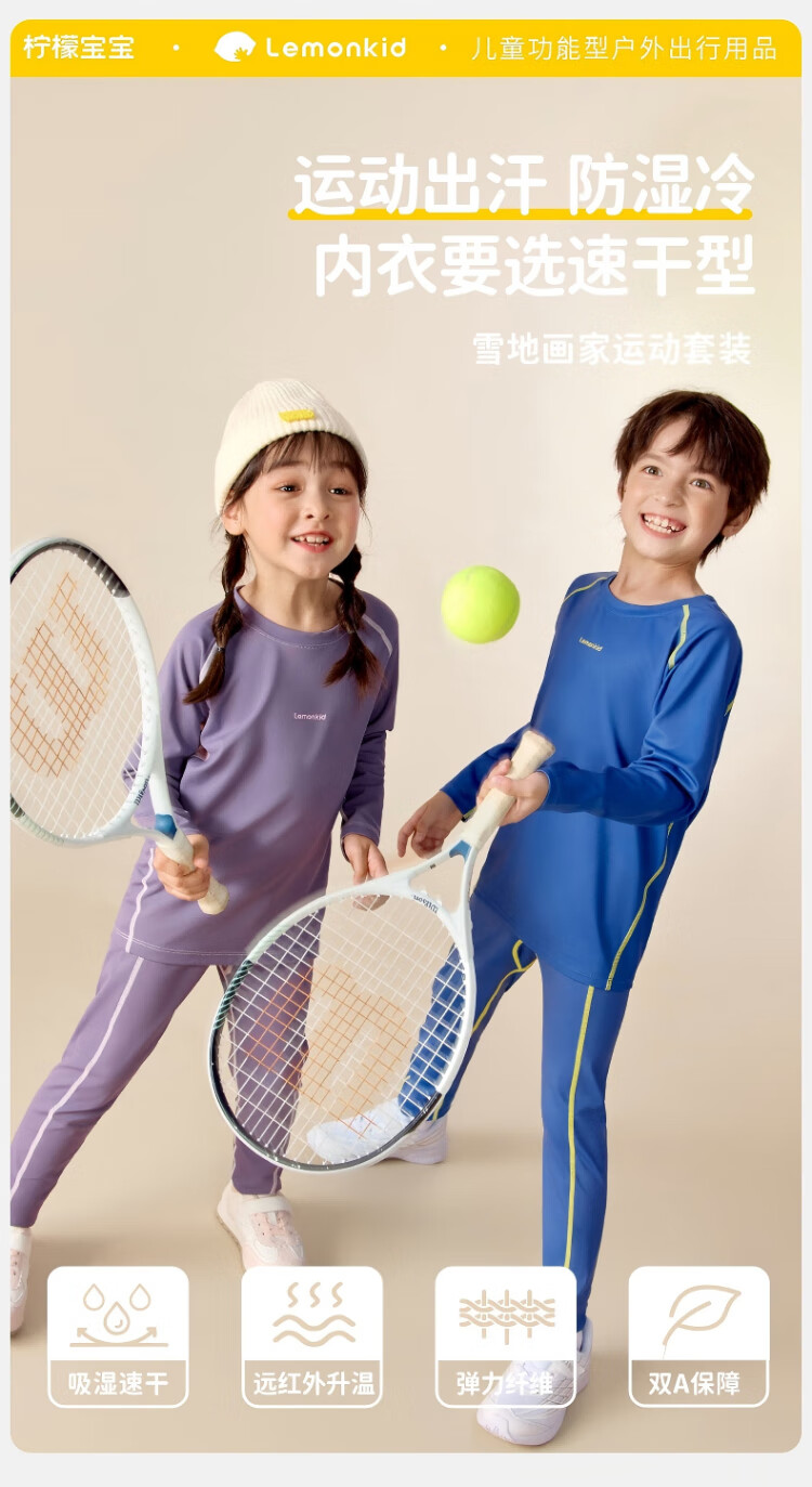 Lemonkid children's sports suit ski outdoor boys and girls thermal underwear training clothes riding whip purple 140