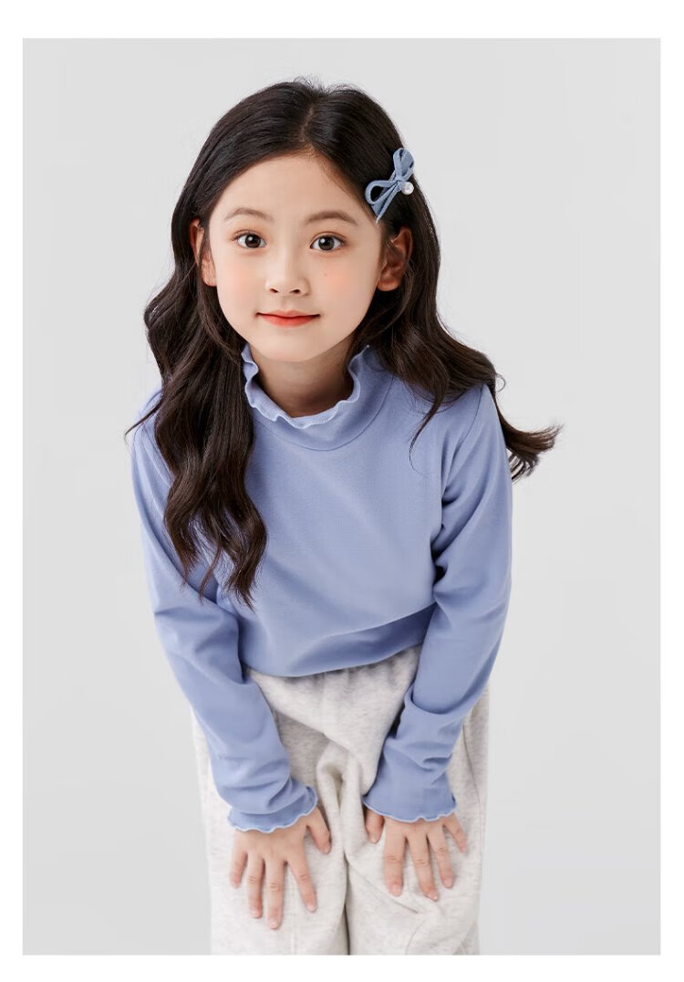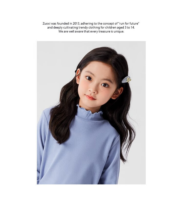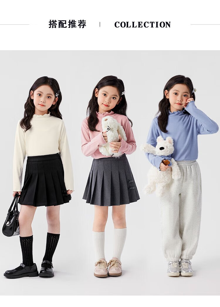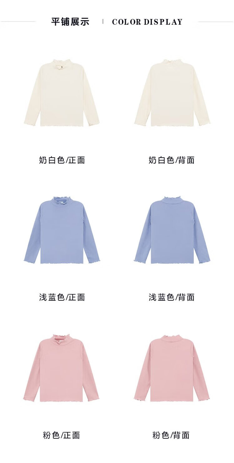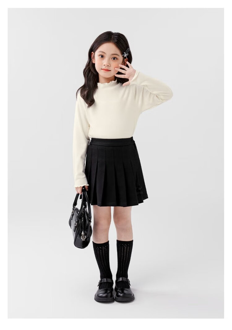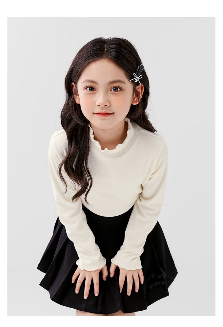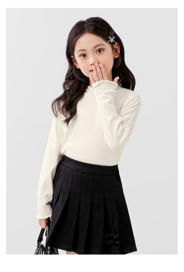 Zuoxi Girls Bottoming Shirt Half Turtle Collar Long Sleeve T-shirt Children's Top 2025 New Girl Thermal Clothing Milk White 140