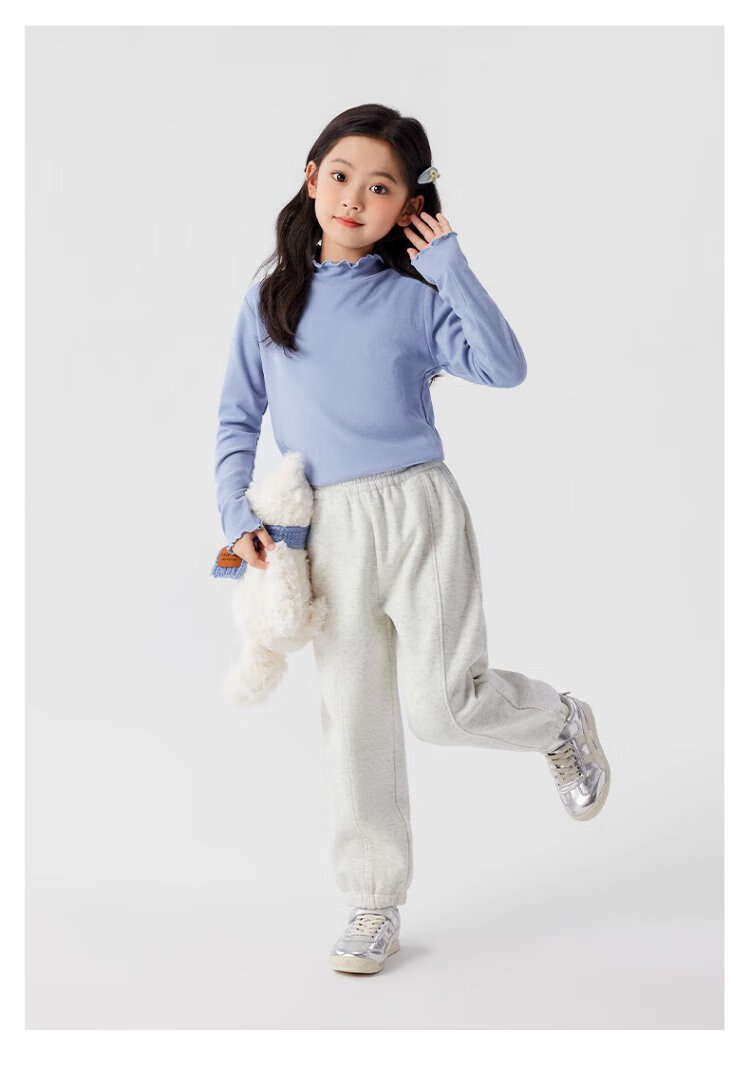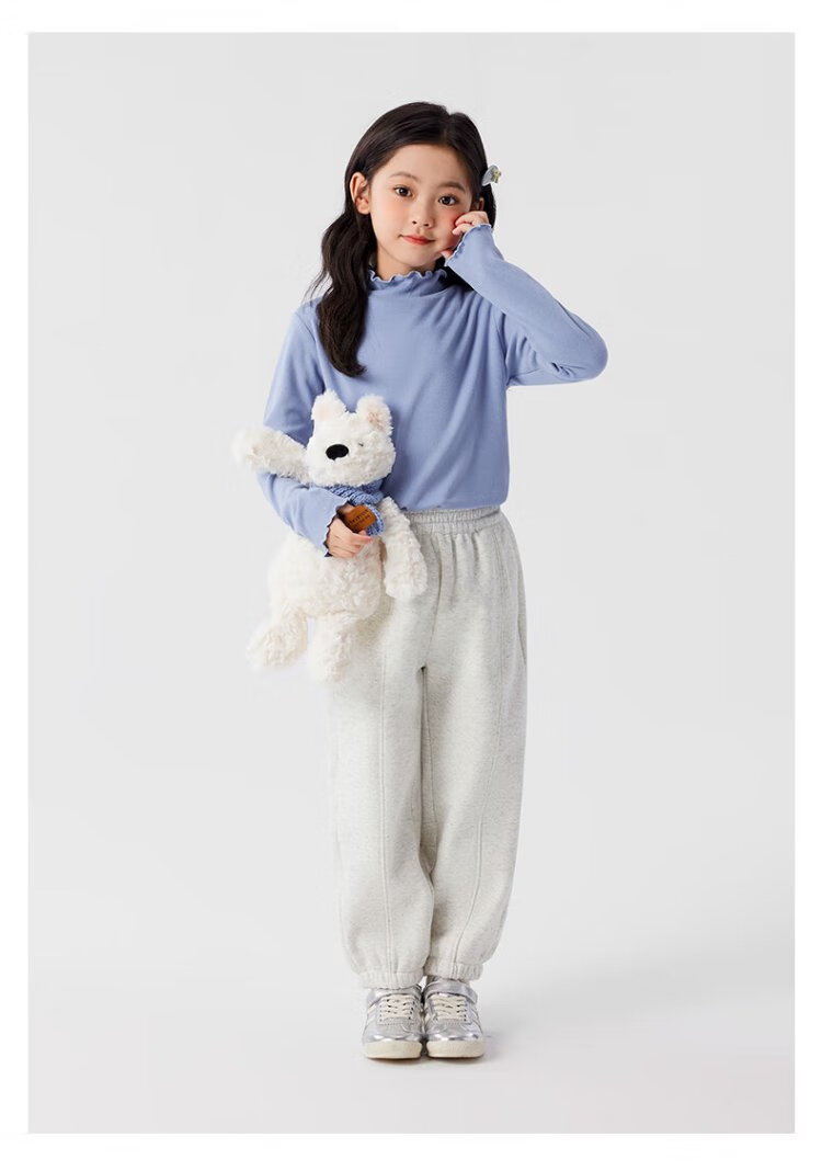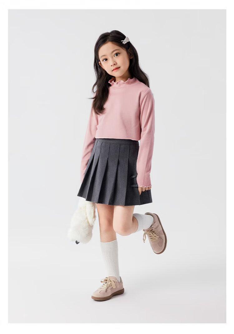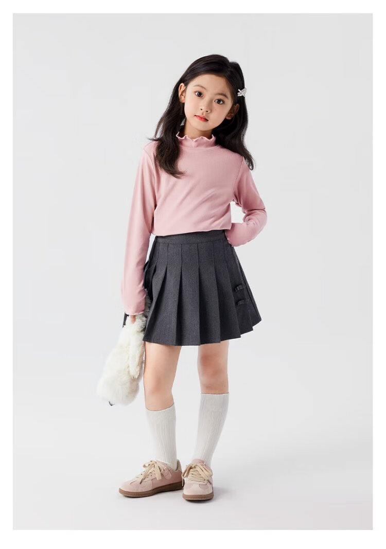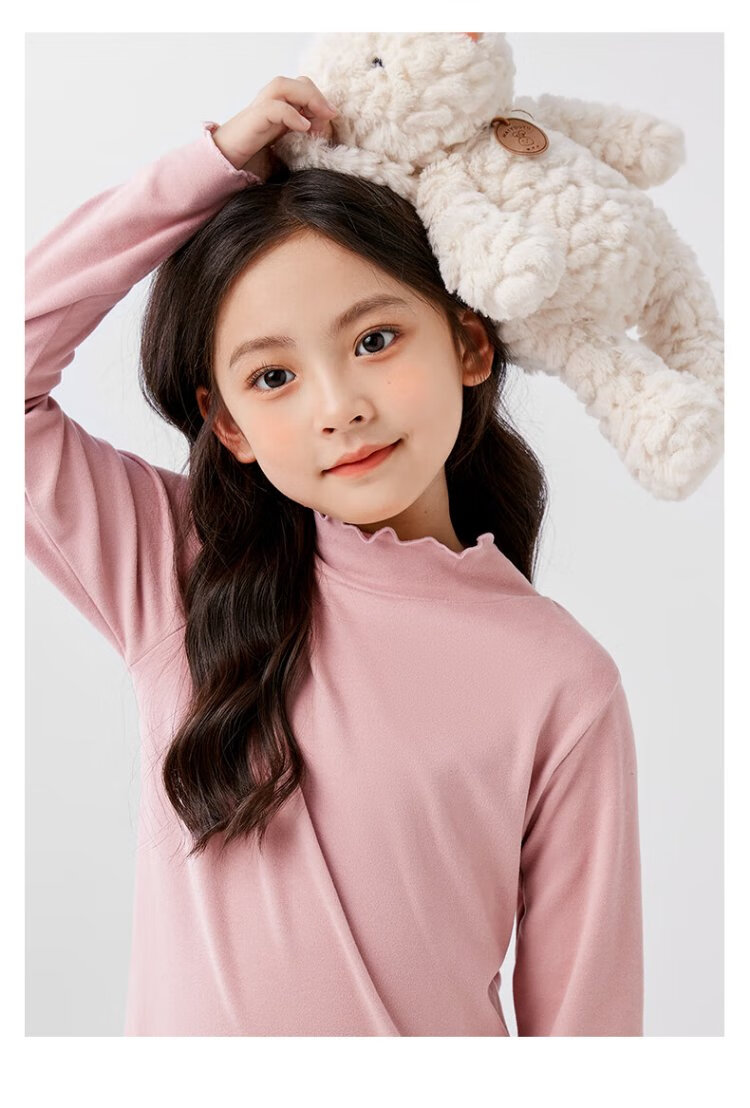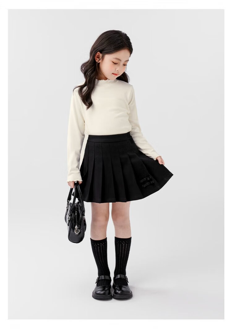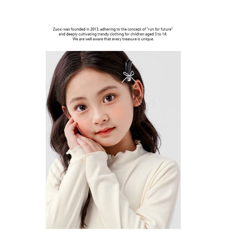 Zuoxi Girls Bottoming Shirt Half Turtle Collar Long Sleeve T-shirt Children's Top 2025 New Girl Thermal Clothing Milk White 140