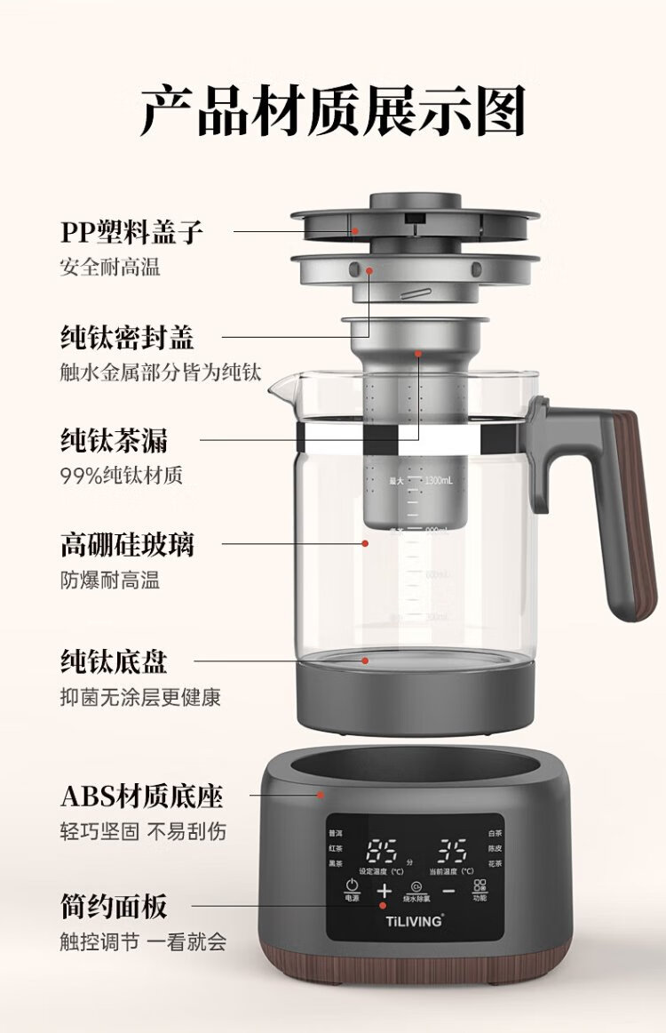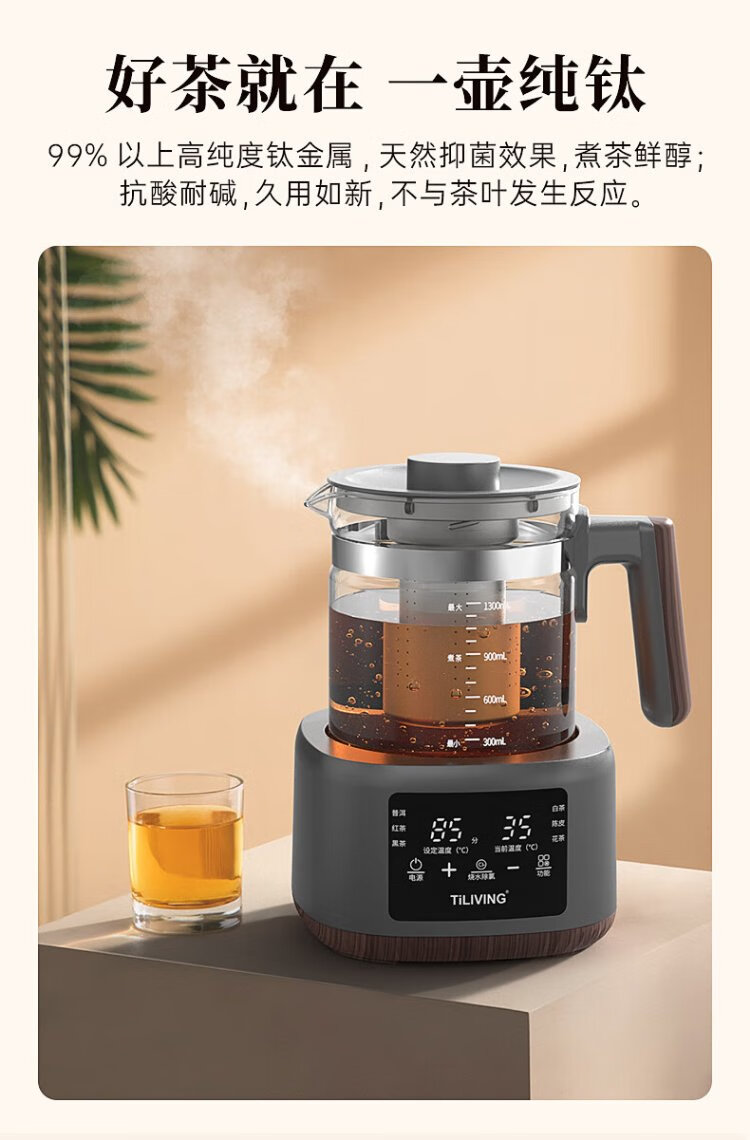TILIVING (Titanium Liwei) pure titanium tea health pot office tea pot household constant temperature kettle electric kettle steaming teapot steaming tea pot teapot