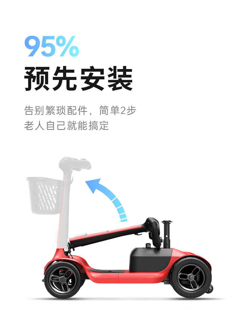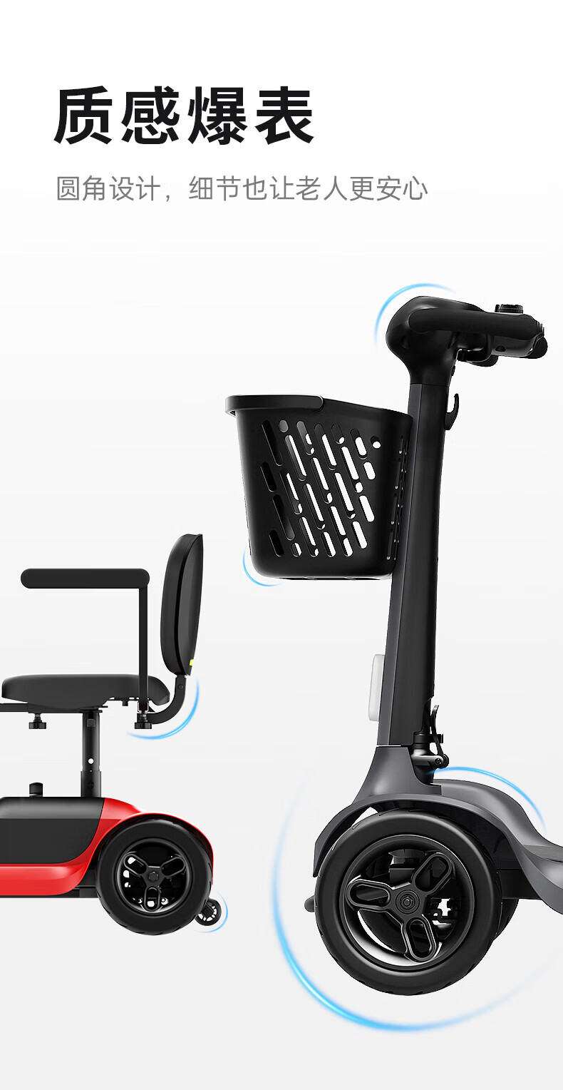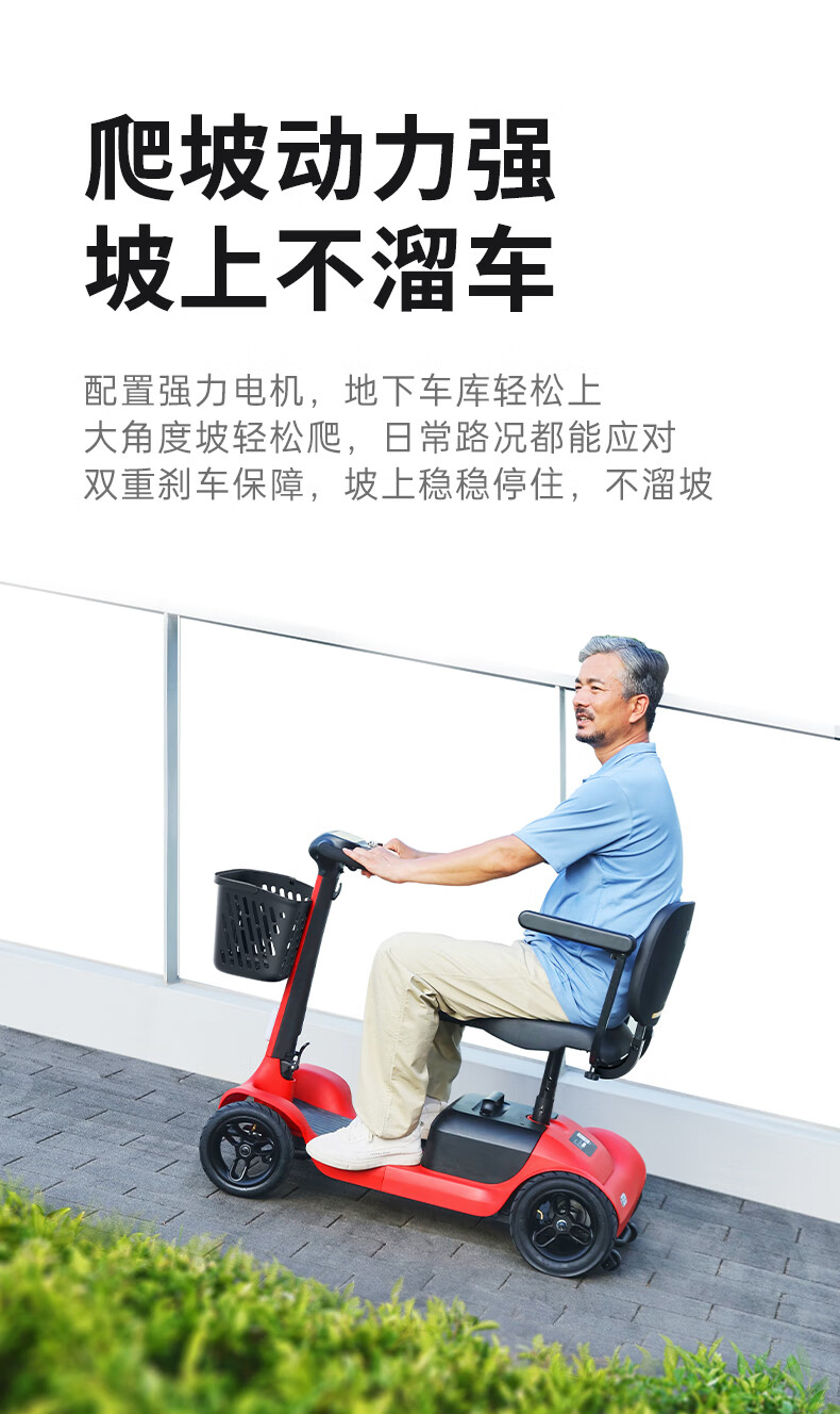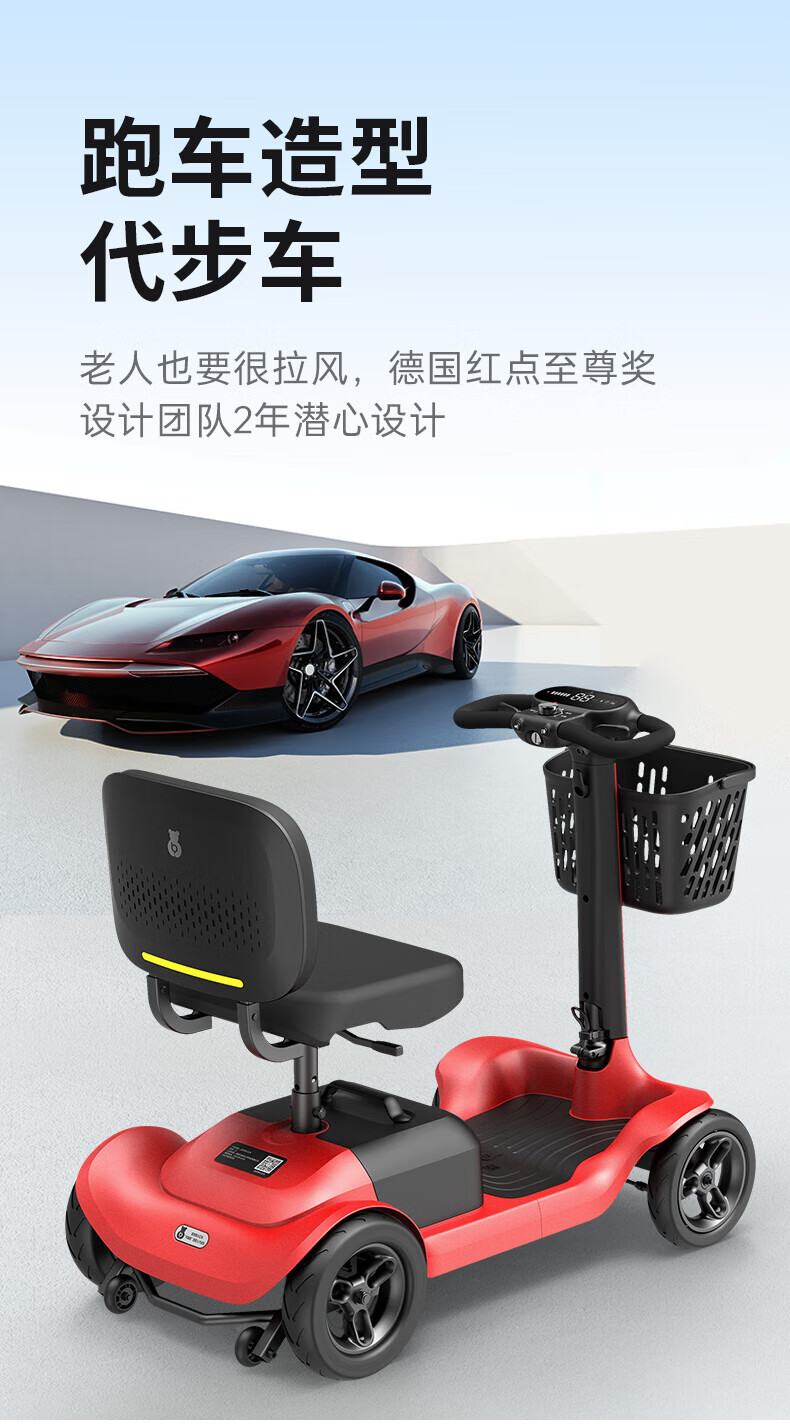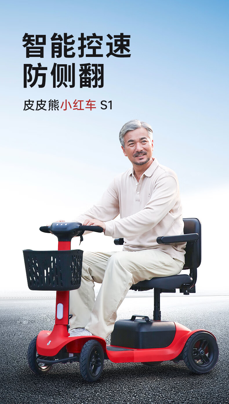 Pippi Bear Elderly Mobility Scooter S1 Elderly Gift - Intelligent Speed Control to Prevent Slips Foldable Elderly Mobility Scooter Red