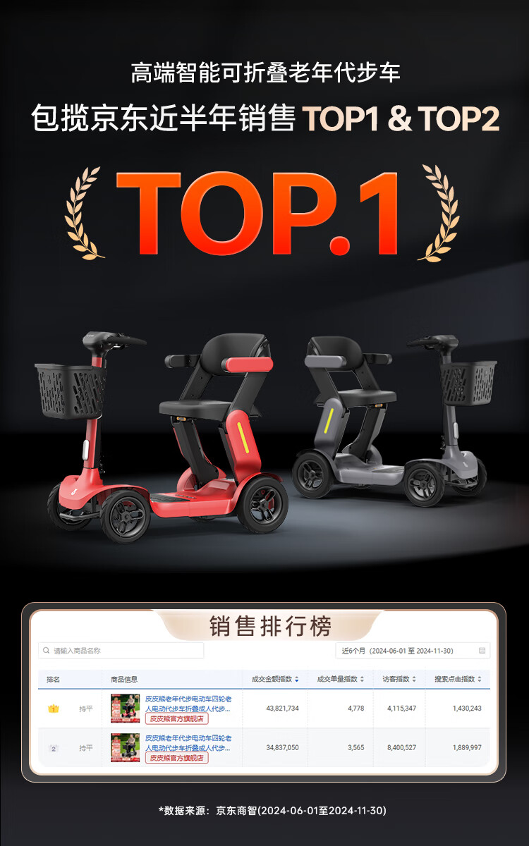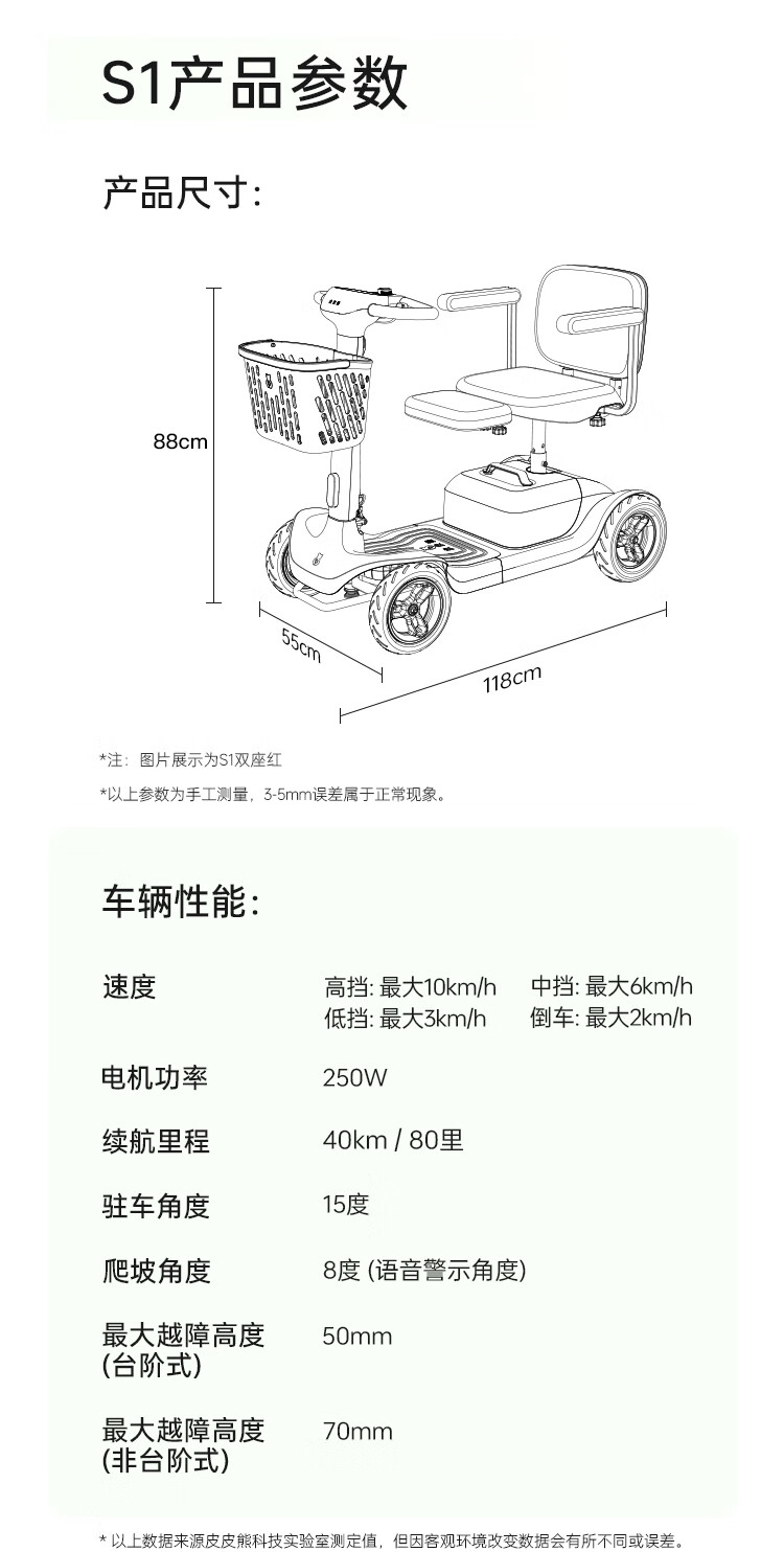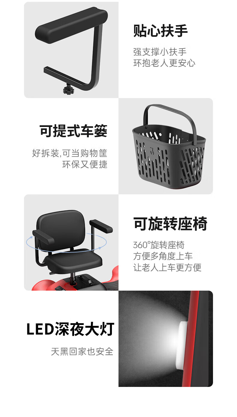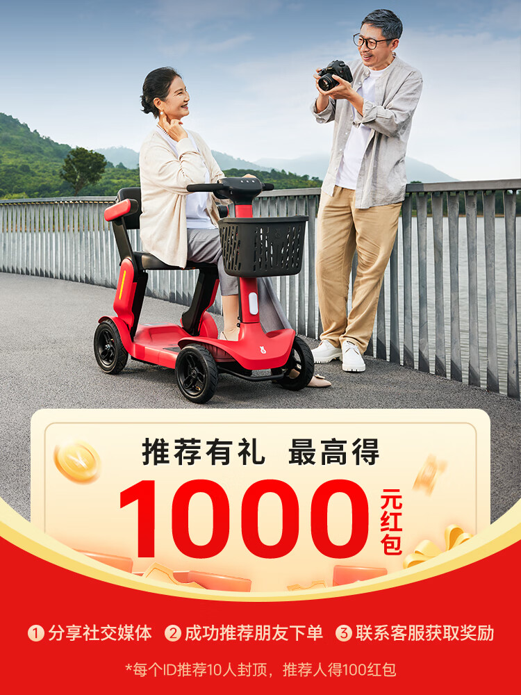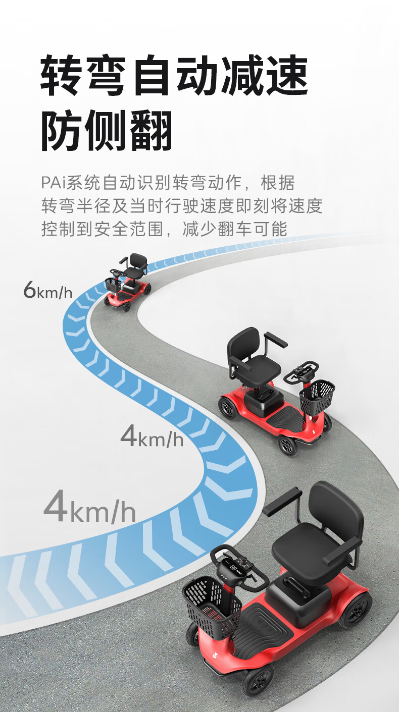 Pippi Bear Elderly Mobility Scooter S1 Elderly Gift - Intelligent Speed Control to Prevent Slips Foldable Elderly Mobility Scooter Red