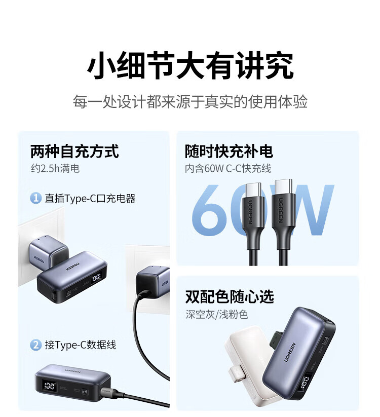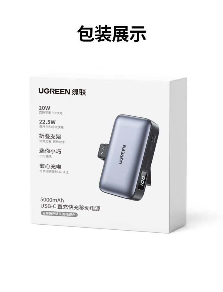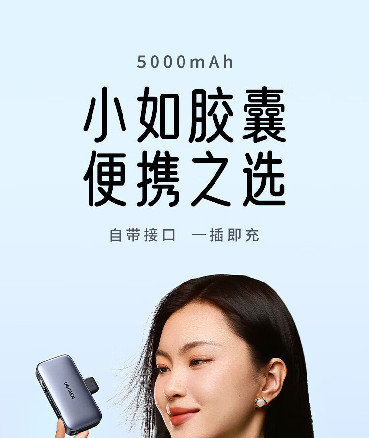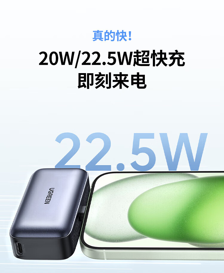 Green Alliance 3C certified aircraft capsule power bank 5000 mAh 22.5W fast charging portable mini power bank plug-in and charge suitable for Apple 17/16 Huawei Xiaomi