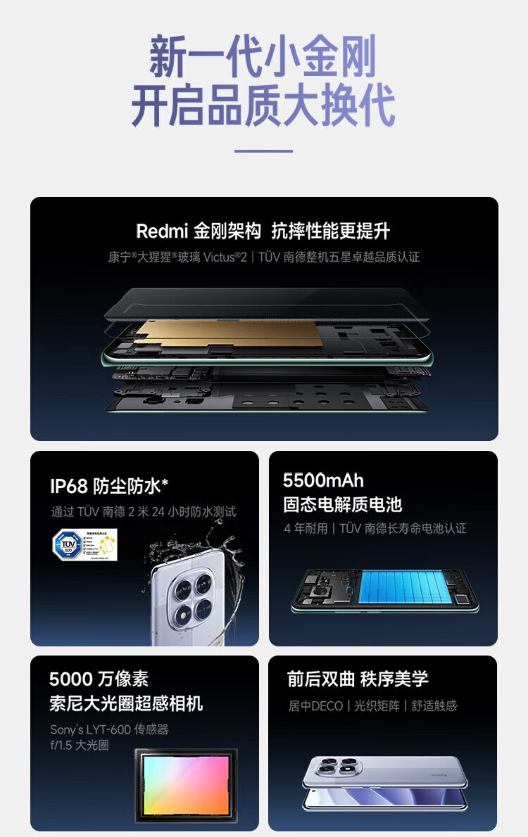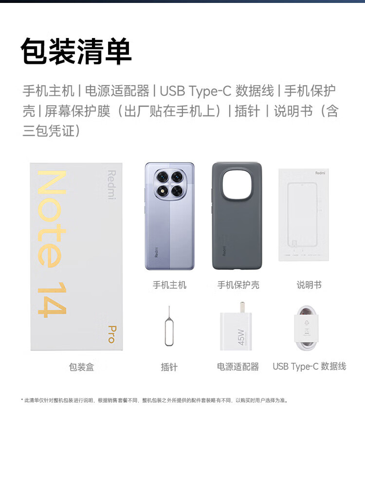 Xiaomi (MI) Redmi note14 Pro 5G mobile phone Dimensity 7300 1.5K high-gloss eye protection screen IP68 waterproof 12GB+256GB midnight black Xiaomi mobile phone Redmi mobile phone