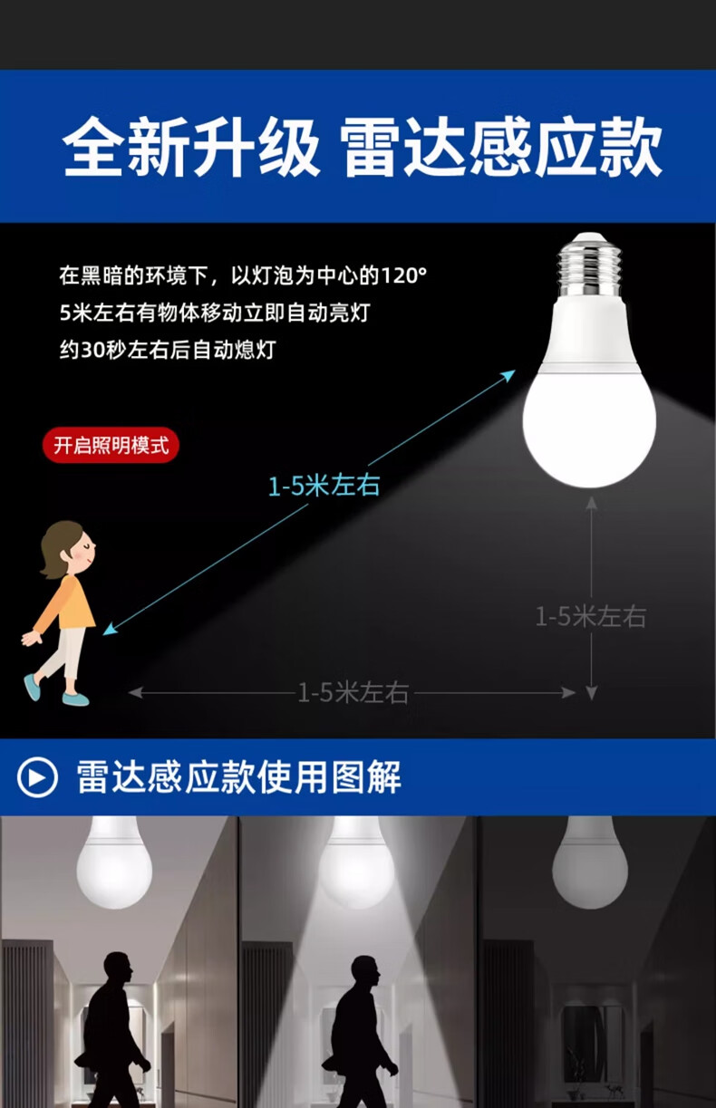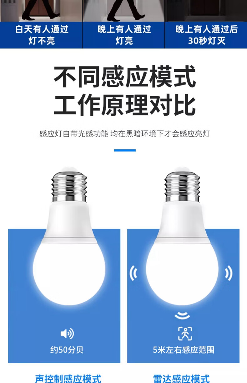 Fanyao LED sound and light control induction bulb, corridor, residential property, staircase, garage, intelligent automatic light bulb 12W-voice control