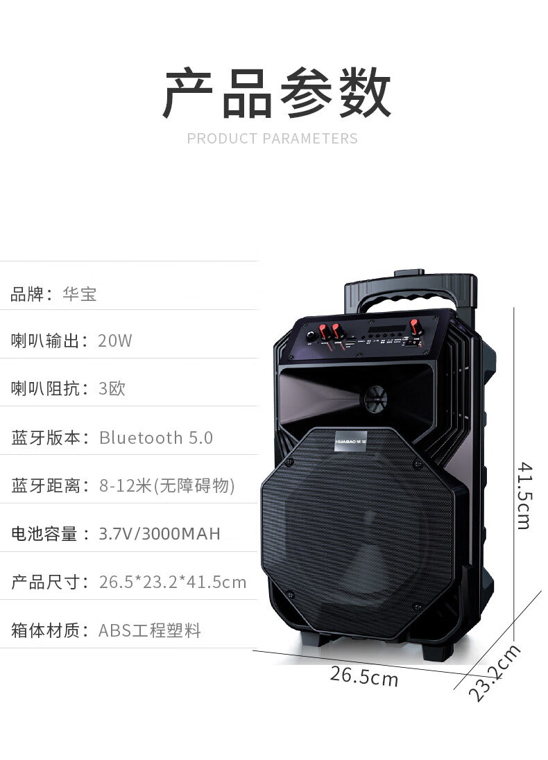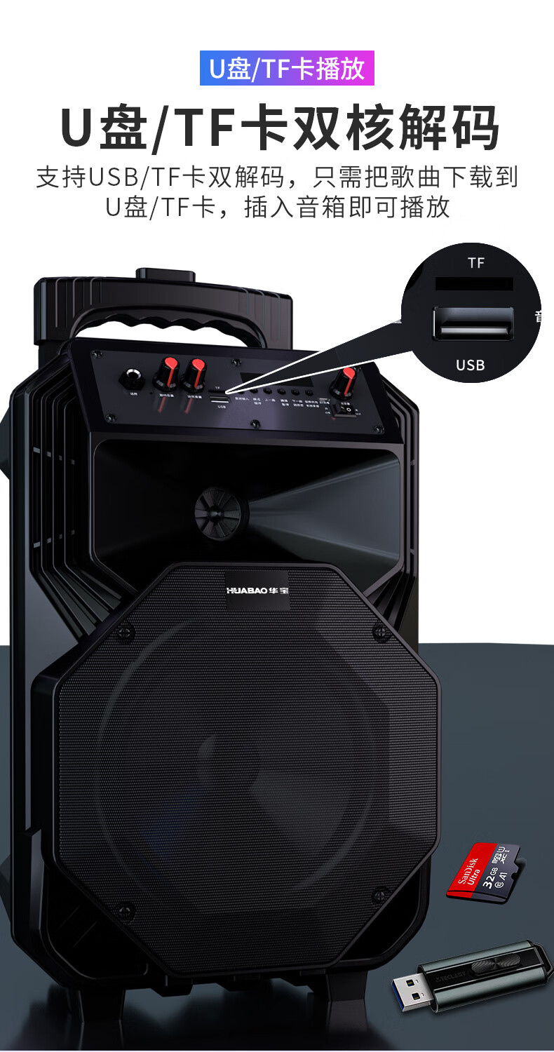Huabao XY-1013 Honor Edition Wireless Bluetooth Speaker Square Dance Outdoor Trolley Large Volume High Power Subwoofer Portable Performance Mobile Karaoke Audio Dual Microphone