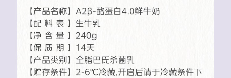 Qixian A2-Casein 4.0 Fresh Milk 240g*4