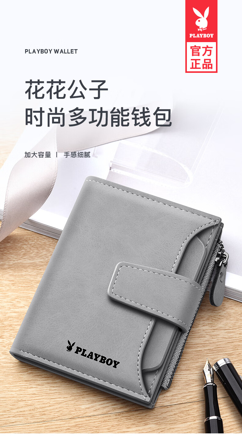 Playboy Wallet Men's Vertical Short Wallet Multifunctional Large Capacity Driver's License Card Holder Birthday Gift for Boyfriend and Husband