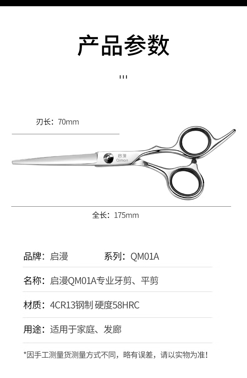Qiman barber scissors, hairdressing scissors, thinning scissors, flat scissors, hair cutting artifact, bangs scissors, professional adult and children hair cutting scissors set QM01A double scissors