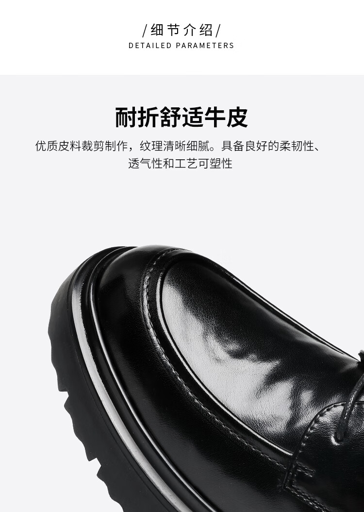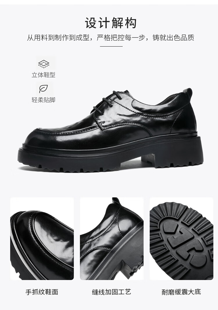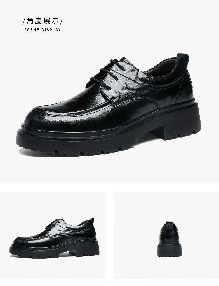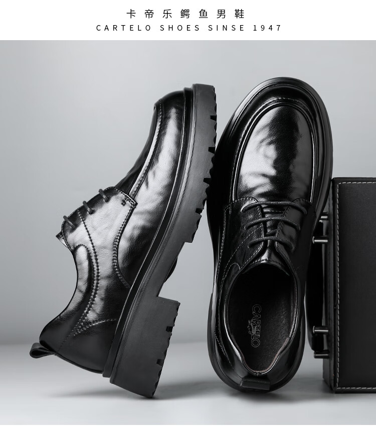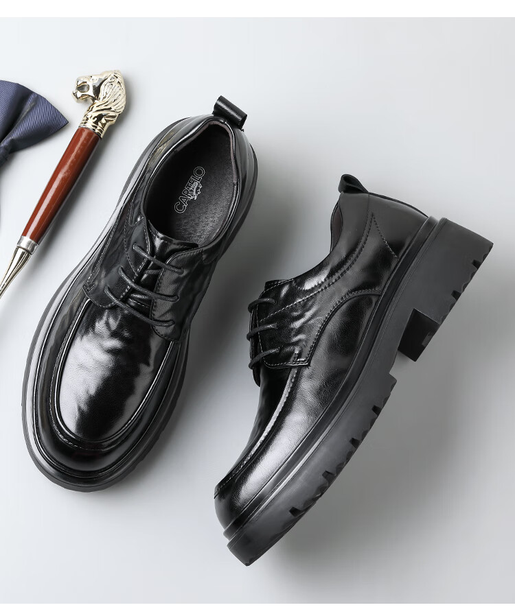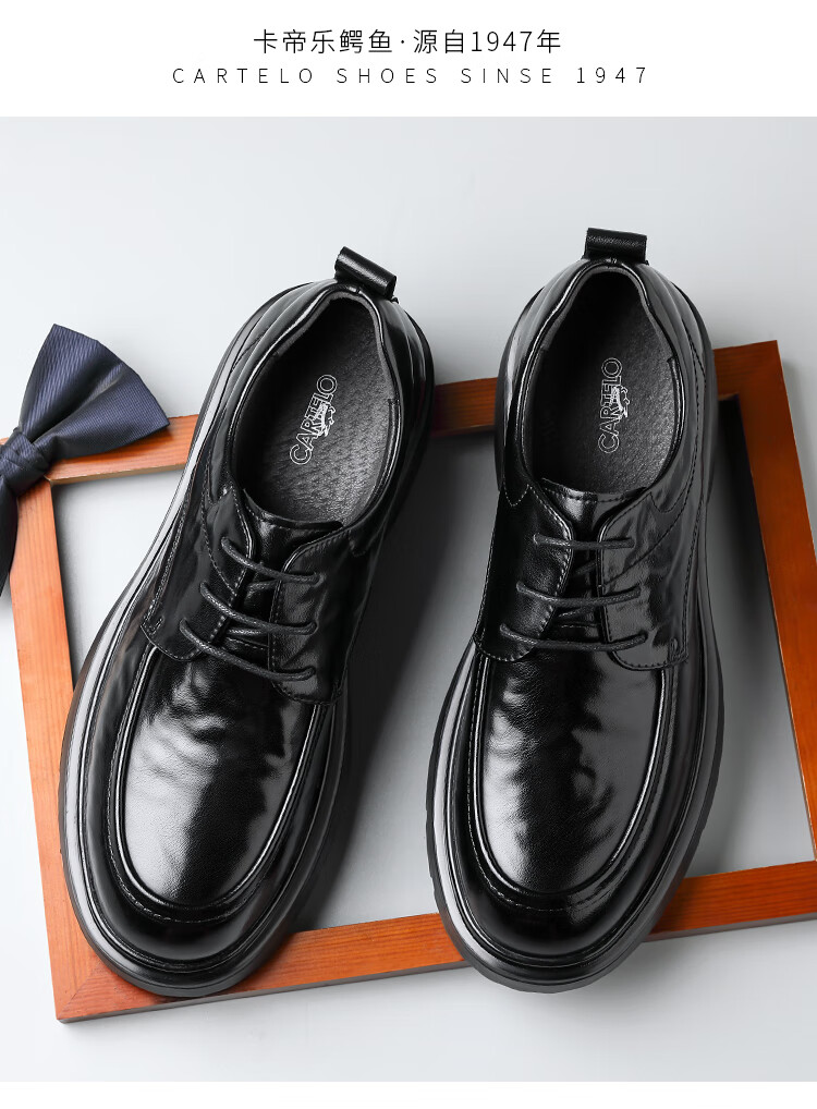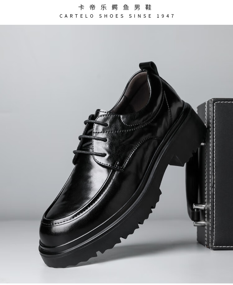 CARTELO British Men's Leather Shoes Thick Sole Increased Business Casual Shoes Low-top Round Toe Breathable Cowhide Shoes Men's 9960 Black 38