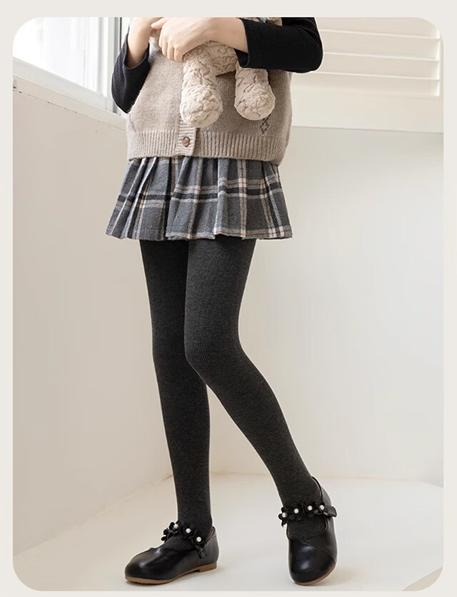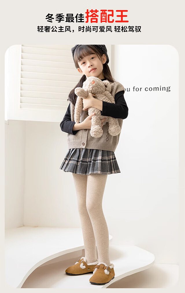Langsha children's leggings for women in autumn and winter thickened velvet warm pants leggings for outer wear striped high waist pantyhose for middle and large children